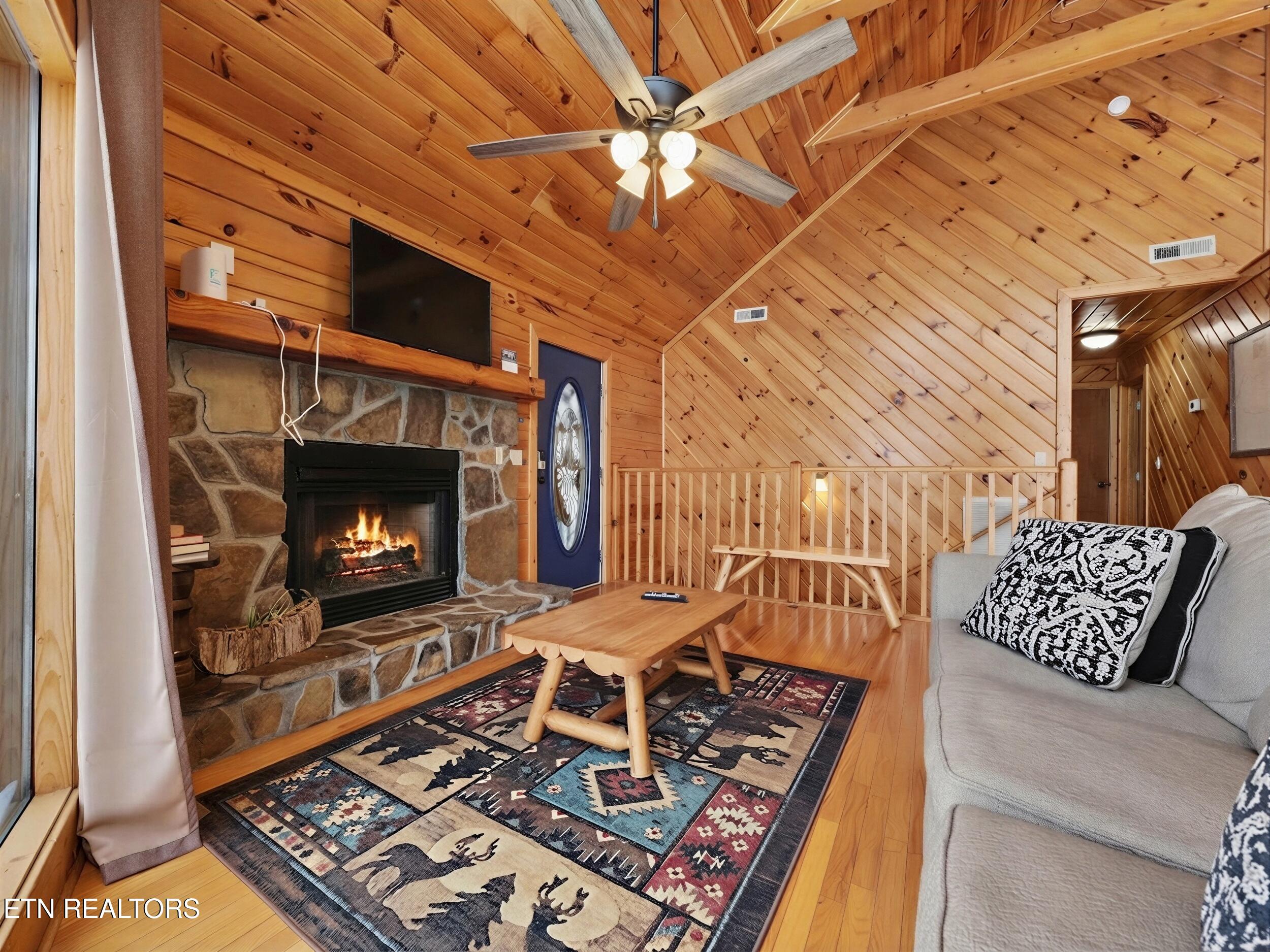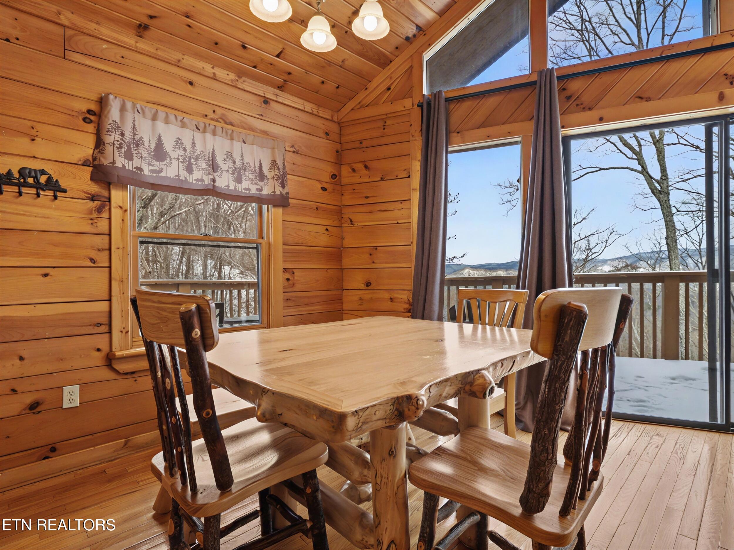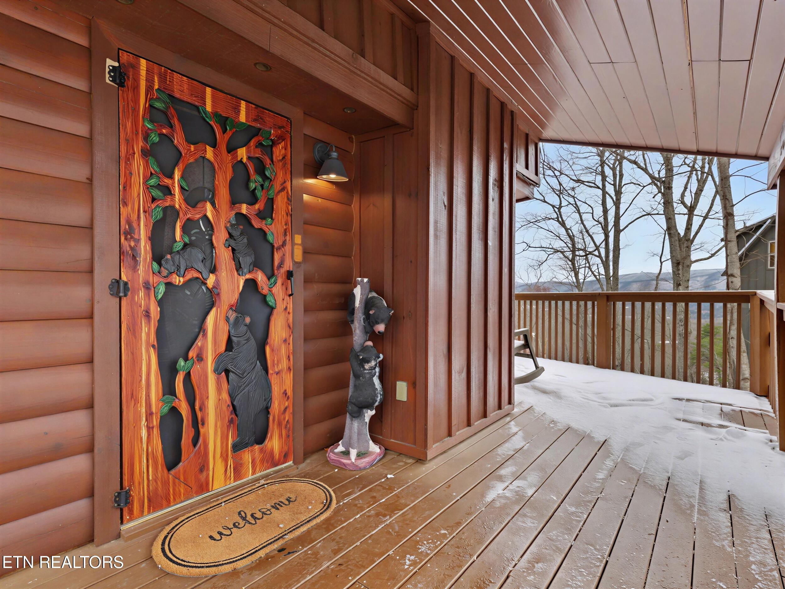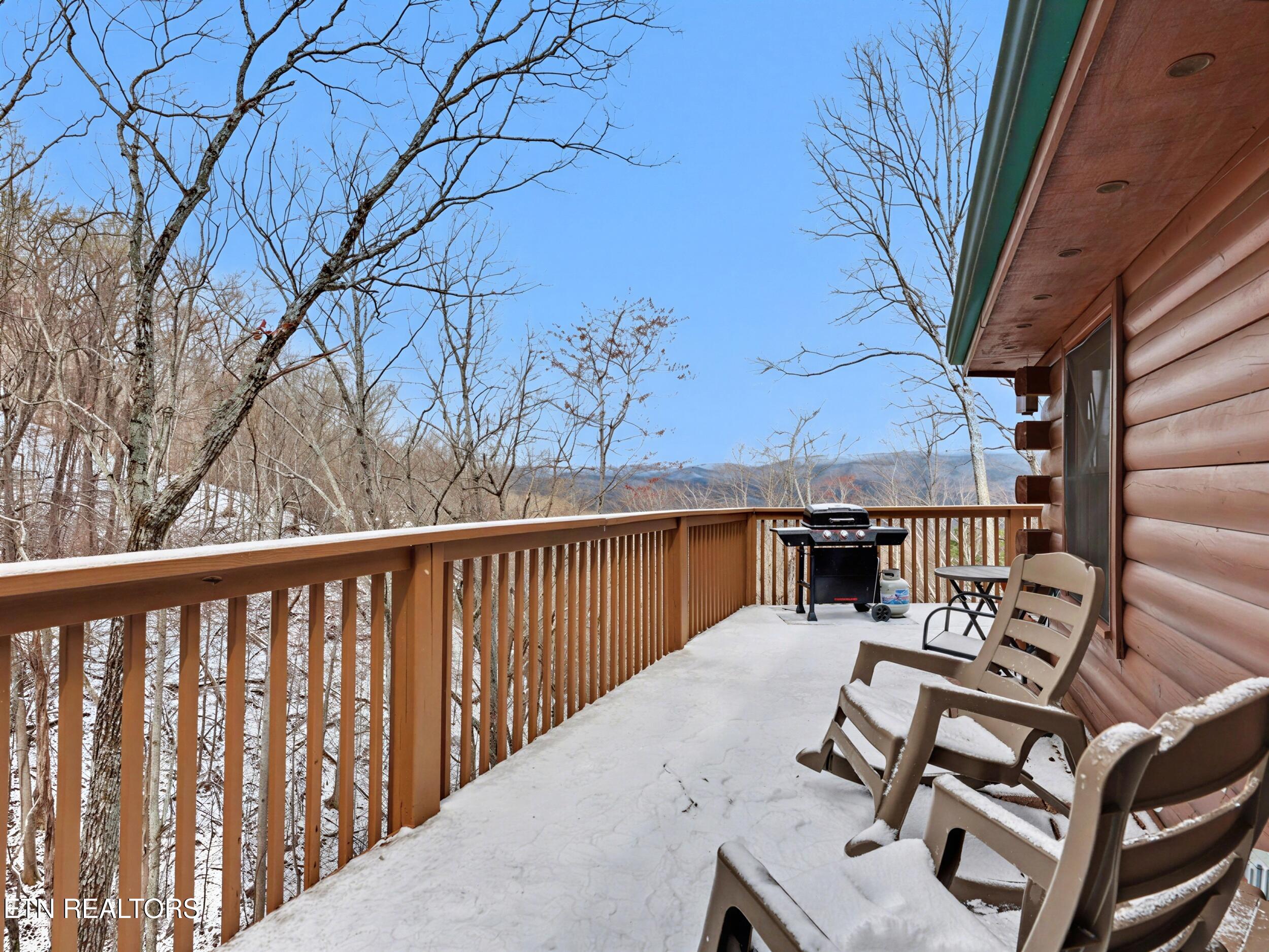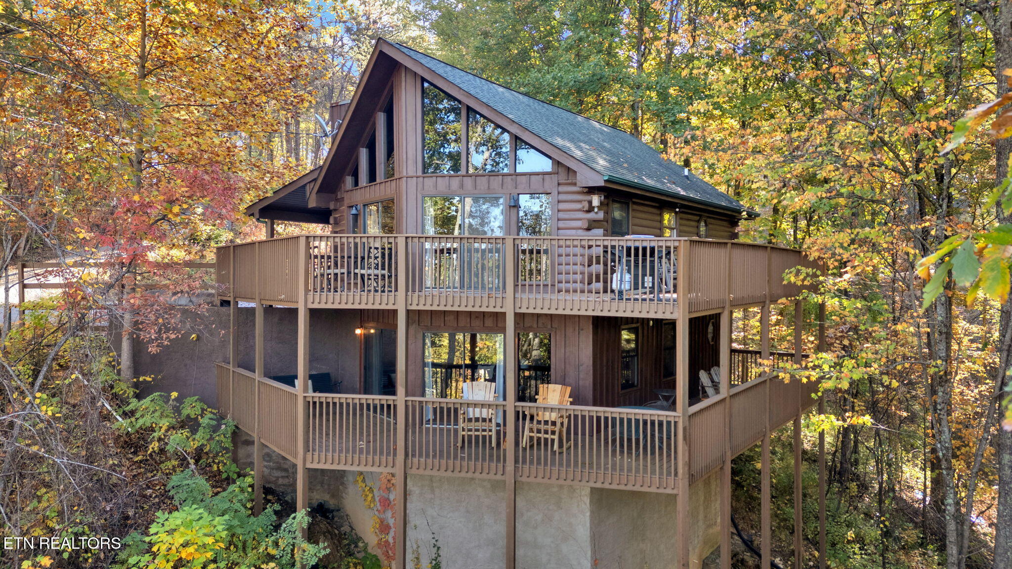 Over 50,000 has been invested in recent updates to this beautifully maintained 2-bedroom, 2-bath cabin located in the gated Shagbark community, offering beautiful mountain views. Recent improvements include a brand-new hot tub installed in 2025, newer furniture, granite countertops in the kitchen, a newer HVAC system, recently stained interior, stainless steel appliances added in 2022, and fully remodeled bathrooms featuring custom tile walk-in showers. The downstairs bathroom also includes a relaxing spa tub--perfect after a long day in the mountains.The main level offers an open floor plan with soaring cathedral ceilings, a spacious living room with a stunning stone gas fireplace, and a dining area ideally situated between the kitchen and living space. The fully equipped kitchen features granite countertops, stainless steel appliances, and ample cabinet storage. A main-level bedroom with a king-size authentic log bed and a full bathroom complete this floor. The living room showcases a dramatic wall of windows and provides access to a wraparound deck that spans all three sides of the cabin--perfect for enjoying the beautiful mountain views, relaxing in the hot tub, or unwinding in a rocking chair.The lower level offers an expansive entertainment space complete with additional seating, a pool table, foosball table, arcade game, and flat-screen TV. This level also includes a second bedroom with a king-size log bed, a full bathroom, and large windows with direct access to the outdoor deck space.Shagbark is a gated community with staffed security and amenities including a swimming pool, tennis courts, walking trails, and frisbee golf. Residents and guests enjoy beautifully maintained common areas with scenic creeks and streams throughout.Currently operating as a short-term rental, this property offers excellent potential as both an investment opportunity or a private mountain retreat. Don't miss your chance to own this exceptional cabin!