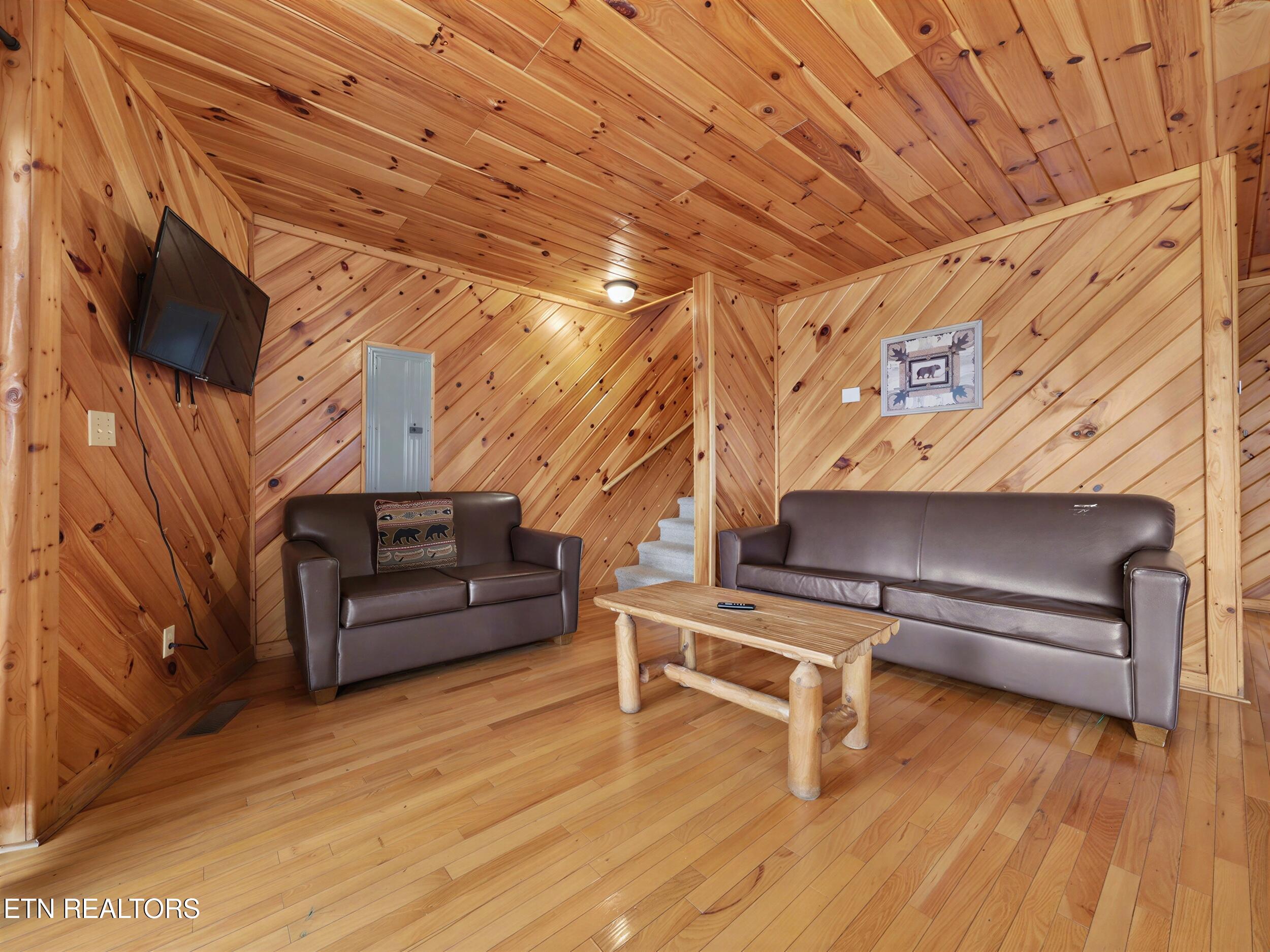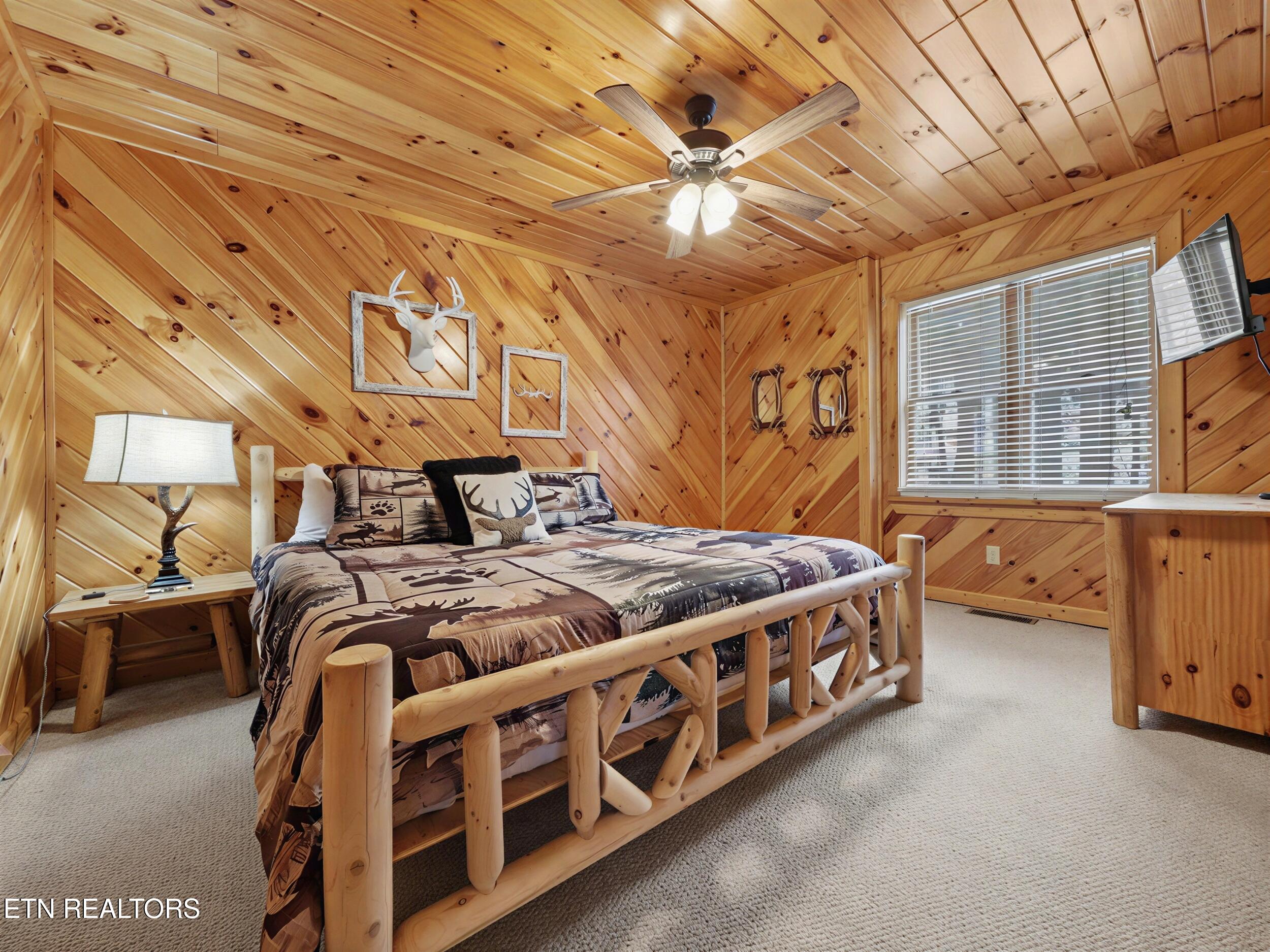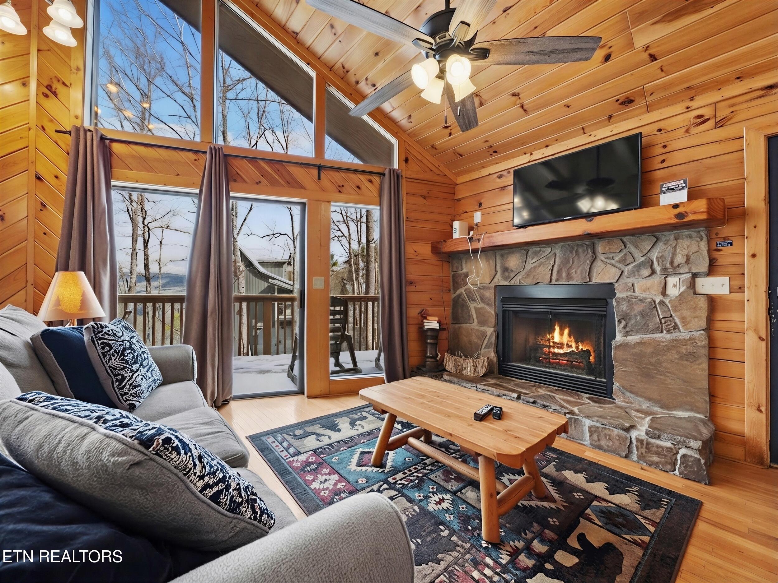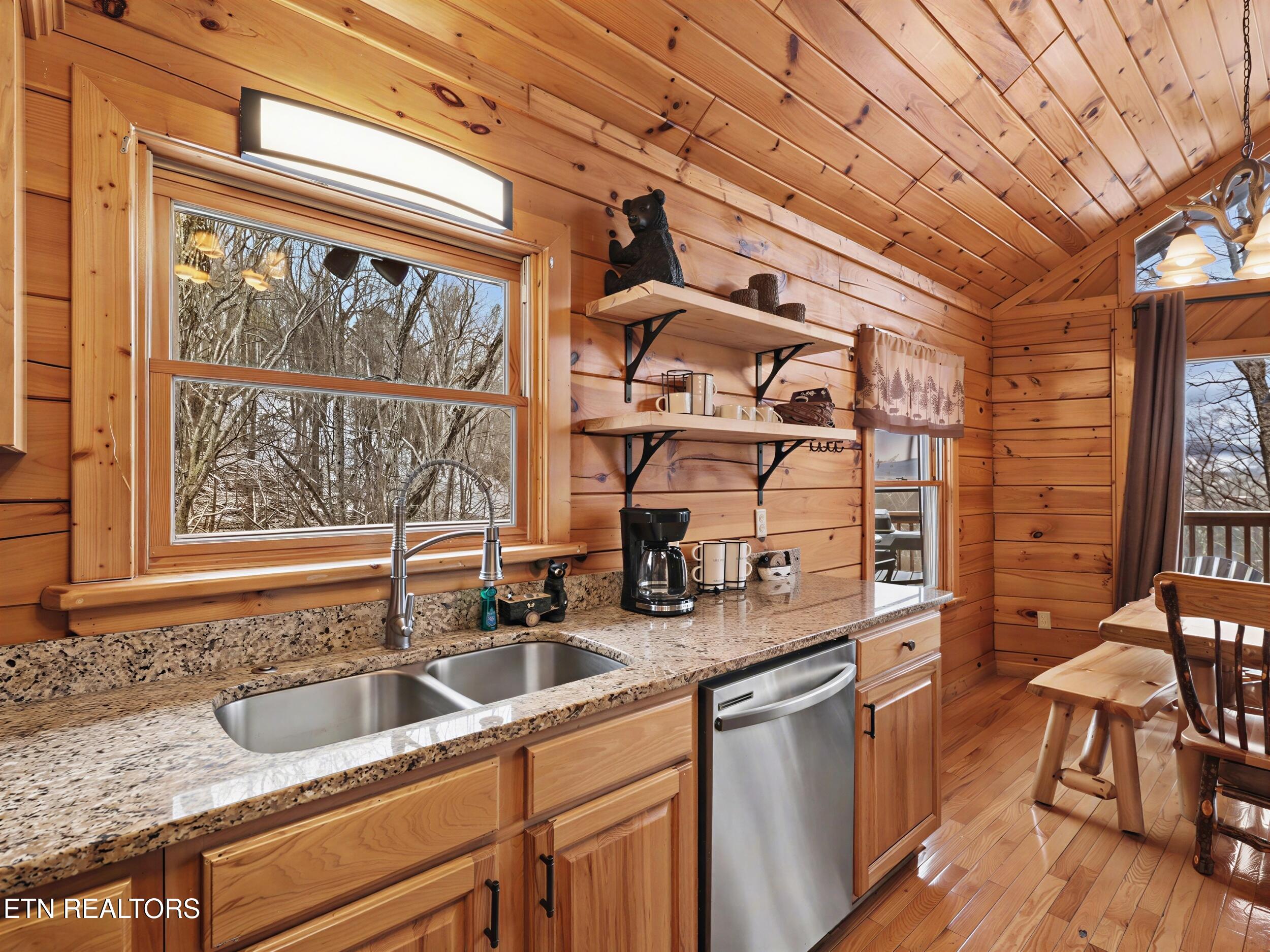 Over 50,000 has been invested in recent updates to this beautifully maintained 2-bedroom, 2-bath cabin located in the gated Shagbark community, offering beautiful mountain views. Recent improvements include a brand-new hot tub installed in 2025, newer furniture, granite countertops in the kitchen, a newer HVAC system, recently stained interior, stainless steel appliances added in 2022, and fully remodeled bathrooms featuring custom tile walk-in showers. The downstairs bathroom also includes a relaxing spa tub--perfect after a long day in the mountains.The main level offers an open floor plan with soaring cathedral ceilings, a spacious living room with a stunning stone gas fireplace, and a dining area ideally situated between the kitchen and living space. The fully equipped kitchen features granite countertops, stainless steel appliances, and ample cabinet storage. A main-level bedroom with a king-size authentic log bed and a full bathroom complete this floor. The living room showcases a dramatic wall of windows and provides access to a wraparound deck that spans all three sides of the cabin--perfect for enjoying the beautiful mountain views, relaxing in the hot tub, or unwinding in a rocking chair.The lower level offers an expansive entertainment space complete with additional seating, a pool table, foosball table, arcade game, and flat-screen TV. This level also includes a second bedroom with a king-size log bed, a full bathroom, and large windows with direct access to the outdoor deck space.Shagbark is a gated community with staffed security and amenities including a swimming pool, tennis courts, walking trails, and frisbee golf. Residents and guests enjoy beautifully maintained common areas with scenic creeks and streams throughout.Currently operating as a short-term rental, this property offers excellent potential as both an investment opportunity or a private mountain retreat. Don't miss your chance to own this exceptional cabin!