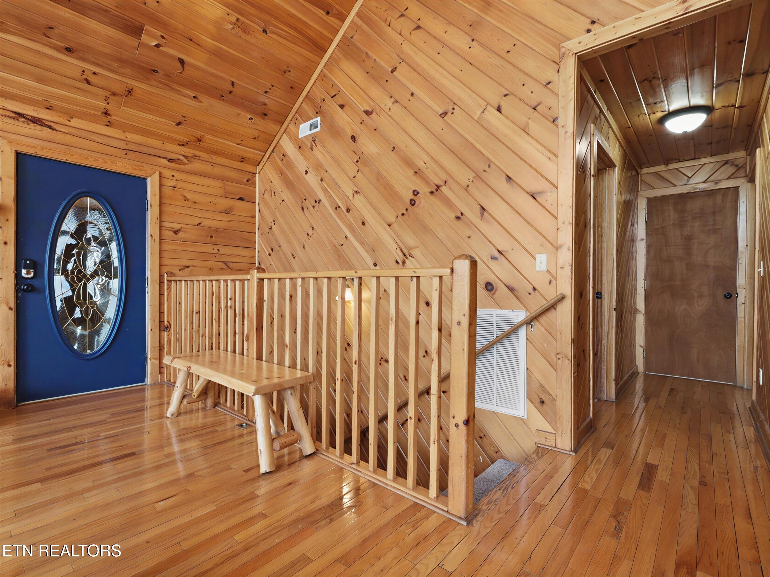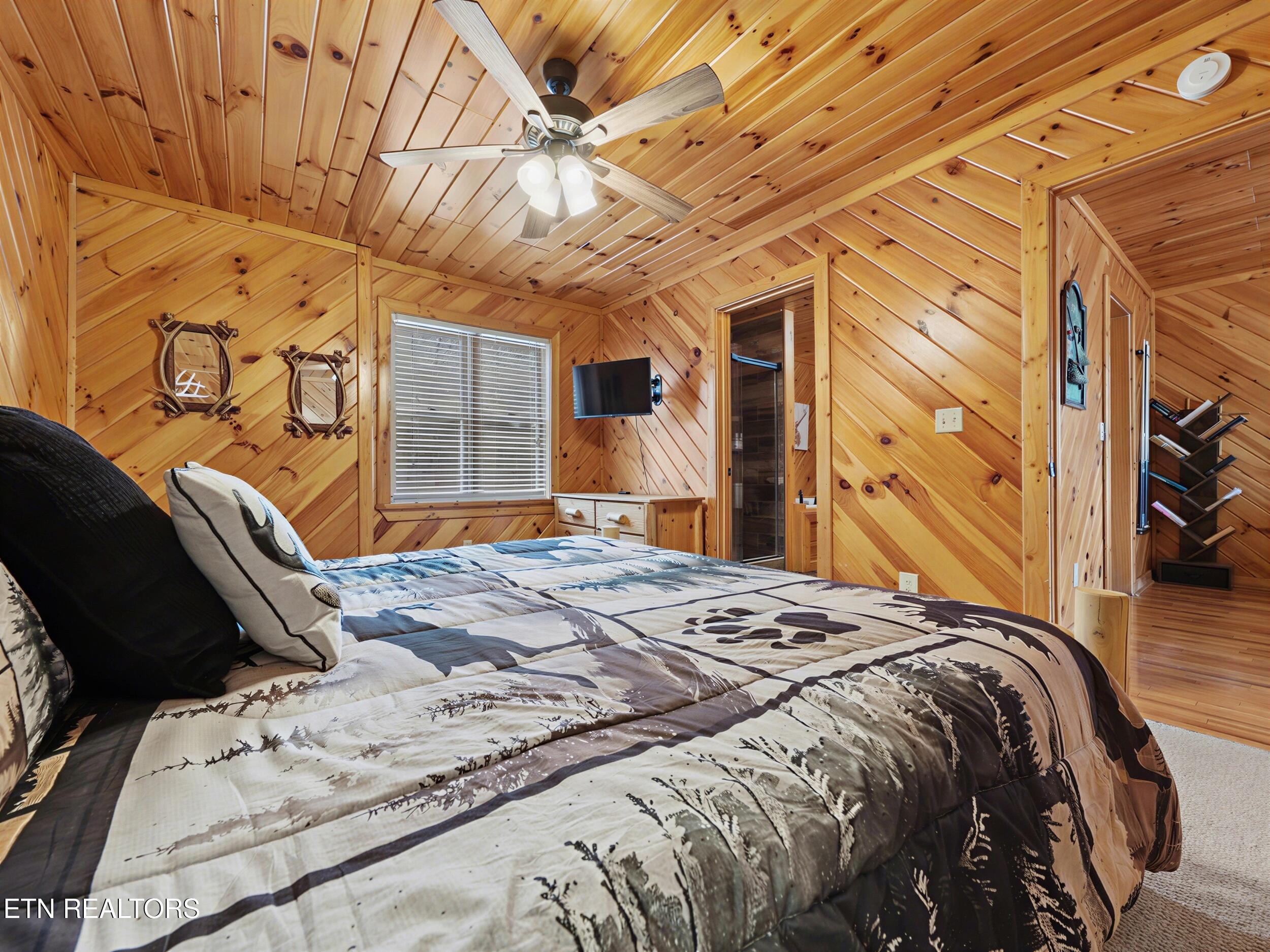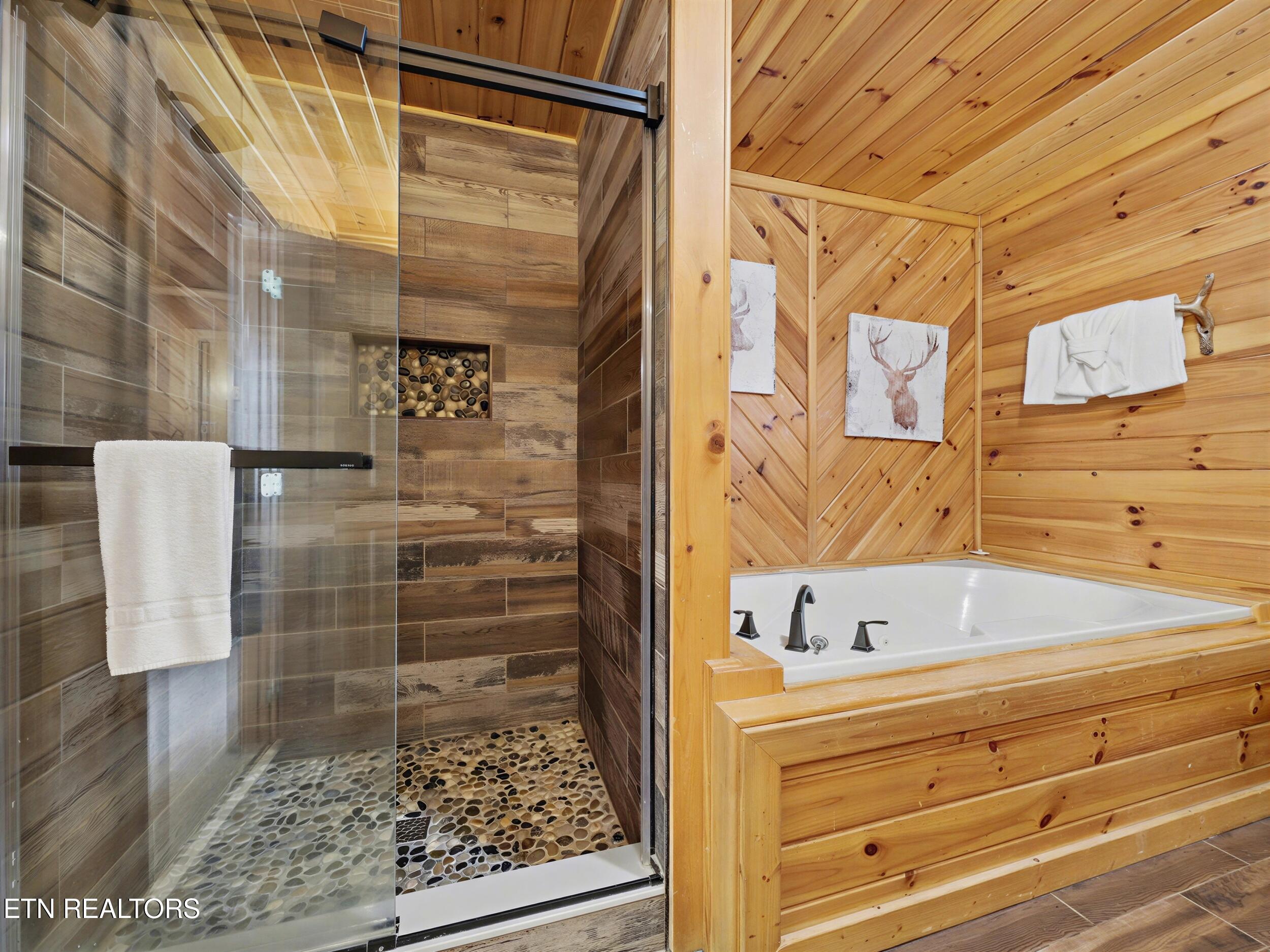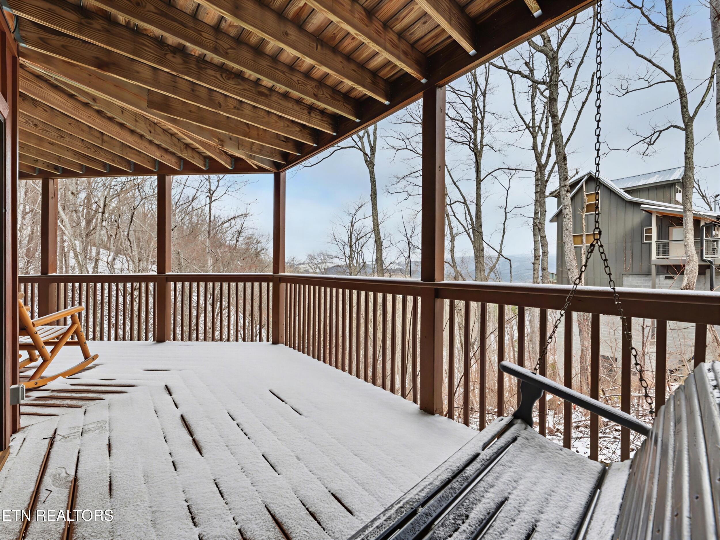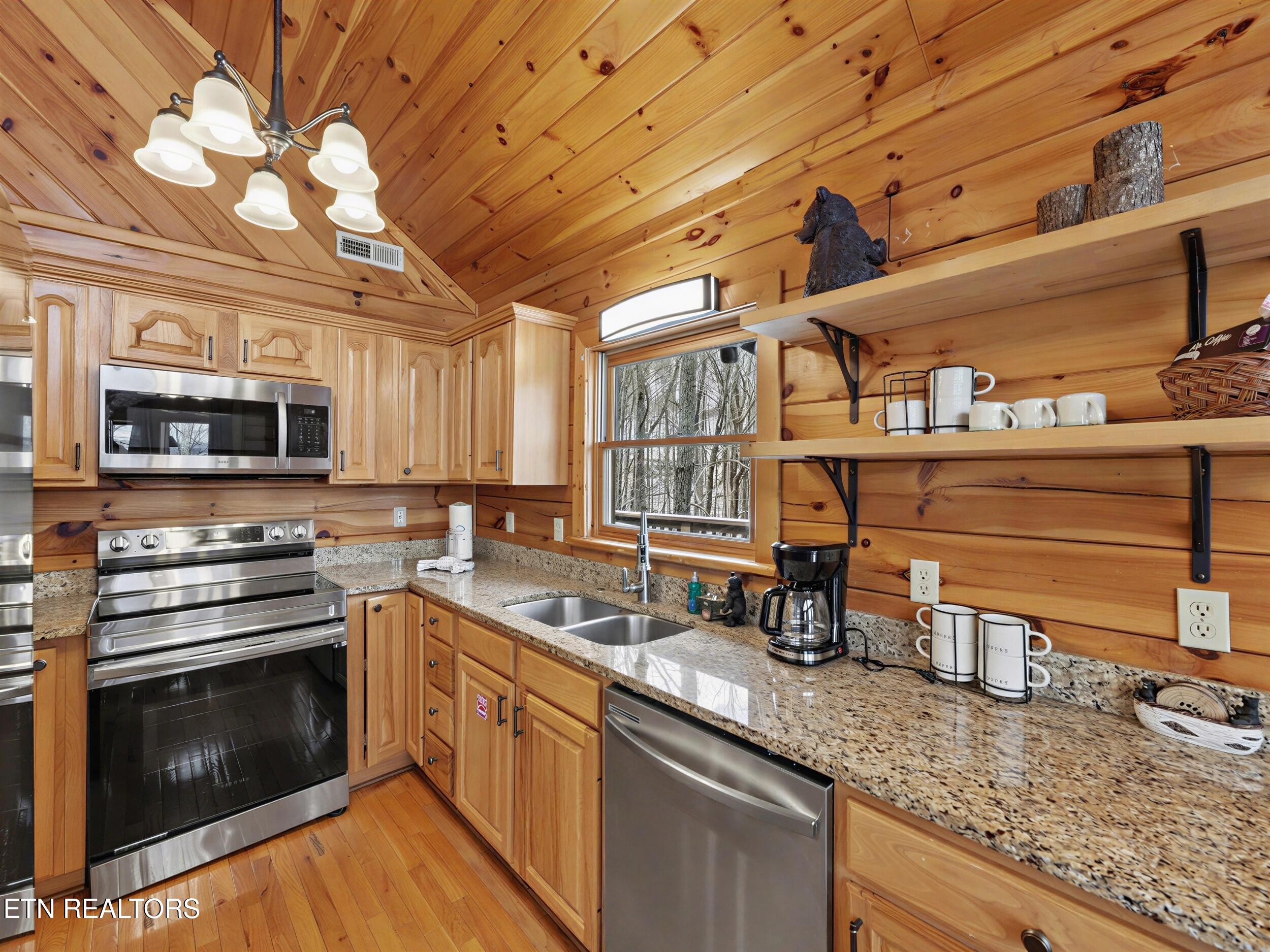 Over 50,000 has been invested in recent updates to this beautifully maintained 2-bedroom, 2-bath cabin located in the gated Shagbark community, offering beautiful mountain views. Recent improvements include a brand-new hot tub installed in 2025, newer furniture, granite countertops in the kitchen, a newer HVAC system, recently stained interior, stainless steel appliances added in 2022, and fully remodeled bathrooms featuring custom tile walk-in showers. The downstairs bathroom also includes a relaxing spa tub--perfect after a long day in the mountains.The main level offers an open floor plan with soaring cathedral ceilings, a spacious living room with a stunning stone gas fireplace, and a dining area ideally situated between the kitchen and living space. The fully equipped kitchen features granite countertops, stainless steel appliances, and ample cabinet storage. A main-level bedroom with a king-size authentic log bed and a full bathroom complete this floor. The living room showcases a dramatic wall of windows and provides access to a wraparound deck that spans all three sides of the cabin--perfect for enjoying the beautiful mountain views, relaxing in the hot tub, or unwinding in a rocking chair.The lower level offers an expansive entertainment space complete with additional seating, a pool table, foosball table, arcade game, and flat-screen TV. This level also includes a second bedroom with a king-size log bed, a full bathroom, and large windows with direct access to the outdoor deck space.Shagbark is a gated community with staffed security and amenities including a swimming pool, tennis courts, walking trails, and frisbee golf. Residents and guests enjoy beautifully maintained common areas with scenic creeks and streams throughout.Currently operating as a short-term rental, this property offers excellent potential as both an investment opportunity or a private mountain retreat. Don't miss your chance to own this exceptional cabin!