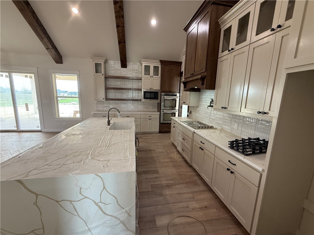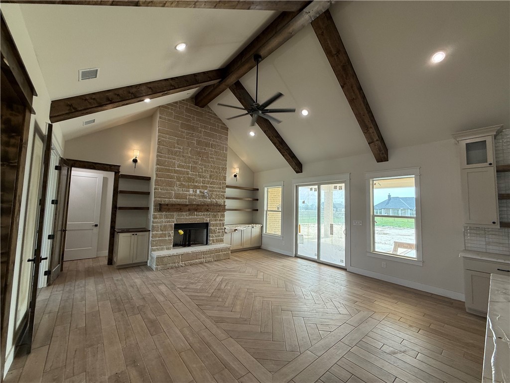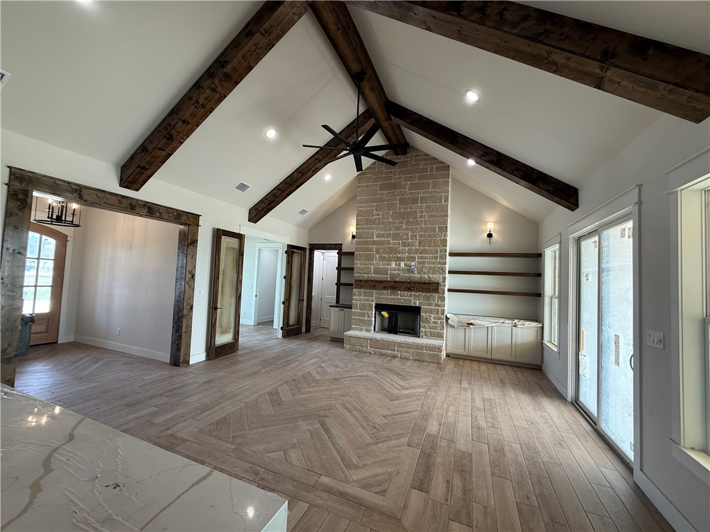 Welcome to 7822 Mathis Creek Dr! This beautiful home boasts over 2,900 square feet, sitting on an acre lot in the desirable Reliance Ridge neighborhood. With 4 bedrooms, 3.5 bathrooms, an office or bonus room, a 3-car garage and back patio with an outdoor kitchen! Step inside to the entry that opens into the spacious living area with 12 ft ceilings and stained wood beams, a wood burning fireplace, custom shelving and sliding back door that will allow an abundance of natural lighting. The kitchen is perfect for gatherings with the large island, custom cabinetry, gas cooktop, stainless steel appliances, a pot filler, walk-in pantry and formal dining area! The primary suite has an oversized closet, a beautiful stand alone soaking tub, spacious walk-in shower and double sinks! The back porch is an entertainers dream that boats an oversized patio with beautiful wood beams and outdoor kitchen make it ideal for gatherings. The home is prewired for speakers, a security system and fiber wifi. Dont miss out on this opportunity to make this beauty your own!