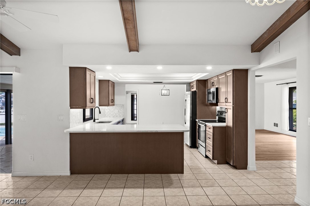 Best value in Cape Coral for deep sailboat access—no bridges, quick, direct Gulf access, and a truly sunset-drenched waterfront setting. Perfectly positioned with desirable southern exposure and a wide western rear view, this home is bathed in natural light all day and delivers breathtaking, unobstructed sunsets each evening—the kind that define Southwest Florida living. From golden hour reflections on the water to vibrant skies at dusk, the backyard becomes your nightly front-row seat to natures show. Designed with a courtyard-style layout centered around the pool and water views, every main living space is intentionally oriented to capture both the water and those unforgettable sunset views, creating a seamless indoor-outdoor connection that feels open, airy, and distinctly coastal. Offering 3 bedrooms and 2 full baths with a split-bedroom floor plan, the home features both a family room and living room, providing flexibility for entertaining or unwinding after a day on the water. Thoughtfully updated in January 2023, the kitchen shines with custom wood cabinetry, quartz countertops, stainless steel appliances, under-cabinet lighting, and a center island perfect for gathering. The primary suite is a private retreat with sliders to the lanai and pool, a walk-in closet, and a beautifully remodeled bath with dual sinks and a walk-in shower. The guest bath has also been tastefully updated and conveniently serves as a pool bath. Additional upgrades include a new roof (2024), resurfaced pool (2023), new AC and ductwork (2023), new appliances (2023), hurricane-rated garage door, accordion and electric shutters, and an automatic irrigation system. Enjoy added peace of mind with low flood insurance, enhancing the homes overall affordability. Down at the water, a concrete dock invites you to relax, fish, or head out for the day—with deep sailboat access just minutes to open water. With proven annual rental income and positioned as one of the best values for deep, direct sailboat access in Cape Coral, this property delivers the ultimate blend of boating lifestyle, sunset views, and investment potential.