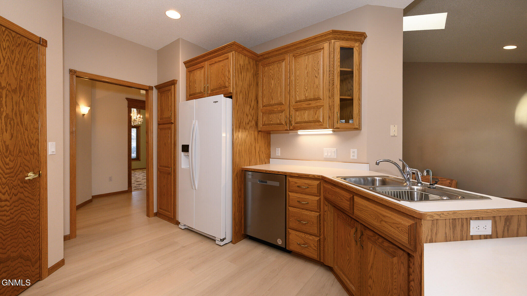 Open House Sunday, April 19th from 11:30-1:30! Welcome to this beautifully maintained ranch-style home located in one of the area's most desirable, established neighborhoods, known for its mature trees, quiet streets, and timeless appeal.A spacious entryway with a convenient coat closet creates a warm and inviting first impression. Inside, newer engineered wood flooring flows throughout areas of the main level. The layout offers an ideal balance of everyday functionality and refined gathering spaces, including a dormer window, and a distinctive ceiling feature that adds architectural character.A versatile office or formal sitting room is set behind French doors and accented by elevated ceilings, offering flexibility for work or relaxation. The main-level family room connects seamlessly to the kitchen and dining areas, creating a natural hub for daily living. Patio doors lead to a large deck overlooking a private, tree-surrounded backyard including an apple tree giving you a wonderful exterior setting for morning and evening enjoyment.The kitchen is thoughtfully designed with cabinetry featuring pullouts, a dedicated cookie sheet cabinet, pantry, and a built-in desk area that adds both charm and convenience.The main-level primary suite comes complete with a walk-in closet with a bath featuring dual sinks, a walk-in shower, and a corner jetted tub. A private door from the suite offers direct access to the deck, extending the living space outdoors. Also on the main level, you'll find a second bedroom, a full bathroom, and a laundry room with a sink. Accessibility has been carefully considered, with all main-level doorways designed for ease of access.The lower level expands the home with a spacious family room offering a gas fireplace, creating a cozy yet open setting. This level also includes two bedrooms with egress windows, along with two additional non-conforming rooms ideal for a craft room, workshop, or additional storage. A ¾ bathroom and a cold storage room with shelving complete the space.Additional highlights include abundant storage throughout the home with numerous hall closets, along with important updates such as shingles replaced in 2025, a furnace in 2018, and a water heater in 2023.The triple-stall garage adds exceptional functionality, featuring a sink and a separate third stall with a convenient drive-through door to the backyard. A perfect for lawn equipment or additional access.This home offers a rare opportunity to enjoy classic ranch-style living, thoughtful maintenance updates, and a highly sought-after location within an established neighborhood.Call an agent today for a private showing.