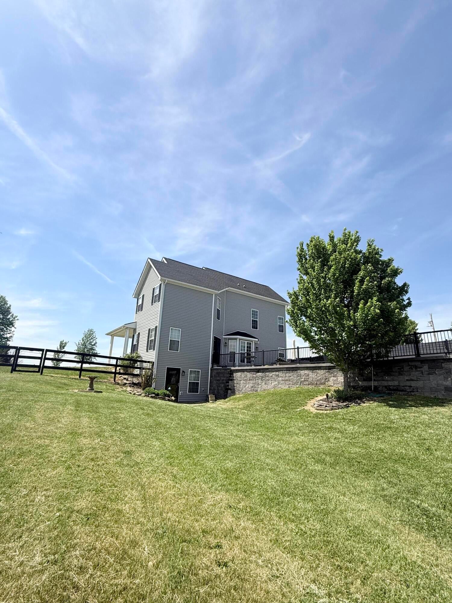 Peaceful Country Living Meets Everyday Convenience Set on 6.81 acres of scenic open and wooded land, this charming three-level Colonial offers the privacy you crave with the accessibility you need. Enjoy room to roam, entertain, or simply unwind in a serene natural setting—while still being just a short drive to Fredericksburg, Manassas, Stafford, and Warrenton via major commuter routes. Enjoy breathtaking sunsets from the covered porch just off the kitchen, or soak up the sunshine on the expansive deck that spans the entire length of the home. Surrounded by nature, you’ll appreciate the peaceful setting and abundant wildlife right outside your door. Start your mornings with a cup of coffee accompanied by the gentle chirping of birds. If you’ve been searching for a home that feels like a private retreat, this is the one.The heart of the home features a spacious kitchen with a center island and eat-in dining area, complete with a cozy wood-burning fireplace. Sliding doors lead to a covered deck porch with a ceiling fan and large deck —perfect for relaxing while overlooking the expansive backyard. A generous family/rec room just off the kitchen includes a freestanding gas stove, mini-split system, and separate thermostat for added comfort. Also on the main level: a large living room, half bath, and laundry room.Upstairs, you’ll find three bedrooms, all equipped with ceiling fans. The two full bathrooms both feature Linen Closets. The spacious primary suite offers a walk-in closet and private ensuite bath. Bedroom #2 features a charming built-in bunk/seating area with a window view and a walk-in closet. Bedroom #3 has a walk-in closet as well!The finished lower level offers exceptional additional living space, featuring a spacious family room with built-in shelving, a full bathroom with a shower, a fourth bedroom (not to code), and a versatile den—ideal for a home office. Walk-out access leads to a lower patio and scenic backyard views, creating a seamless indoor-outdoor connection. A wood stove hookup adds warmth and flexibility to the space.The detached two-car garage, complete with insulated doors, includes an attached finished bonus room currently used as a gym. Equipped with a window A/C unit, this space is perfect for a home office, studio, or fitness area. The property also offers ample storage for tools and equipment.Recent Updates Include: New roof New gutters New Downspouts New Gutter Guards New Hot Water Heater Gas Furnace New kitchen sink New siding (home wrapped in Tyvek prior to installation) New metal roof on Detached 2 Car Garage All interior faucets and hardware replaced
