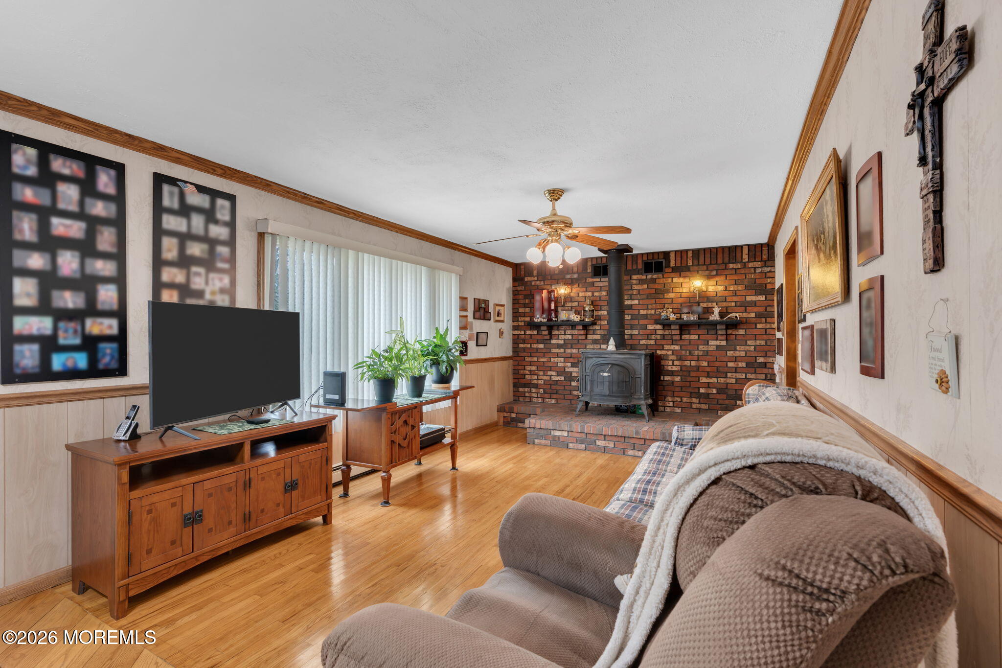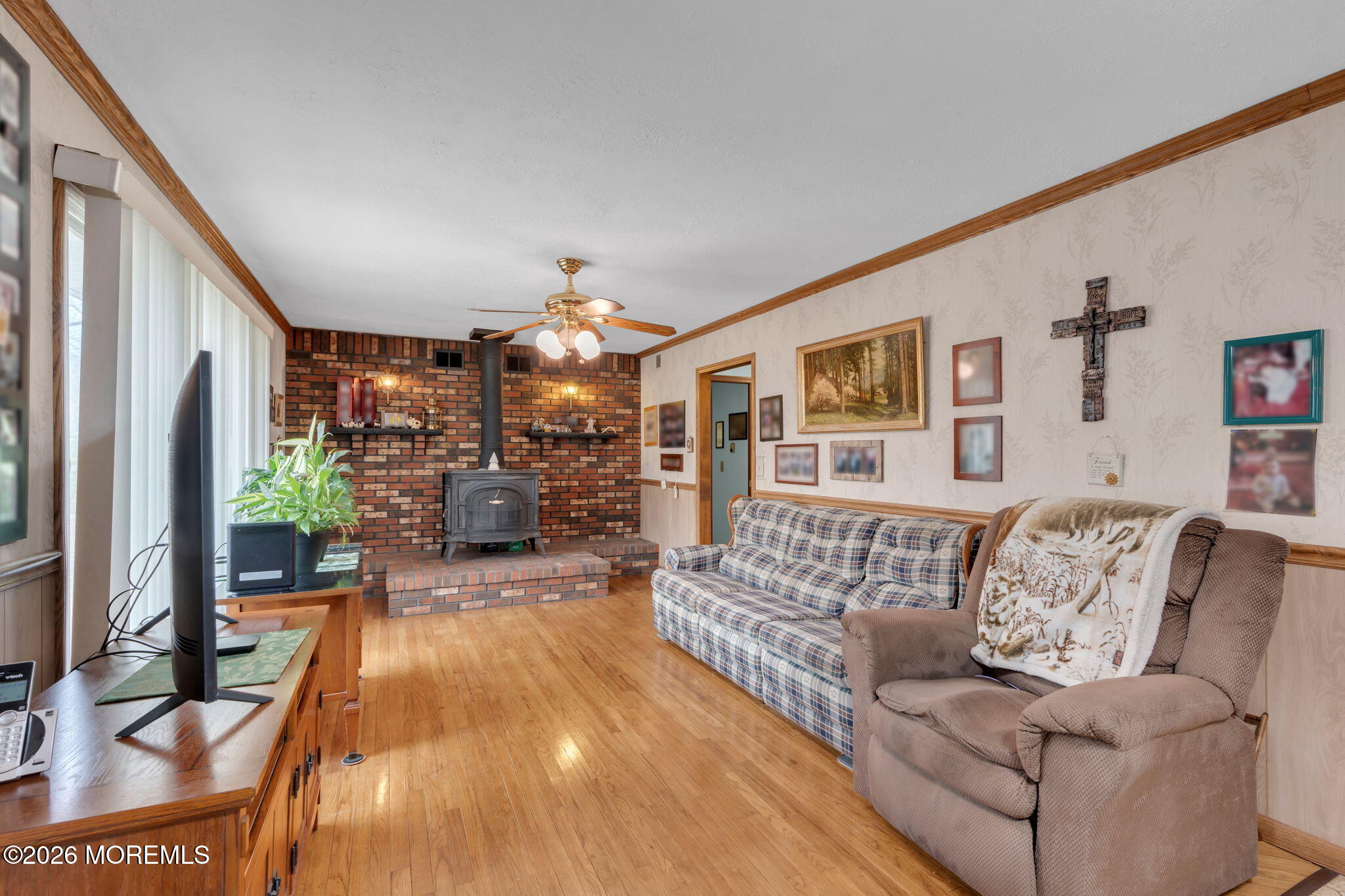 COUNTRY COZY RANCH ON 1.6 ACRE!!! This 3 bedroom, 2 bath home features a Primary Suite with walking closet and private bath and parquet wood flooring; a living room with wood stove, decorative moldings and original hardwood floors throughout, leading to 2 additonal bedrooms and hall bathroom; eat-in kitchen, dining room, full basement and large 14'X18' back deck. Washer/Dryer hookups in basement and main floor! ALL this on a 1.6 acre treed lot, fenced area, with sheds, and a huge 6 car driveway! Lots of room for toys, equipment and more!!! Some pics have been enhanced for marketing.