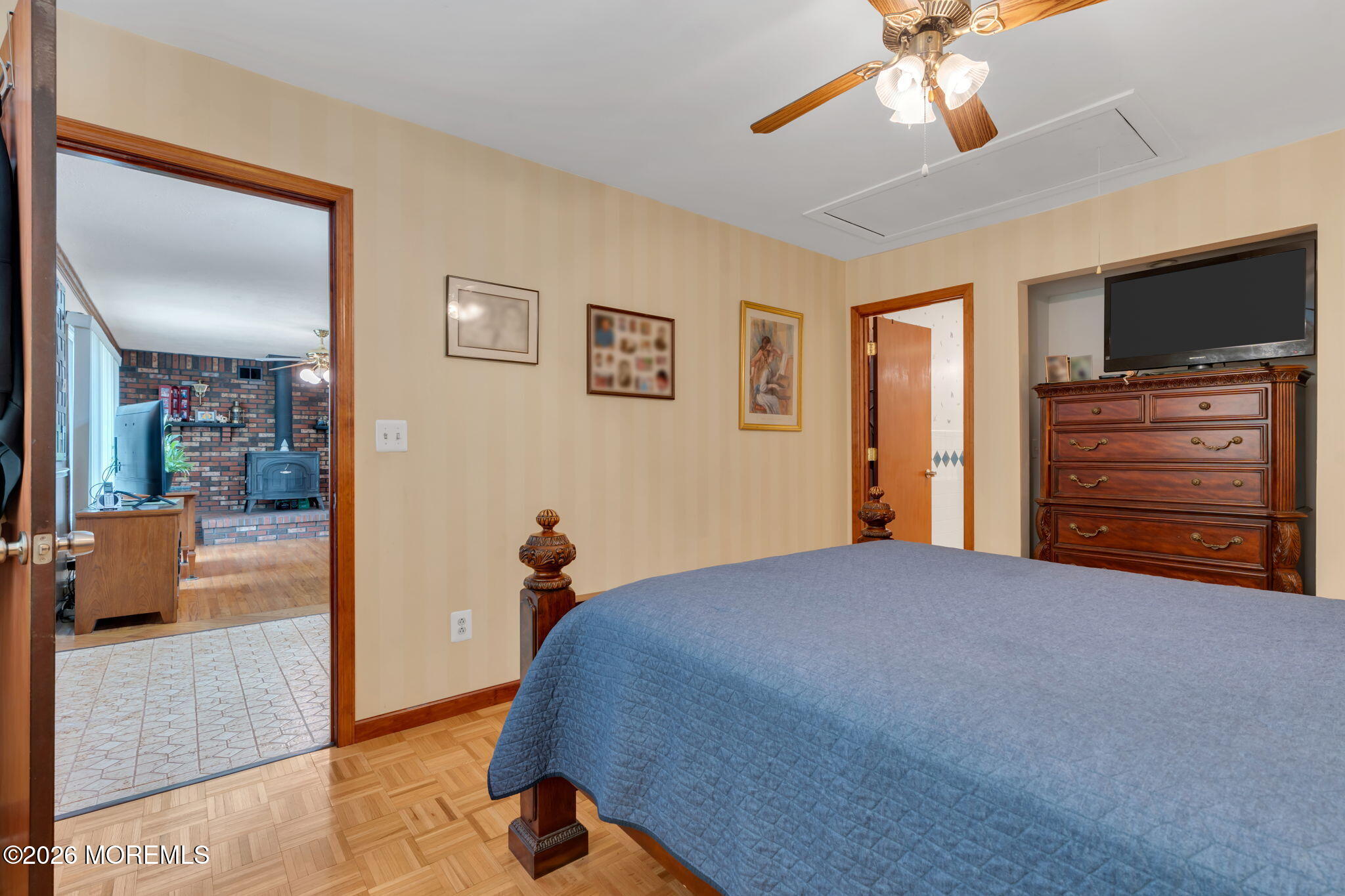 Set back on almost a .5 acre lot in Freehold Twp. this center hall Colonial offers traditional charm with solid construction throughout. Original hardwood floors and durable era-crafted staircases add lasting character. The 1st floor has a large kitchen space along with a spacious living room, dining area & bonus room that would work well as an office, guest room, or additional living space.