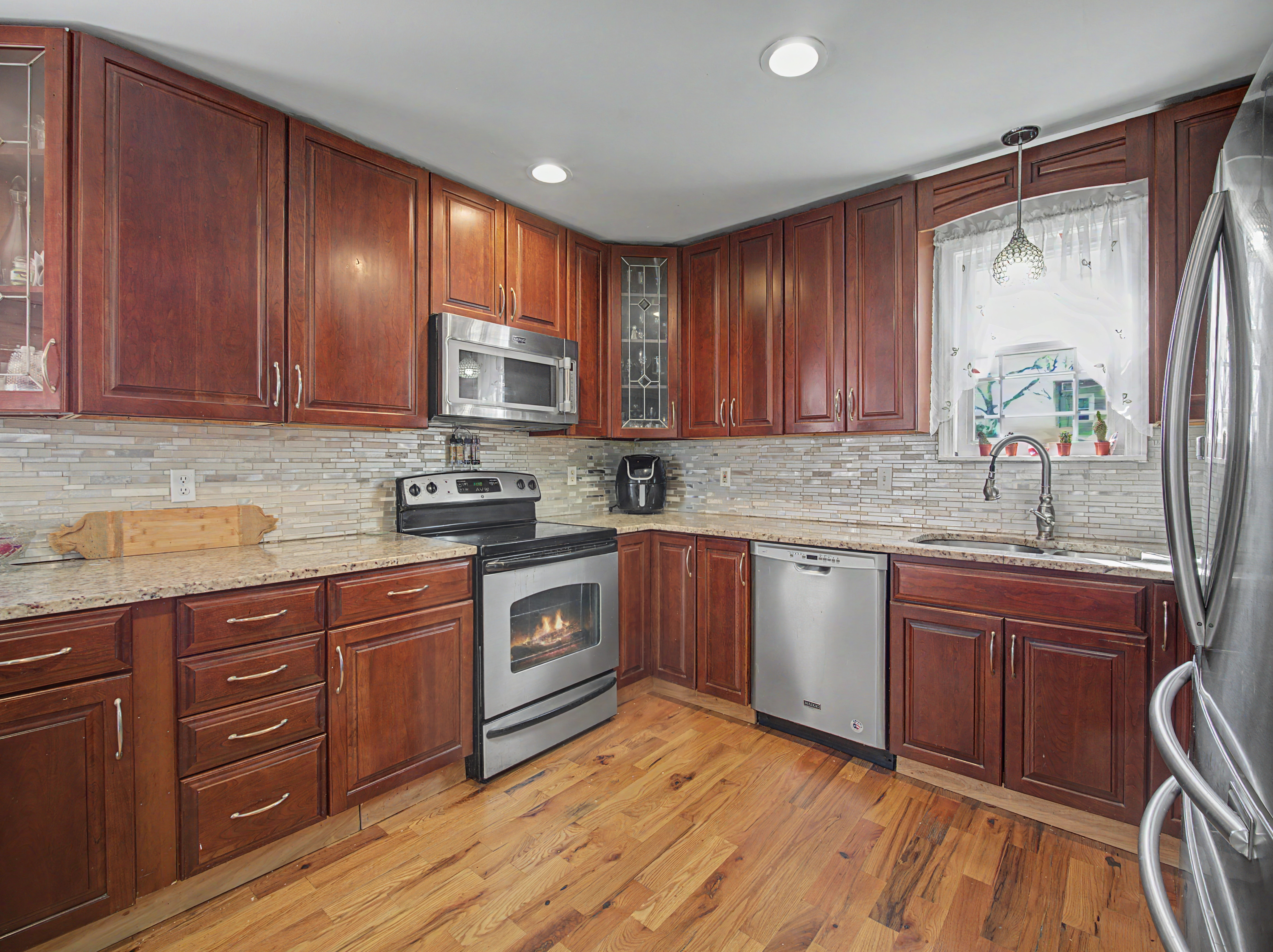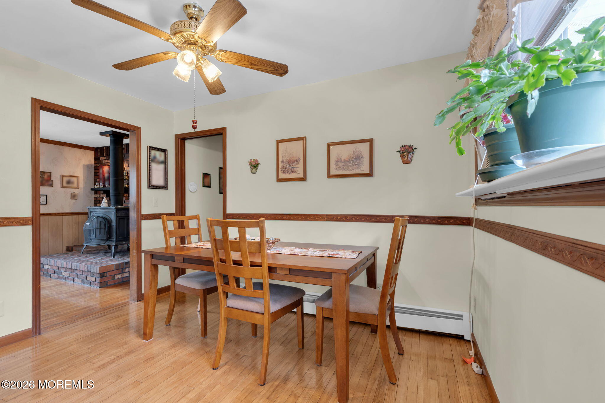 COUNTRY COZY RANCH ON 1.6 ACRE!!! This 3 bedroom, 2 bath home features a Primary Suite with walking closet and private bath and parquet wood flooring; a living room with wood stove, decorative moldings and original hardwood floors throughout, leading to 2 additonal bedrooms and hall bathroom; eat-in kitchen, dining room, full basement and large 14'X18' back deck.