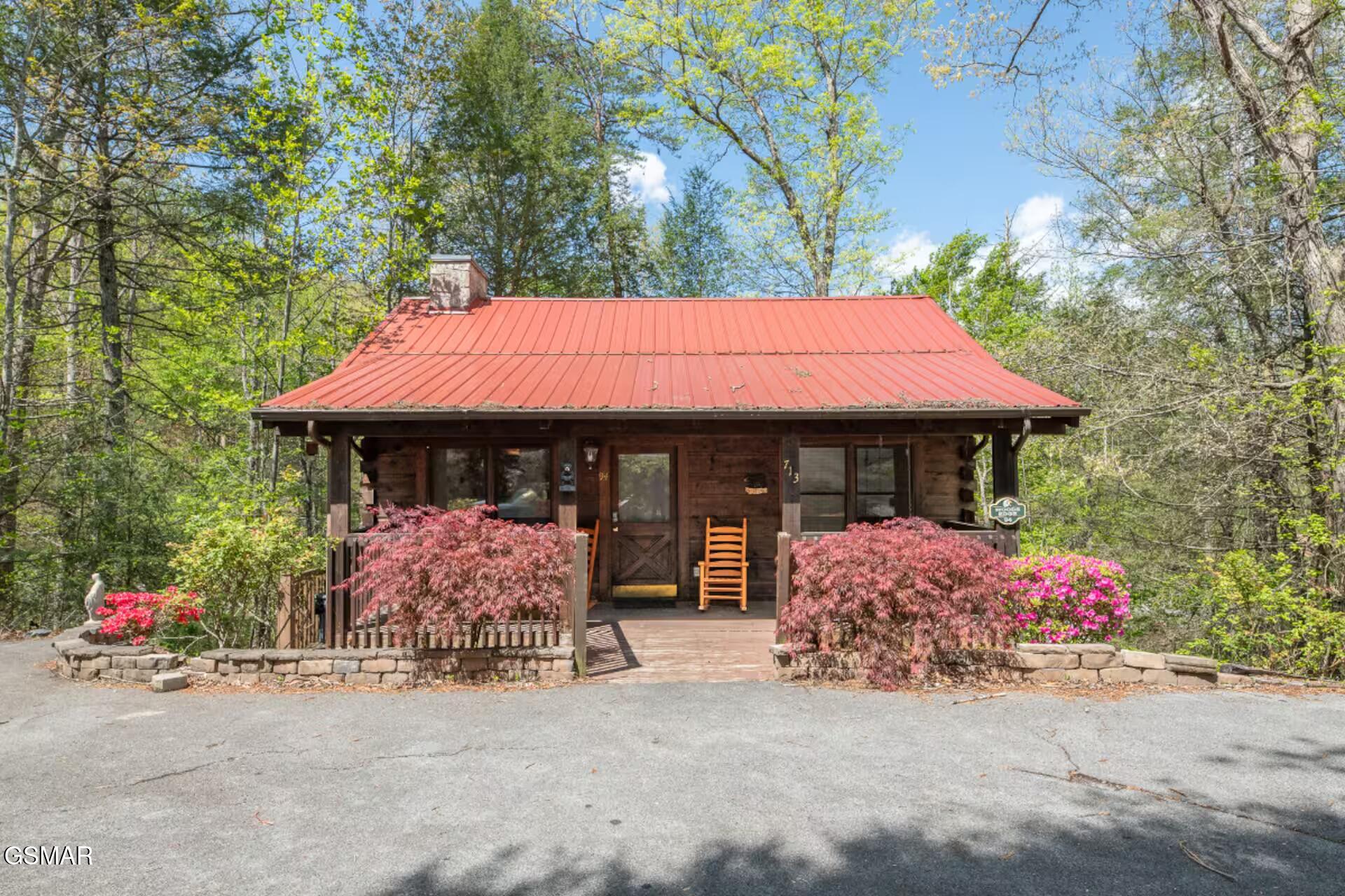 Tucked into a wooded setting in well-established Eagles Ridge Resort subdivision, this 2-bedroom, 2-bathroom authentic log cabin brings together the peace of mountain living and the convenience of one of Pigeon Forges most sought-after locations. At over 1,200 square feet, there is plenty of room to spread out and make memories. The main level welcomes you with an open great room featuring a mountain stone gas fireplace, vaulted ceilings, exposed beams, eat-in kitchen, all flowing together in a layout that feels both spacious and comfortable. Youl love the covered front and back porches with exposed beams, hot tub, dining table, rocking chairs and a porch swing. A private bedroom and full bath are also on the entry level. Head downstairs to the lower level primary suite, which doubles as a recreation room and includes its own fireplace, a full bathroom, deck access and a utility room. Currently active on an established rental program, this cabin has proven appeal for the vacation rental market. Its location is a genuine advantage for any investor or buyer, with Dollywood, downtown Pigeon Forge, Sevierville, and the entrance to Great Smoky Mountains National Park all within minutes via multiple back road routes. Whether you are looking for a turnkey investment property or a personal mountain escape, this cabin checks the boxes.