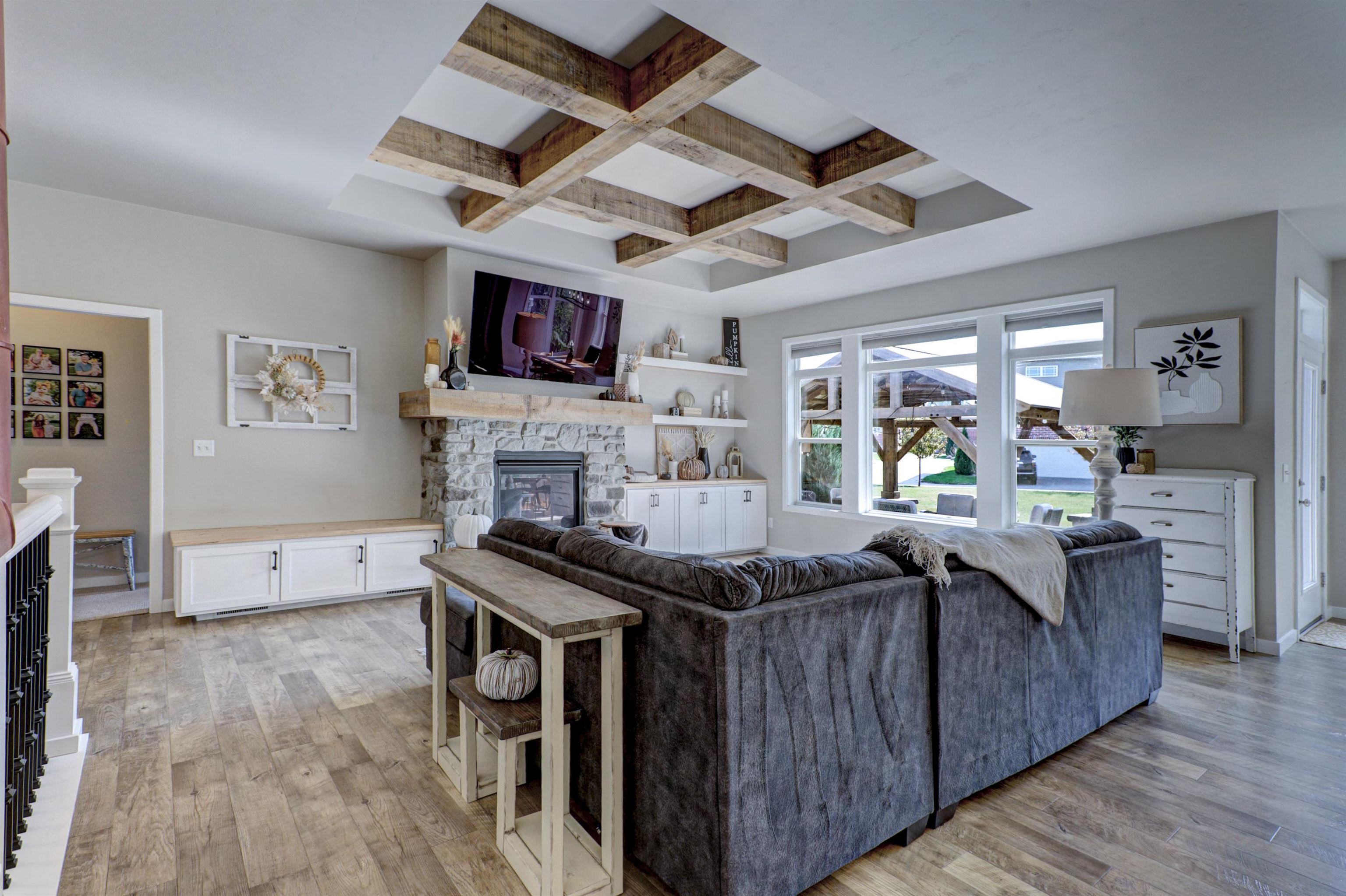 Welcome to they beautifully crafted 3 bedroom home with a spacious flex room, built by Canyon Creek homes and ideally situated on a serene pond lot in the desirable Chestnut Creek subdivision. Step inside to discover an inviting open layout highlighted by a stunning cathedral ceiling that enhances the homes airy, light filled atmosphere. The living room features a cozy fireplace flanked by custom built-ins perfect for both relaxing evenings and stylish entertaining. The heart of the home boasts custom cabinetry, offering both elegance and functionality in the kitchen (with walk-in pantry) and throughout. A thoughtfully designed mudroom provides everyday convenience, while the walk-up bonus storage room above the garage ensures you'll never run out of storage. The primary suite serves as a private retreat complete with a well appointed ensuite bath designed for comfort and relaxation. Enjoy peaceful views of the pond creating a tranquil setting that's hard to find. Located within the highly sought after SWAC school district, this home combines quality craftsmanship, smart design, and an unbeatable location. Don't miss your opportunity to own this exceptional property.