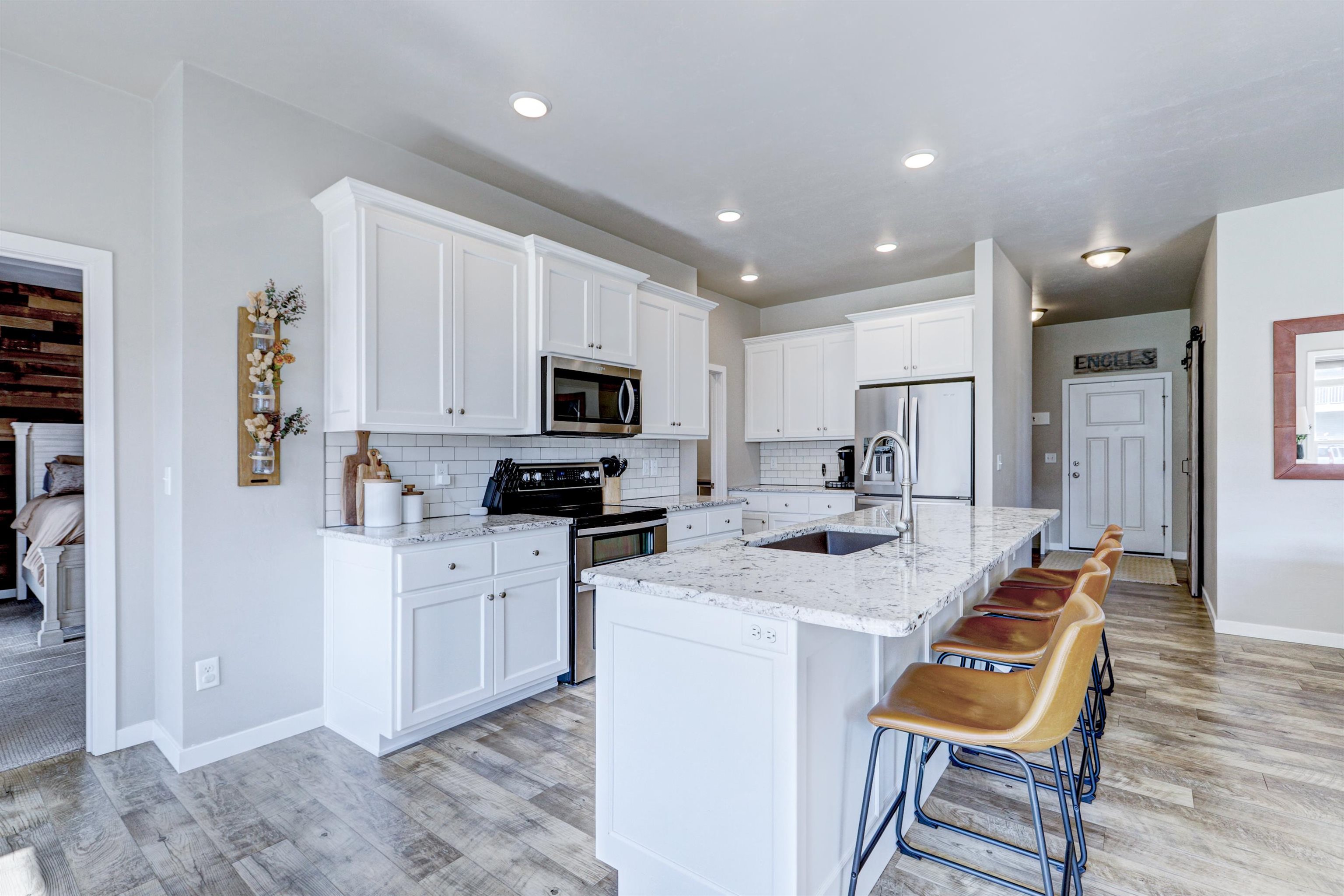 Welcome to they beautifully crafted 3 bedroom home with a spacious flex room, built by Canyon Creek homes and ideally situated on a serene pond lot in the desirable Chestnut Creek subdivision. Step inside to discover an inviting open layout highlighted by a stunning cathedral ceiling that enhances the homes airy, light filled atmosphere.