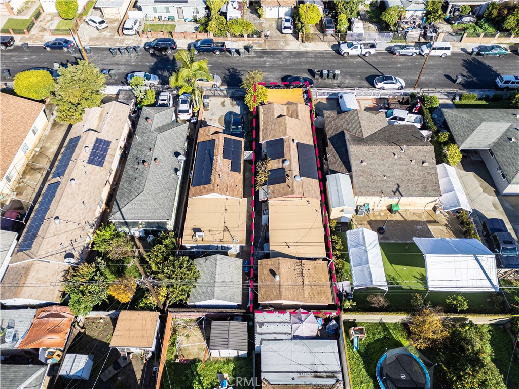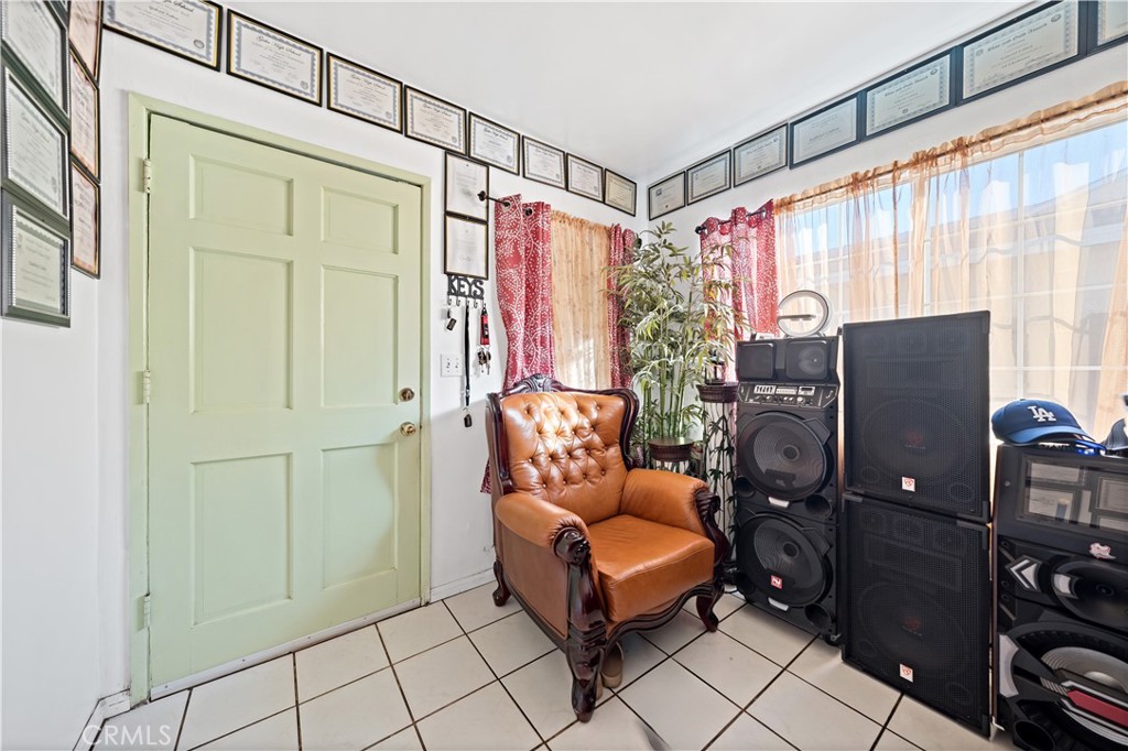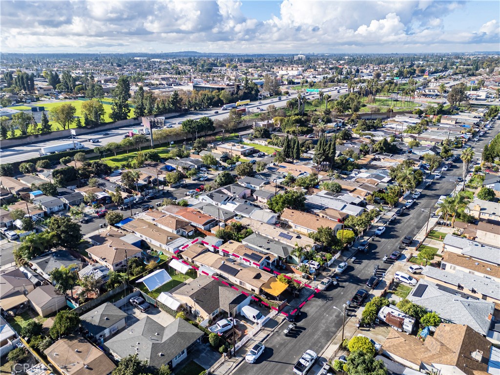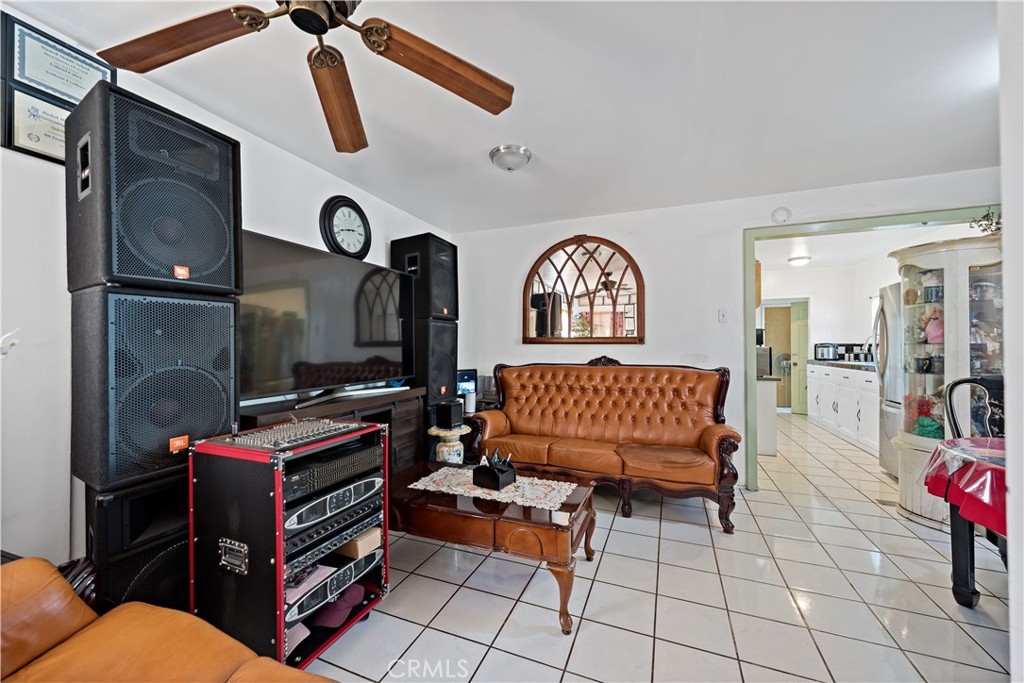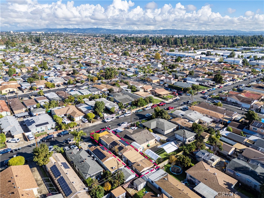 Single-story residence located on a residential Artesia street with convenient access to surrounding amenities and major commuting routes. The main home offers 3 bedrooms and 2 bathrooms within approximately 936 square feet, featuring a living room that opens to a dining area and a galley-style kitchen. Tile flooring runs through the main living areas, with natural light from multiple windows and a functional, efficient layout.The kitchen includes tiled countertops, open shelving, and direct access to the dining area. An exterior laundry area is located just outside the home, providing washer and dryer hookups in a covered utility space. In addition to the main residence, the property includes a converted detached structure currently used as a fourth bedroom or bonus room, offering flexibility for additional living, workspace, or storage use (buyer to verify permits and intended use). Property includes solar panels (buyer to verify system details, ownership, and transfer terms), offering potential energy efficiency benefits. The front yard is gated and includes a concrete patio/parking area, while the lot extends back from the street with separation between structures. The home qualifies for the Ladder Up grant program through City National Bank (buyer to verify eligibility and program terms). Convenient access to nearby shopping, dining, and regional transportation corridors.