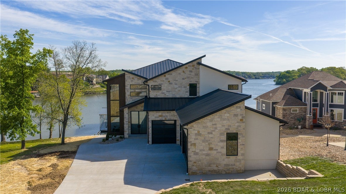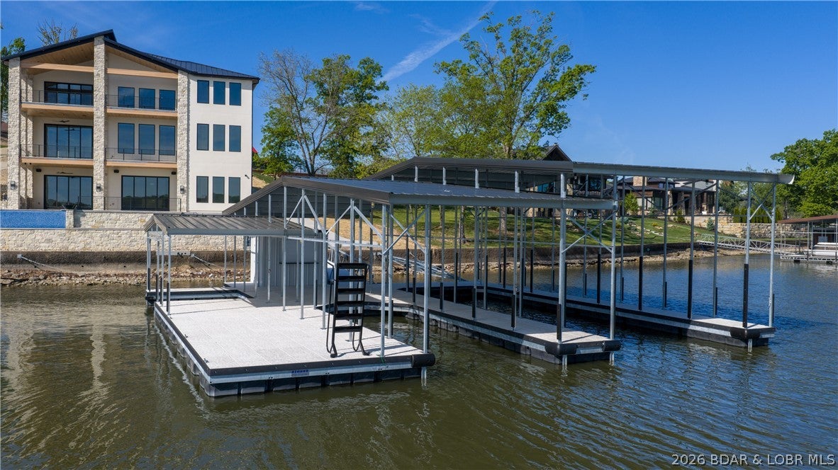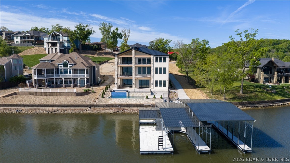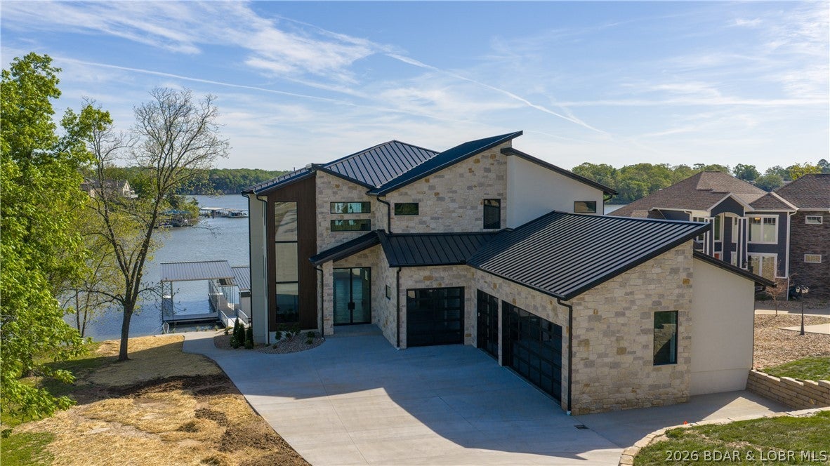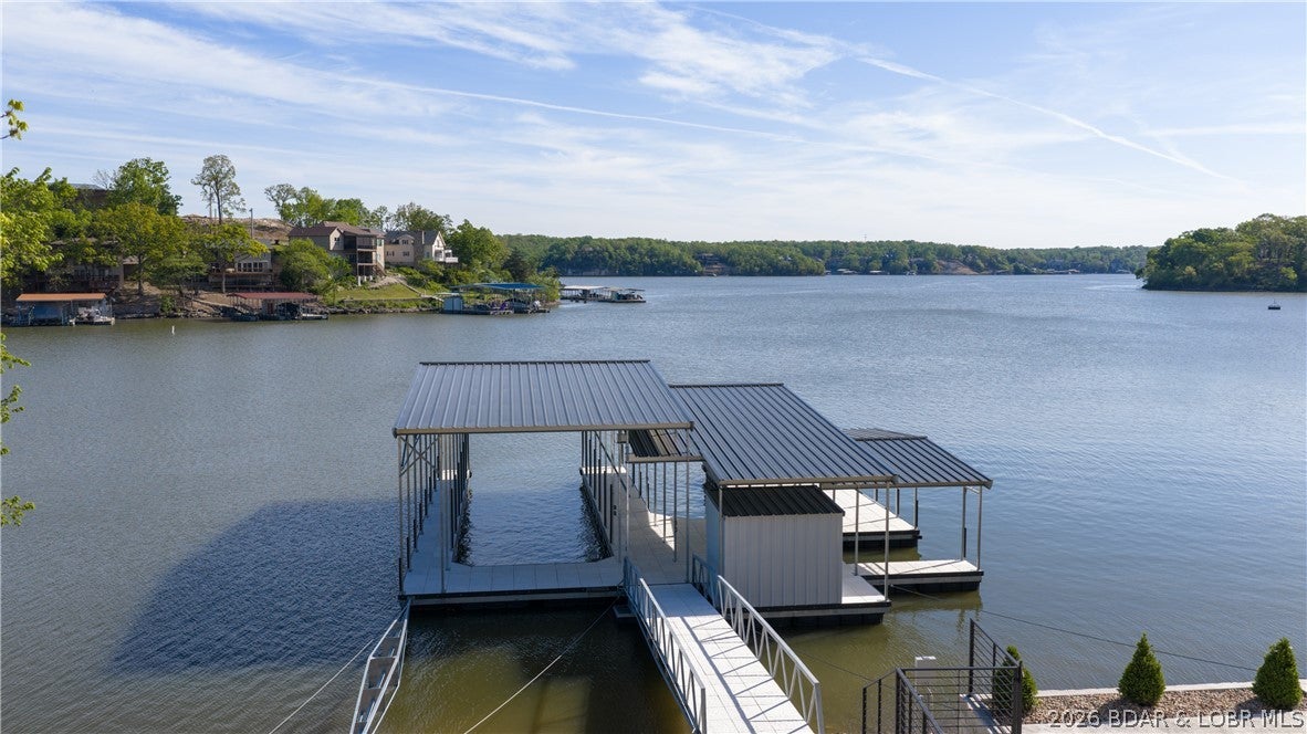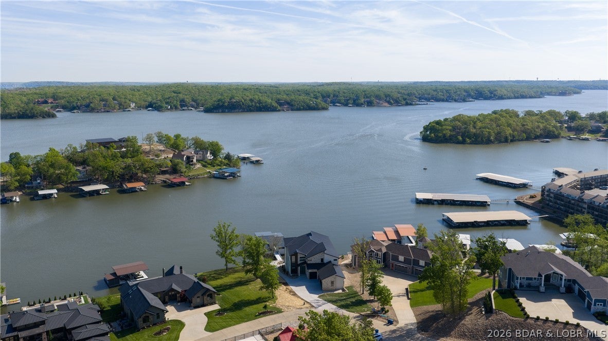 The nicest home in the most upscale subdivision at the LOZ! This 10,000SqFt masterpiece will be completed 4/1/26 & leave you in awe. Centrally located on the 21MM near Redhead, Shorty Pants, & PBC, this no wake, cove located gem offers constant boat watching for Lake enthusiasts. In totality, the property presents 6 bedrooms(each are ensuites), 7 full baths, 2 half baths, a 2 tiered salt water gunite pool, massive new 2 well boat dock(16x50 & 12x34 ft slips), elevator, floating staircase, & gentle lakefront lot. The exterior consists of stucco, NewTechWood, & native Kansas limstesone & marble quality limestone. The main level offers 2 ensuites, the kitchen, living, dining, & laundry rooms, & 10 ft collapsible sliding doors. Venture upstairs for 3 ensuites, bar, & a half bathroom. The lower level has a living area, golf simulator room, wine room, lakeside ensuite, storage, & walks out to the pool. Upgrades include Sonos wired speakers throughout, 4 car heated/cooled garage(fit 8 w/ lifts), each level has stamped concrete patios, Viking appliances, Quaker aluminum windows, Napoleon electric fireplaces, & was designed by ML Designs(KCs top interior designer 2022-24). Tour it today!