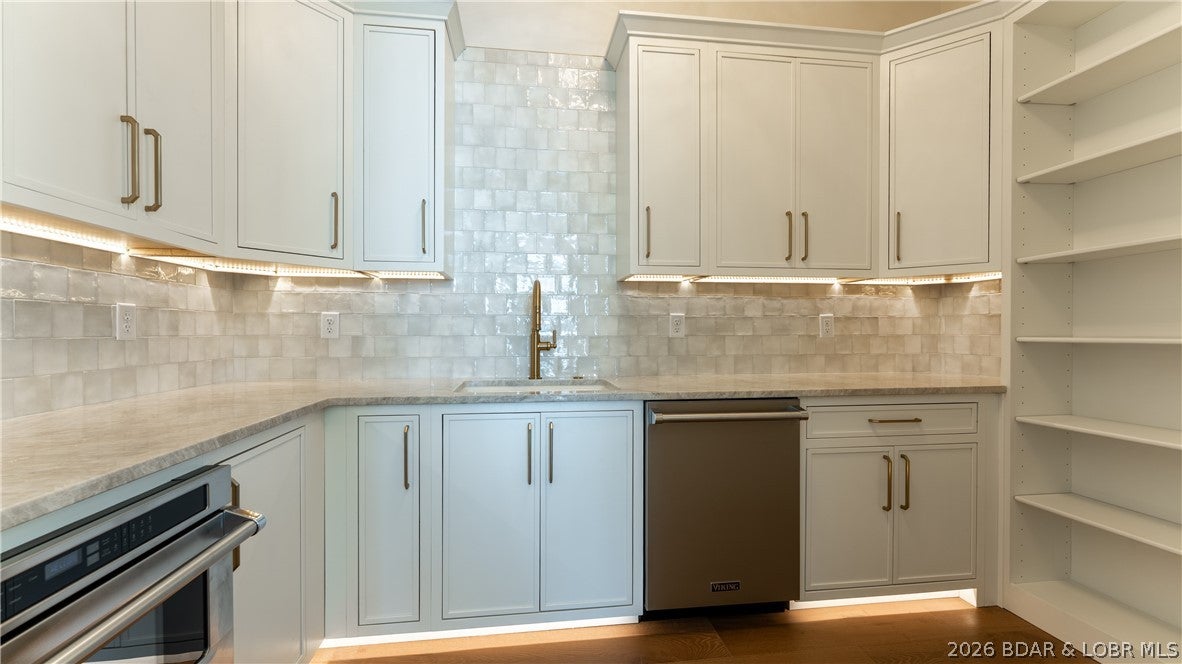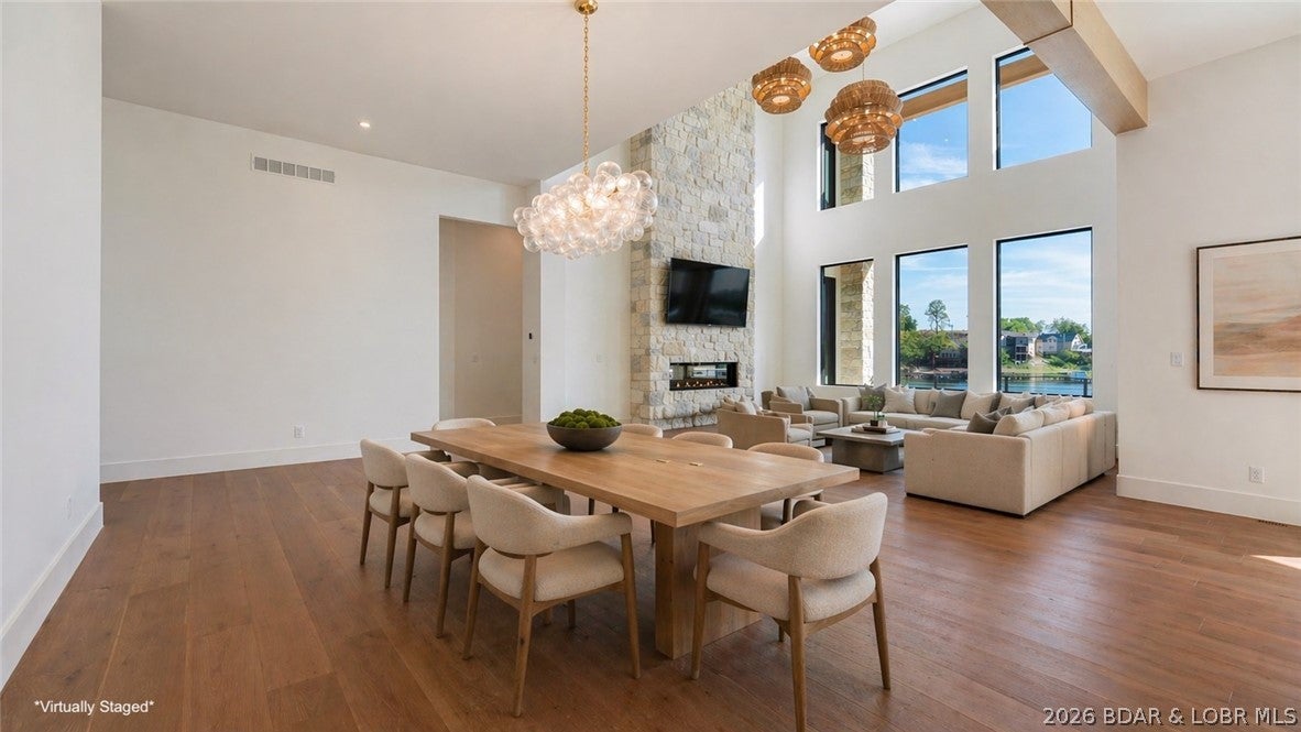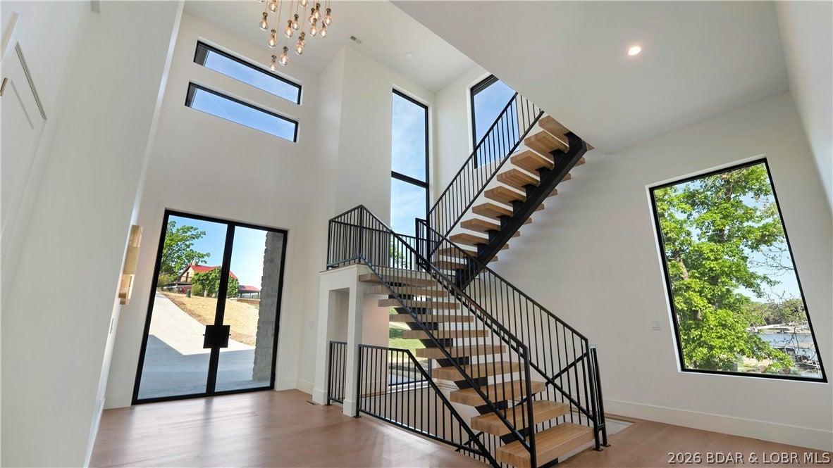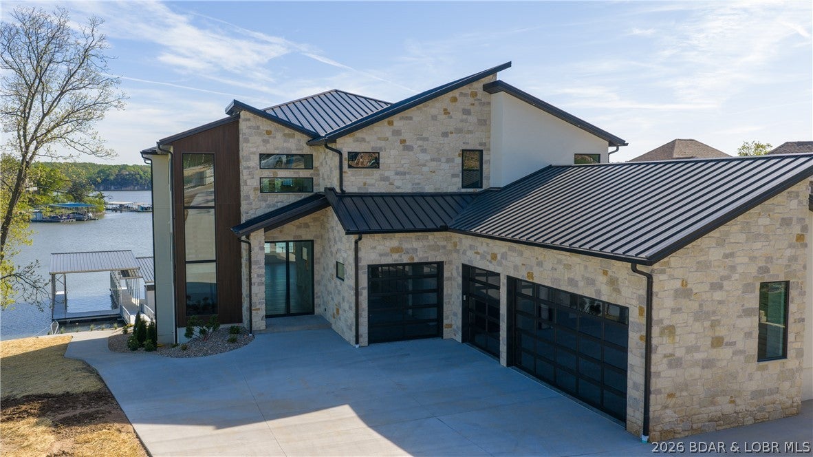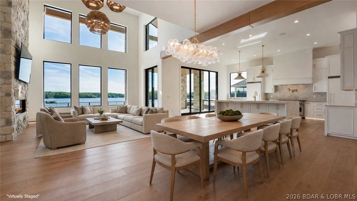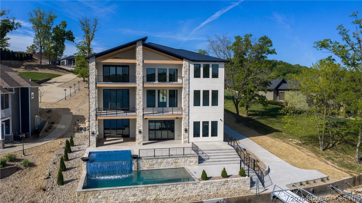 The nicest home in the most upscale subdivision at the LOZ! This 10,000SqFt masterpiece will be completed 4/1/26 & leave you in awe. Centrally located on the 21MM near Redhead, Shorty Pants, & PBC, this no wake, cove located gem offers constant boat watching for Lake enthusiasts. In totality, the property presents 6 bedrooms(each are ensuites), 7 full baths, 2 half baths, a 2 tiered salt water gunite pool, massive new 2 well boat dock(16x50 & 12x34 ft slips), elevator, floating staircase, & gentle lakefront lot. The exterior consists of stucco, NewTechWood, & native Kansas limstesone & marble quality limestone. The main level offers 2 ensuites, the kitchen, living, dining, & laundry rooms, & 10 ft collapsible sliding doors. Venture upstairs for 3 ensuites, bar, & a half bathroom. The lower level has a living area, golf simulator room, wine room, lakeside ensuite, storage, & walks out to the pool. Upgrades include Sonos wired speakers throughout, 4 car heated/cooled garage(fit 8 w/ lifts), each level has stamped concrete patios, Viking appliances, Quaker aluminum windows, Napoleon electric fireplaces, & was designed by ML Designs(KCs top interior designer 2022-24). Tour it today!
