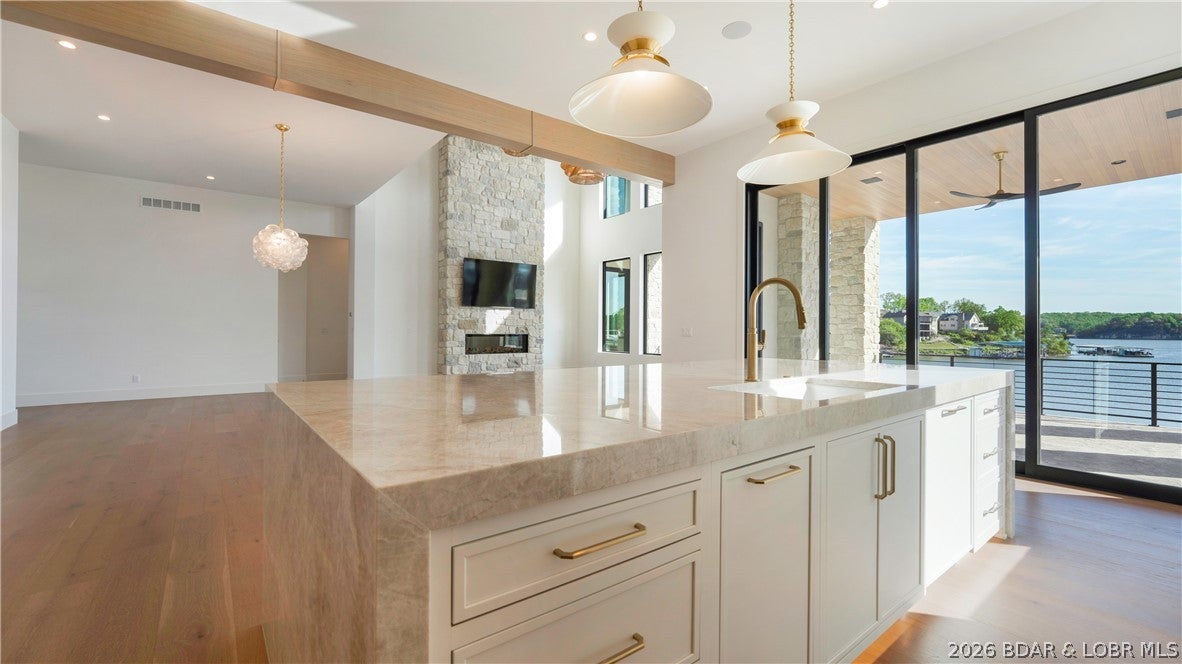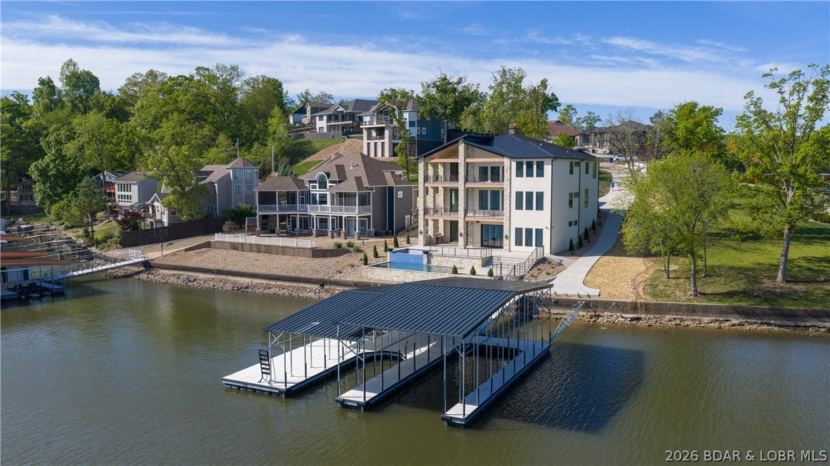 The nicest home in the most upscale subdivision at the LOZ! This 10,000SqFt masterpiece IS COMPLETED & will leave you in awe. Centrally located on the 21MM near Redhead, Shorty Pants, & PBC, this no wake, cove located gem offers constant boat watching for Lake enthusiasts. In totality, the property presents 6 bedrooms(each are ensuites), 8 full baths, 1 half bath, a 2 tiered salt water gunite pool, massive new 2 well boat dock(16x50 & 12x34 ft slips), elevator, floating staircase, & gentle lakefront lot. The exterior consists of stucco, NewTechWood, & native Kansas limstesone & marble quality limestone. The main level offers 2 ensuites, the kitchen, living, dining, & laundry rooms, & 10 ft collapsible sliding doors. Venture upstairs for 3 ensuites, bar, & a half bathroom. The lower level has a living area, golf simulator room, wine room, lakeside ensuite, storage, & walks out to the pool. Upgrades include Sonos wired speakers throughout, 4 car heated/cooled garage(fit 8 w/ lifts), each level has stamped concrete patios, Viking appliances, Quaker aluminum windows, Napoleon electric fireplaces, & was designed by ML Designs(KCs top interior designer 2022-24). Tour it today!