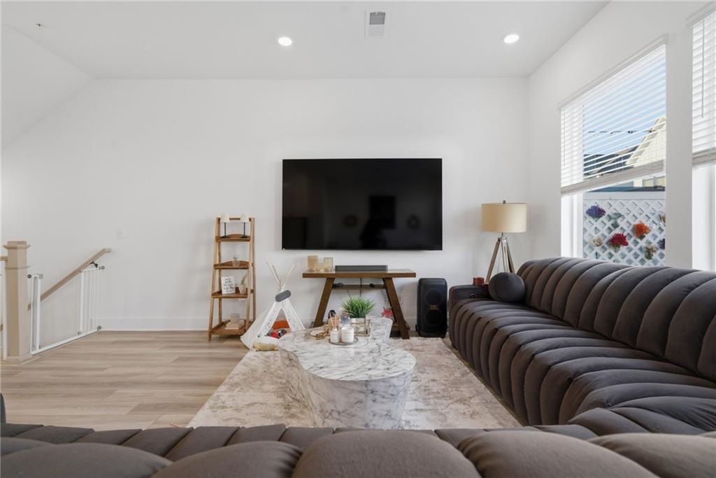ALL FURNITURE IS INCLUDED IN THE PURCHASE PRICE, making this a truly move-in-ready, turnkey opportunity. This stunning EAST-FACING new construction townhome in the highly desirable Ashbury community offers a rare turnkey opportunity. The sought-after Canterfield plan in this gated neighborhood, built by David Weekley Homes, features the award-winning “Life Design” layout—blending the spaciousness of a single-family home with the low-maintenance convenience of townhome living. Bathed in natural light and thoughtfully designed across three levels, this home is perfect for elevated everyday living and effortless entertaining. The main level features hardwood floors, soaring ceilings, a two-car garage with abundant storage, and a versatile bedroom with walk-in closet and full bath—ideal for a home office, media room, fitness space, or guest suite. Upstairs, the chef-inspired kitchen boasts crisp white cabinetry, an oversized center island, subway tile backsplash, and abundant windows. It flows seamlessly into the family and dining areas, creating an ideal space for entertaining or everyday living. Step outside to a private deck—perfect for morning coffee or evening relaxation. ALL LIVING ROOM FURNITURE AND TVS ARE INCLUDED! The luxurious owners suite is a true retreat, featuring a spa-inspired bath with soaking tub, dual vanities, oversized shower, and a generous walk-in closet. Additional bedrooms offer space for family or guests, and the washer and dryer are included for your convenience. Located just minutes from Avalon, Downtown Roswell, The Alpha Loop, North Point Mall, and with easy access to GA-400 via Holcomb Bridge and Mansell Roads, this home perfectly combines luxury, lifestyle, and location in one of Roswells most sought-after neighborhoods.