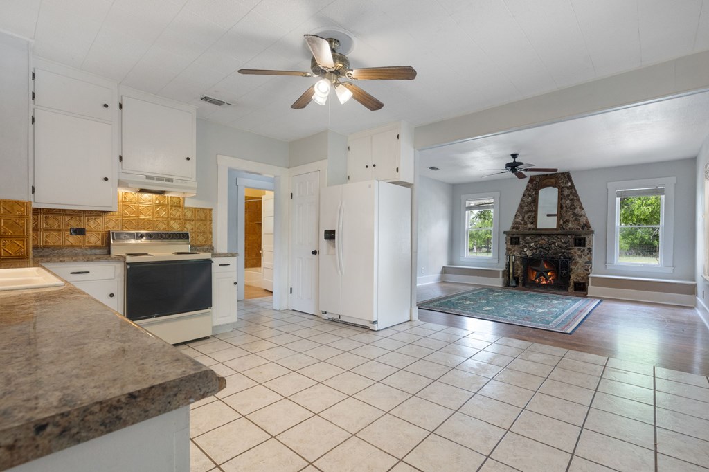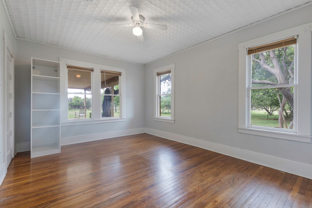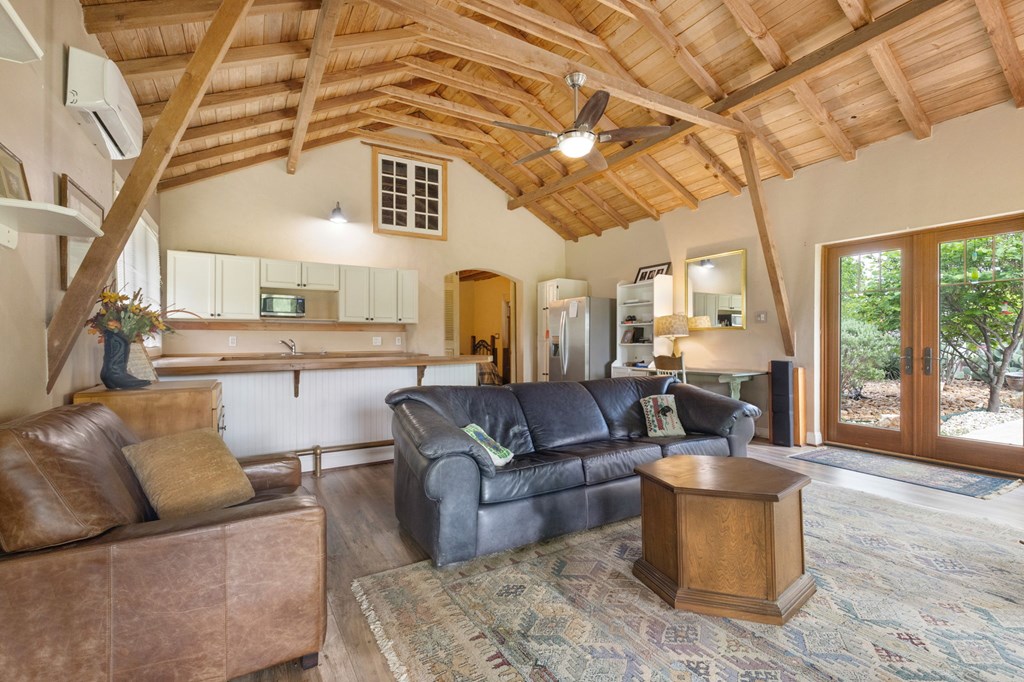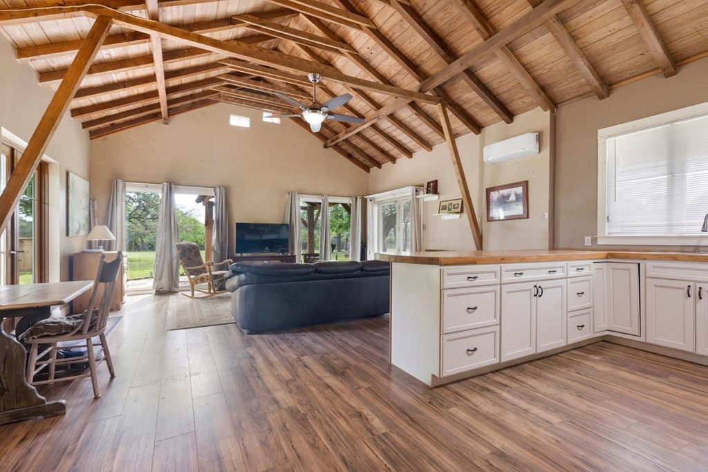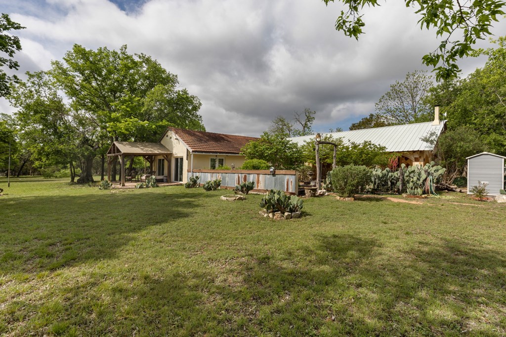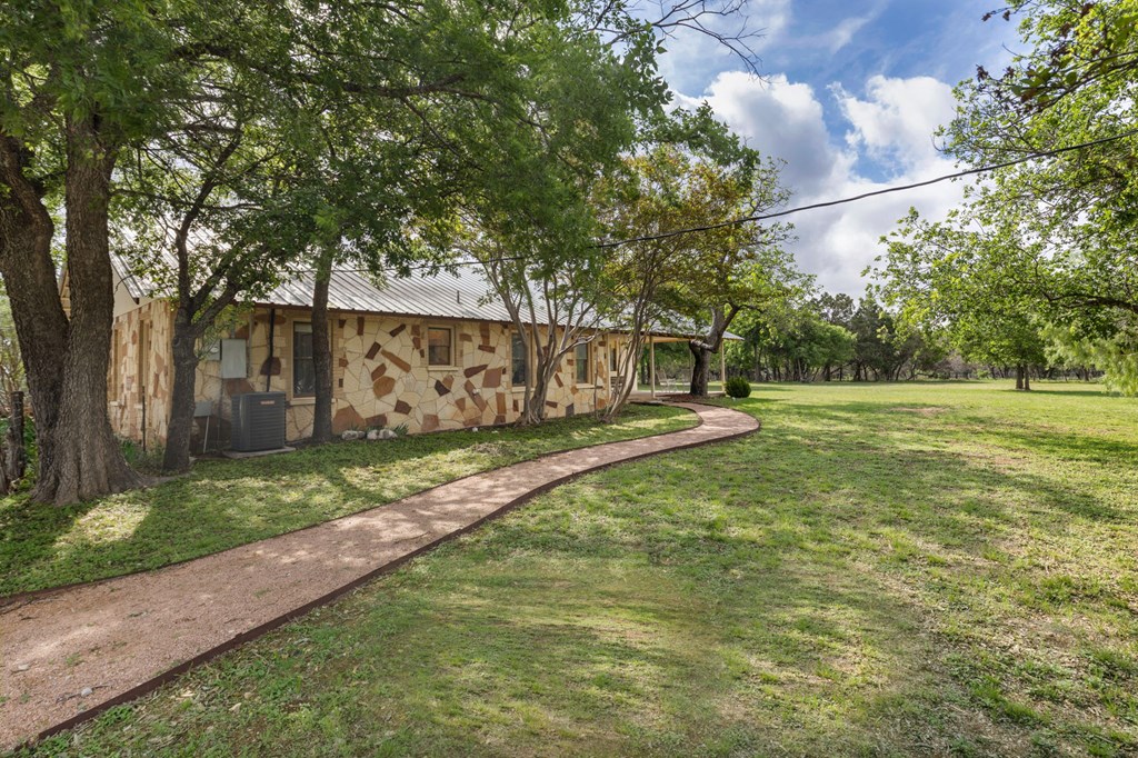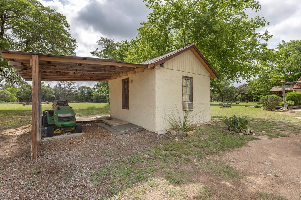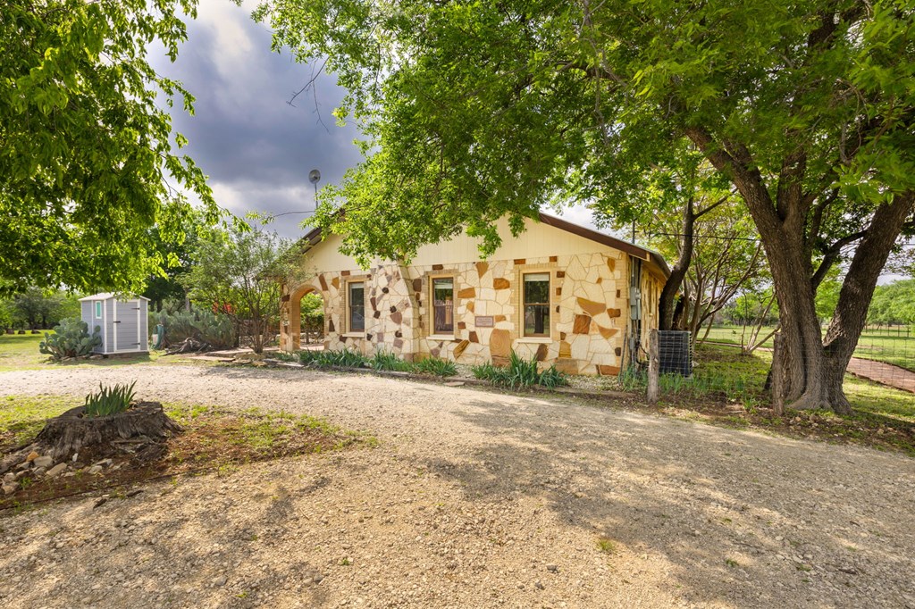 Welcome to 1237 Hollmig Lane in Fredericksburg, Tx! Ideally located just minutes from Main Street, you'll have easy access to local dining, shopping, and wineries while still enjoying the peace and privacy of country living. Built in 1941, this charming Llano Flag-stone rock home offers 3 Bedrooms 2 Bathrooms, featuring original wood floors, a cozy fireplace, fresh paint, and a welcoming front porch! Perfect for morning coffee or evening BBQ,s. Situated on 3.5 Acres within the ETJ, this this property provides flexibility and endless potential. The fully fenced land is dotted with beautiful mature trees and included a gravel driveway leading to the home, creating a scenic and private setting. A standout feature is the fully updated (2018) Guest Suite, complete with its own living room, kitchen, bathroom, and bedroom. Ideal for extended family, guest, or potential rental use. Laid with Italian tile floors in the mother-in-law suite. Additional improvements include an insulated workshop with a window unit, perfect for hobbies, or workspace needs, plus a 40-foot sea container for extra storage (can convey). Don't miss this opportunity to own a unique and versatile property in the heart of Fredericksburg! This property is 1.9 Miles from the Hospital, 1.6 Miles to the High School!
