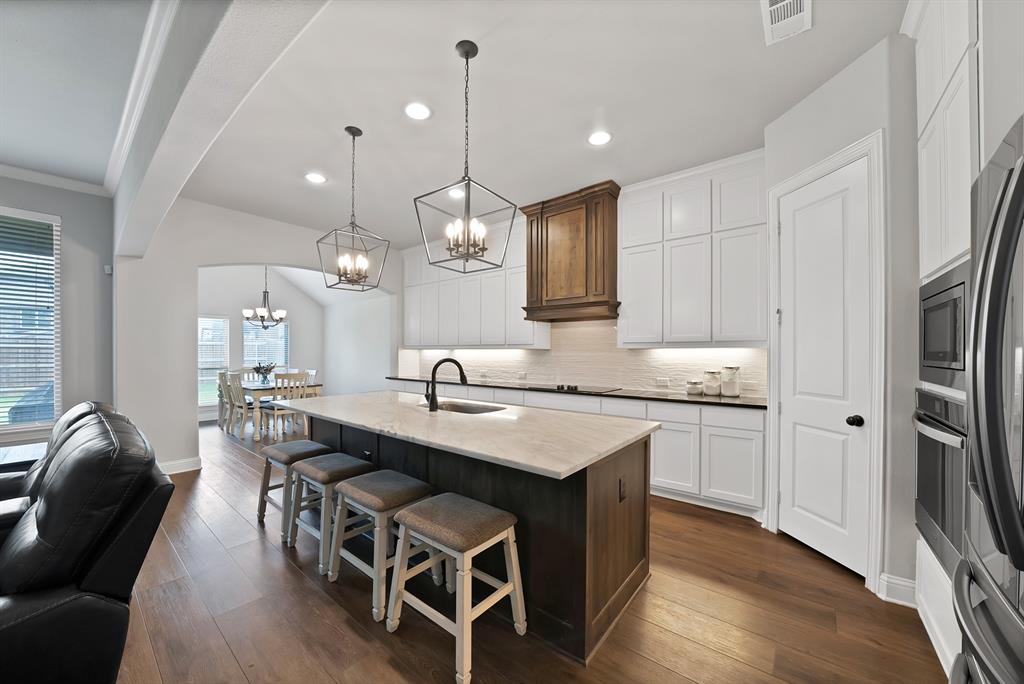 Are you looking for a custom built home near Hickory Stick≠ Well this only 2 owner home is ready for you to move in and make it your own! This home is a short sale situation. This stately beauty offers an expansive list of upgrades including grand 2 story foyer accented in french stone, breakfast room & formal dining room w/tray ceiling & crisp white pillars. Sunken 2 story great room w/gas log fireplace, chef's kitchen w/cherry soft-close cabinets, professional grade appliances including gas cooktop w/grill & pot filler tap, stainless steel hood w/warming rack, convection oven & microwave. Office w/custom woodwork could be main level 4th bedroom. Primary Bedroom w/tray ceiling & WIC private bath w/double sink vanity, separate tub & W/I shower. The finished basment theatre room offers a 1/2 bath, full wet bar w/double wine fridge & dimmable lighting projector, screen, surround sound stay! 50yr. roof only 4 year old.