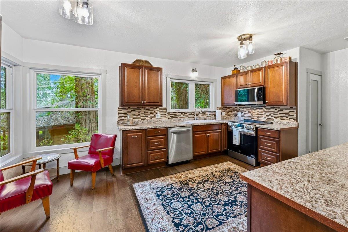 Charming Craftsman residence nestled in the highly desirable Banner Lava Cap area, offering a refined blend of timeless character and modern upgrades. This 3 bedroom, 2 bath home is ideally positioned at the base of Banner Lava Cap, with effortless access to some of Nevada Countys most treasured outdoor amenities, including the scenic NID walking trail. Thoughtfully updated throughout, the home features a beautifully renovated kitchen and upstairs bath, new carpeting, and upgraded windows that enhance both comfort and efficiency. A newer septic system, installed in 2022, adds peace of mind. The lower level maintains its original charm and offers private exterior access ideal for guest, a studio, or flexible living space. A detached garage provides ample storage or workspace. Located just minutes from downtown Nevada City and near local schools, this property offers an exceptional lifestyle defined by convenience, charm, and natural beauty.