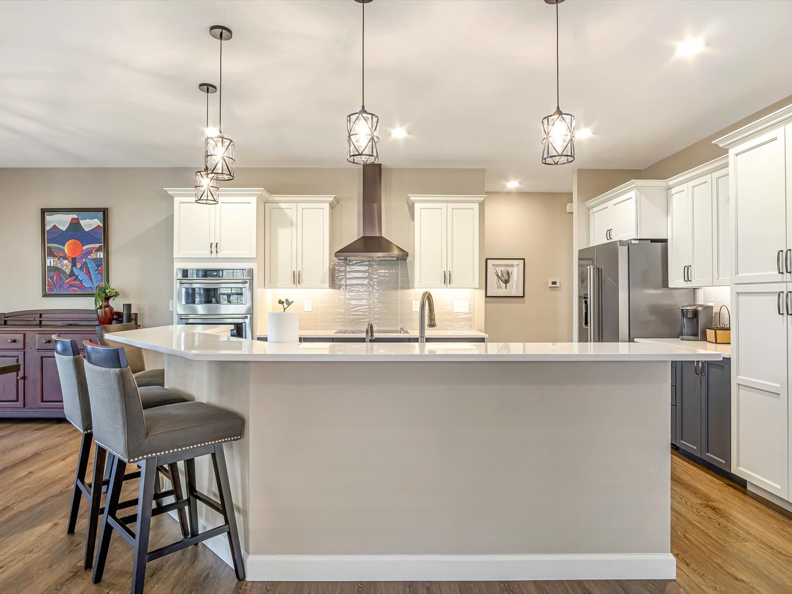 Beautiful home in the sought after Calcutta community! This spacious Rosemary II floor plan offers a modern open concept design with high end finishes throughout. The gourmet kitchen features double wall ovens, cooktop, upgraded cabinetry, quartz countertops, an extended island, and a farmhouse sink perfect for entertaining.