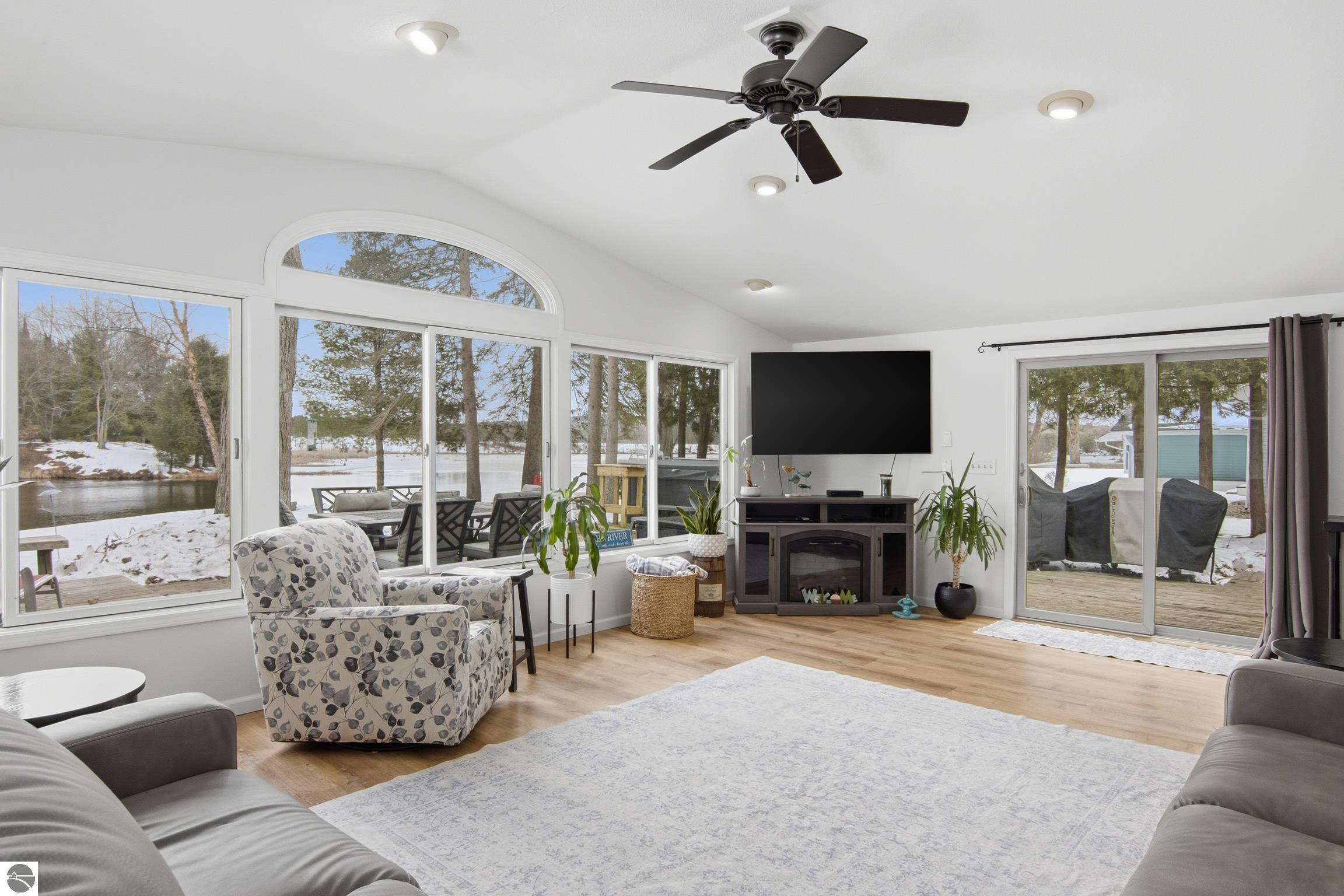 100 feet of direct frontage on the Intermediate River! This 3-bedroom, 1.5-bath home offers over 1,700 sq ft and is ideally situated on Antrim County's Upper Chain of Lakes. Enjoy stunning sunrise views and easy boating access to Intermediate Lake and over 20 miles of waterways through seven connecting lakes.