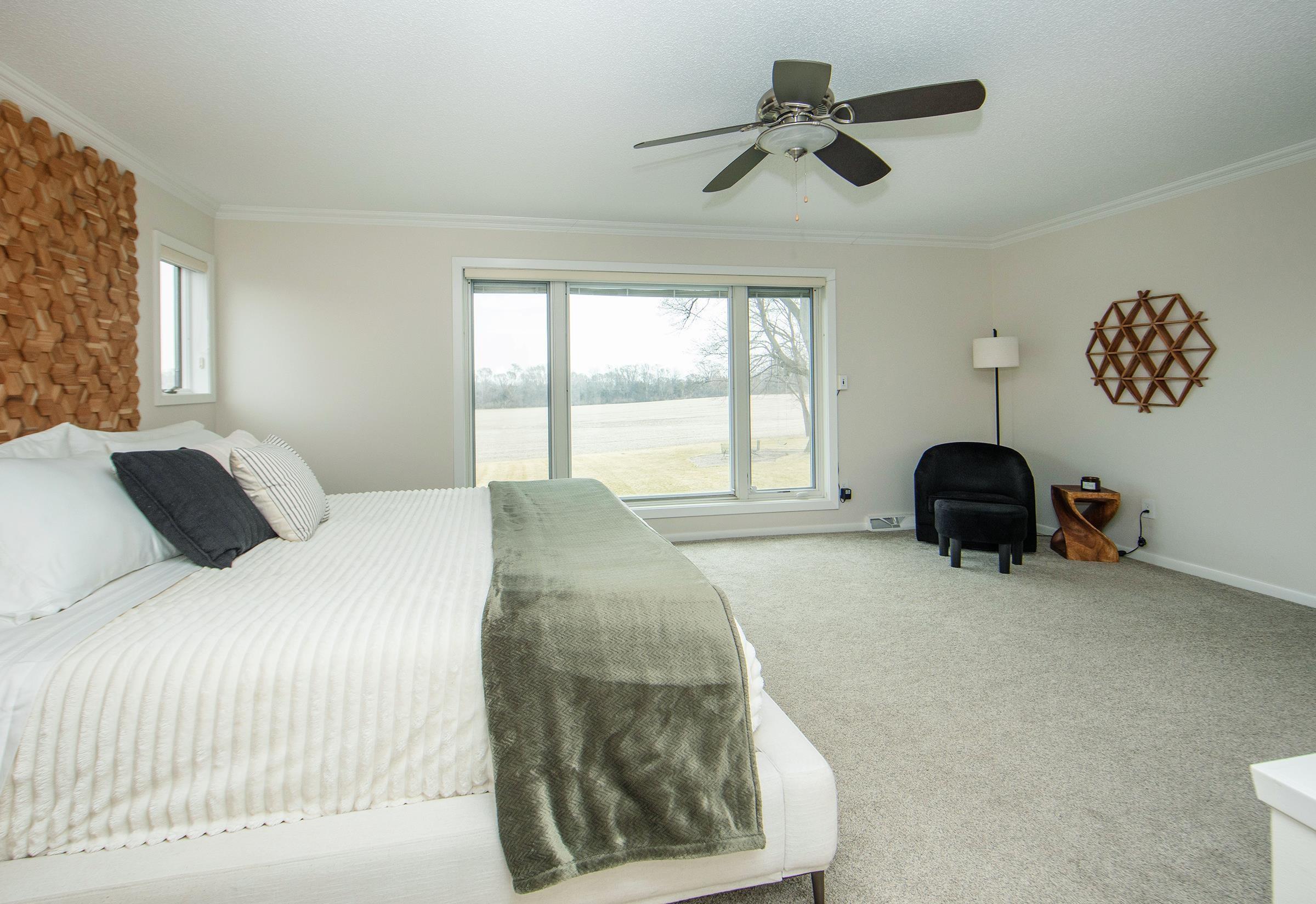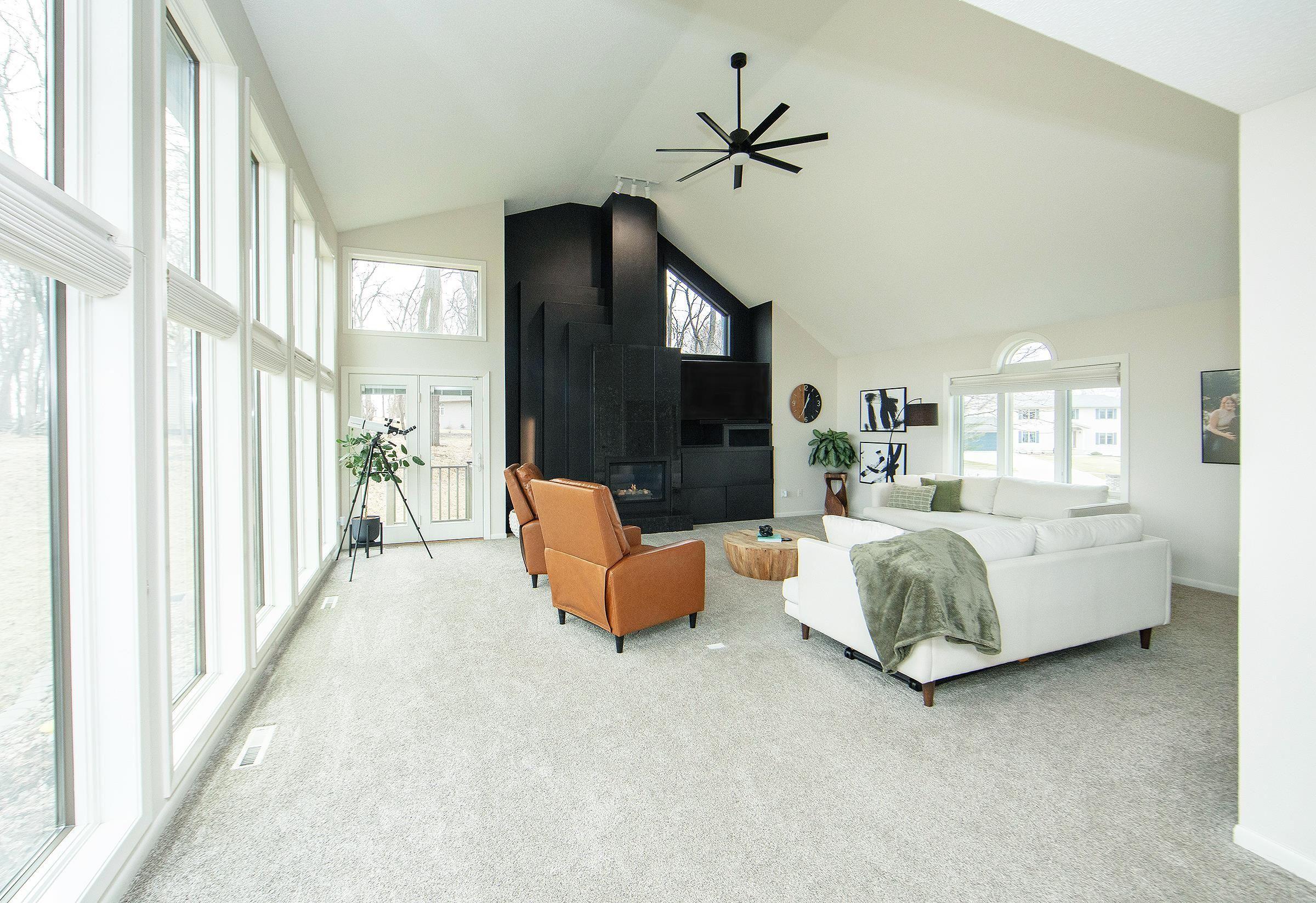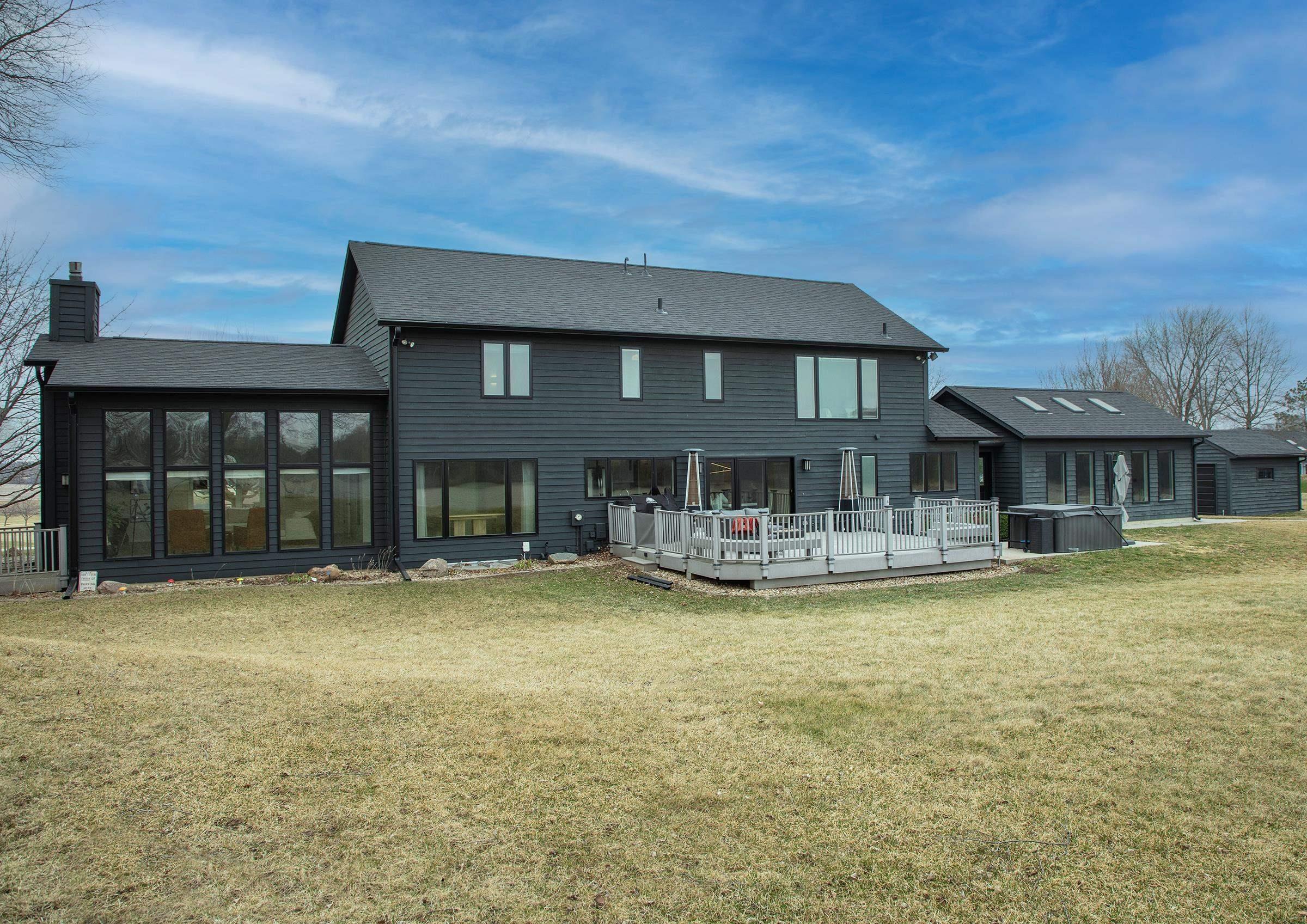 Welcome to this truly one-of-a-kind property just on the outskirts of Waterloo, perfectly located near popular attractions like Lost Island Theme Park, Lost Island Waterpark, Isle Casino Hotel Waterloo, and area golf courses, offering both convenience and entertainment just minutes away. Situated at the end of a quiet cul-de-sac, this immaculate 2 story home makes a bold first impression with its dark, moody exterior and modern curb appeal. A circular driveway leads you to the front entrance, where youre welcomed by a grand foyer featuring an open staircase that sets the tone for the rest of the home. To the left, youll find a private home office complete with beautiful built-ins, perfect for working from home. To the right, a massive living room boasts soaring vaulted ceilings, abundant natural light from oversized windows, and a cozy fireplace that anchors the space. The updated kitchen and dining area feature solid surface countertops, ample cabinetry, and scenic views of the spacious backyard, making it ideal for both everyday living and entertaining. The main level is rounded out with a convenient laundry room and a half bath. Upstairs, accessible by two separate staircases, youll discover four generously sized bedrooms. The primary suite is a true retreat, offering a walk-in closet and a private en suite complete with a jetted tub. An additional full bathroom serves the remaining bedrooms. The lower level provides even more living space with a large family room, another full bathroom, and plenty of storage options. One of the standout features of this home is the incredible indoor pool room, seamlessly connected to the main level. With vaulted ceilings, skylights, and walls of windows, this space is flooded with natural light and creates the ultimate environment for year round enjoyment and entertaining. Set on just over 1.5 acres, the property also includes a 3-stall attached garage and two additional outbuildings, one measuring 24 x 24, offering endless possibilities for storage, hobbies, or workspace. With modern updates, a new roof, and an unbeatable combination of space, style, and amenities, this is a home you wont want to miss. Schedule your private showing today!