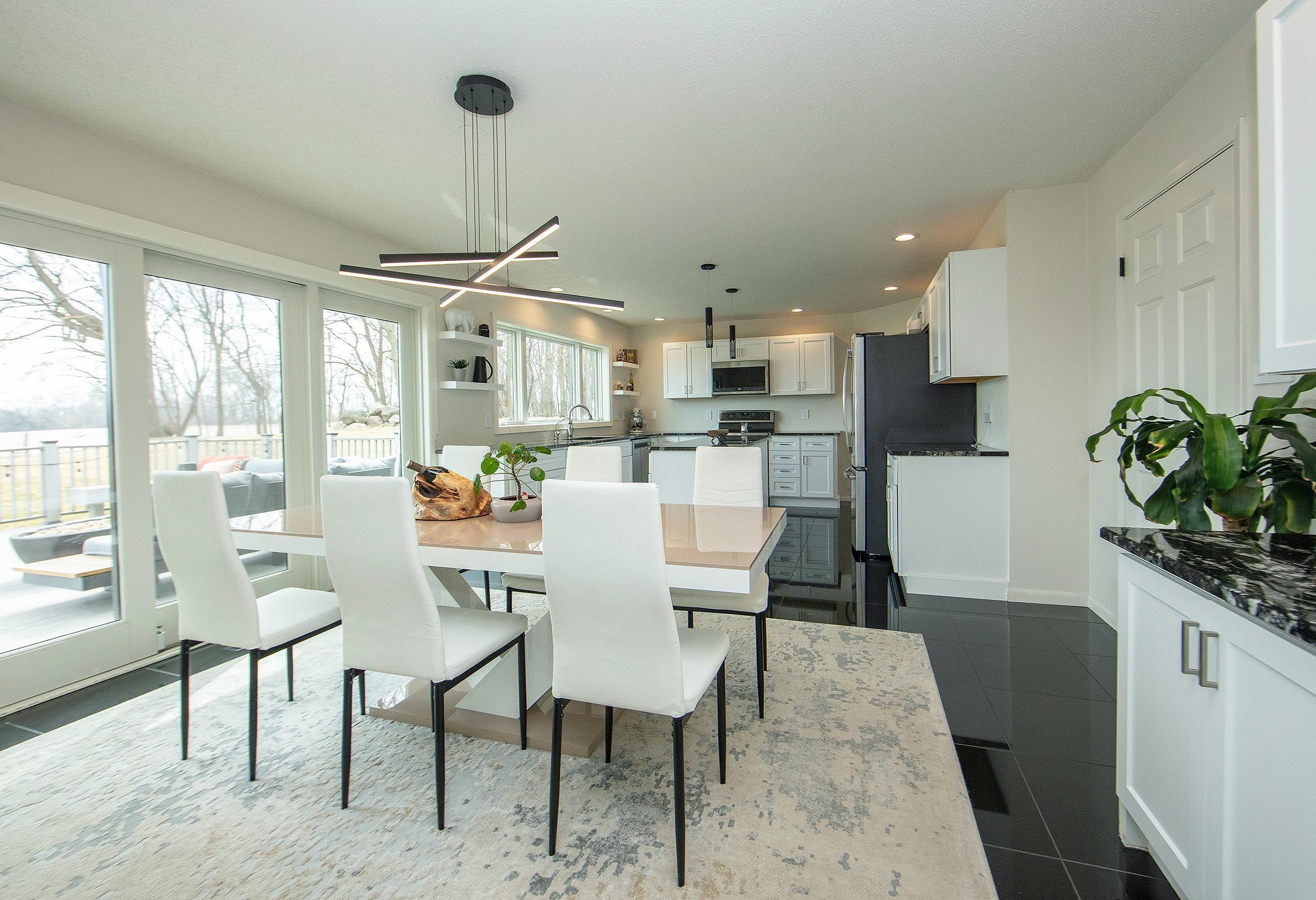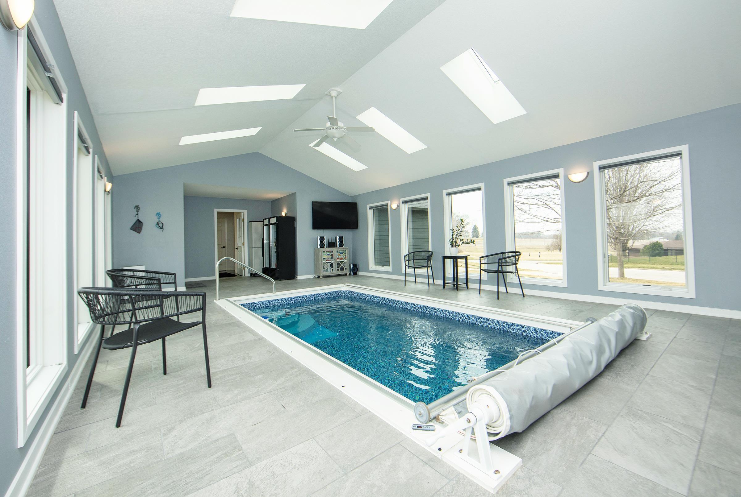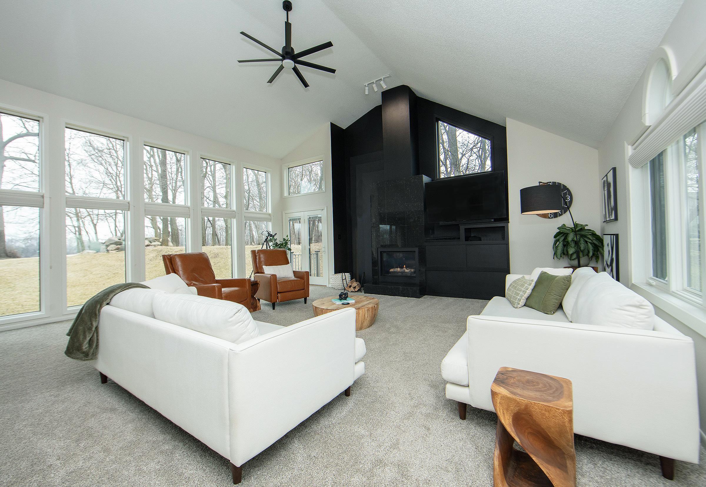 Welcome to this truly one-of-a-kind property just on the outskirts of Waterloo, perfectly located near popular attractions like Lost Island Theme Park, Lost Island Waterpark, Isle Casino Hotel Waterloo, and area golf courses, offering both convenience and entertainment just minutes away. Situated at the end of a quiet cul-de-sac, this immaculate 2 story home makes a bold first impression with its dark, moody exterior and modern curb appeal. A circular driveway leads you to the front entrance, where youre welcomed by a grand foyer featuring an open staircase that sets the tone for the rest of the home. To the left, youll find a private home office complete with beautiful built-ins, perfect for working from home. To the right, a massive living room boasts soaring vaulted ceilings, abundant natural light from oversized windows, and a cozy fireplace that anchors the space. The updated kitchen and dining area feature solid surface countertops, ample cabinetry, and scenic views of the spacious backyard, making it ideal for both everyday living and entertaining. The main level is rounded out with a convenient laundry room and a half bath. Upstairs, accessible by two separate staircases, youll discover four generously sized bedrooms. The primary suite is a true retreat, offering a walk-in closet and a private en suite complete with a jetted tub. An additional full bathroom serves the remaining bedrooms. The lower level provides even more living space with a large family room, another full bathroom, and plenty of storage options. One of the standout features of this home is the incredible indoor pool room, seamlessly connected to the main level. With vaulted ceilings, skylights, and walls of windows, this space is flooded with natural light and creates the ultimate environment for year round enjoyment and entertaining. Set on just over 1.5 acres, the property also includes a 3-stall attached garage and two additional outbuildings, one measuring 24 x 24, offering endless possibilities for storage, hobbies, or workspace. With modern updates, a new roof, and an unbeatable combination of space, style, and amenities, this is a home you wont want to miss. Schedule your private showing today!