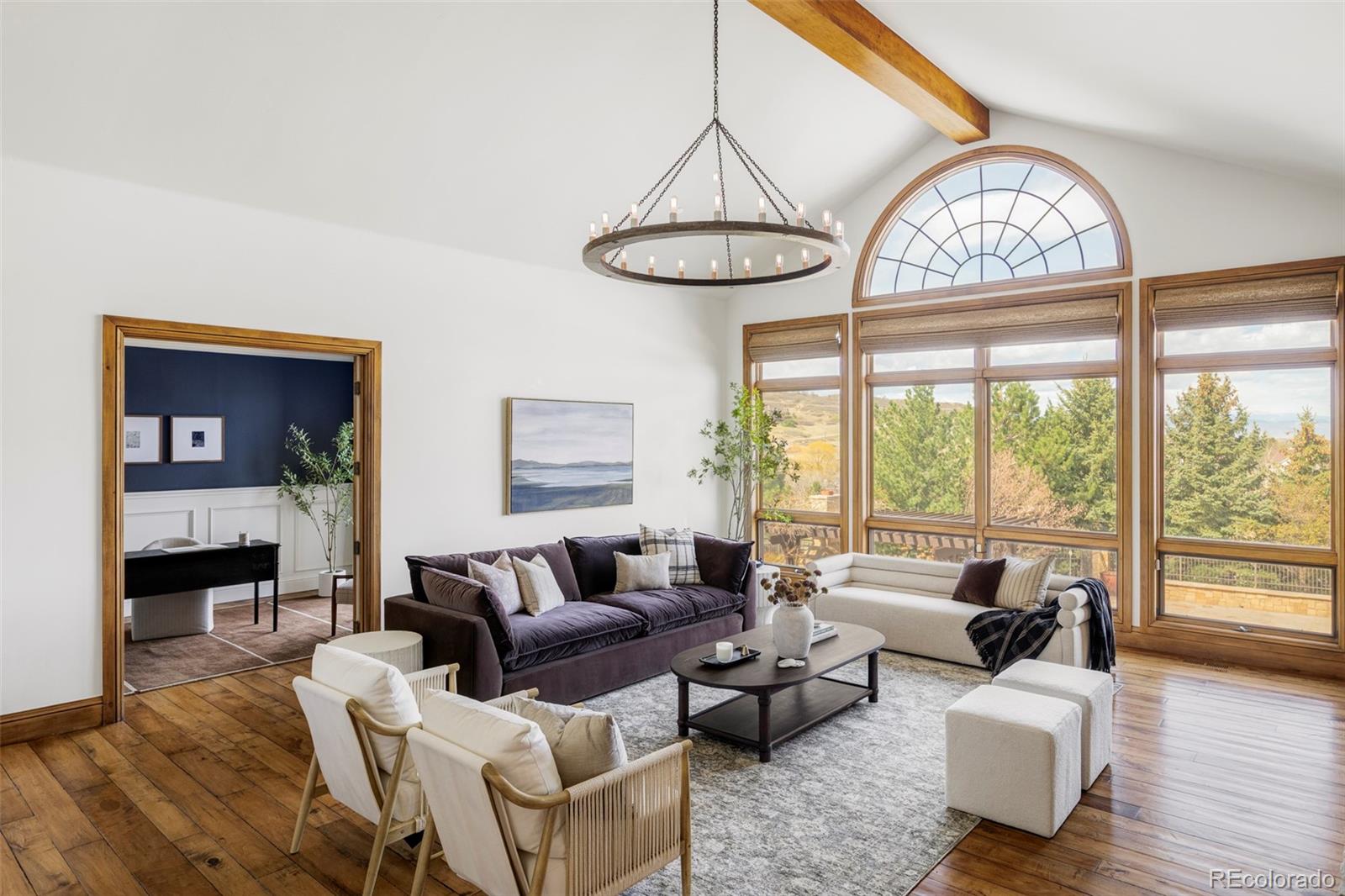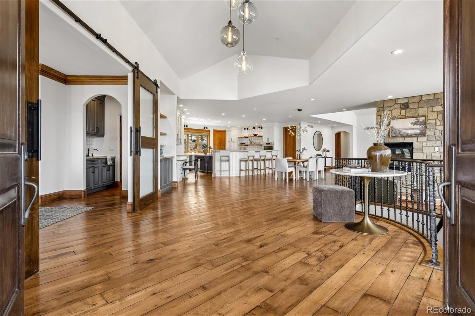 Some homes are built. This one was composed. The result of a collaboration between Ades Design and celebrated interior designer Andrea Schumacher, every inch of this Colorado foothills estate reflects an enduring dedication to craft, beauty, and intentional living. Set on nearly three-quarters of an acre with commanding mountain views from every space, this is a property where the Rocky Mountain lifestyle isnt just nearby-its woven into the very fabric of home. Step inside and the scale announces itself immediately: soaring 20-foot tongue-and-groove ceilings crown the living room, where a dramatic steel fireplace anchors the space and oversized windows frame the mountains like living artwork. The gourmet kitchen is as functional as it is beautiful, flowing seamlessly into a dining room distinguished by a custom built-in buffet with dual wine refrigerators-a nod to the effortless entertaining this home was made for. A dedicated workspace, private office, and a thoughtfully appointed mudroom with generous storage round out a main floor designed to support the rhythms of daily life without compromising on elegance. The primary suite is a sanctuary unto itself-a fireplace for quiet evenings, a spa-inspired bath with an oversized shower and deep soaking tub, and a private balcony where the mountains greet you each morning. Three additional ensuite bedrooms on the upper level ensure everyone enjoys the same sense of privacy and comfort, complemented by a loft and sitting area that invites quiet moments and casual gatherings alike. Below grade, the energy shifts-playful, active, and endlessly versatile. A large game and recreation room with its own fireplace opens to the outdoors, while a second guest suite provides complete autonomy for visitors. A custom barn door reveals the gym of ones dreams: rubber floors, a wall of mirrors, and each detail calibrated for serious use. Overhead, a lofted kids playroom with a custom ladder sparks imagination at every age. Feel immersed in the mountains while remaining effortlessly connected-just 25 minutes to Denver and 15 minutes to the charm of downtown Littleton. Neighborhood trails, a park, and a playground as well as the nearby Red Rocks Country Club extend the Colorado lifestyle further still.