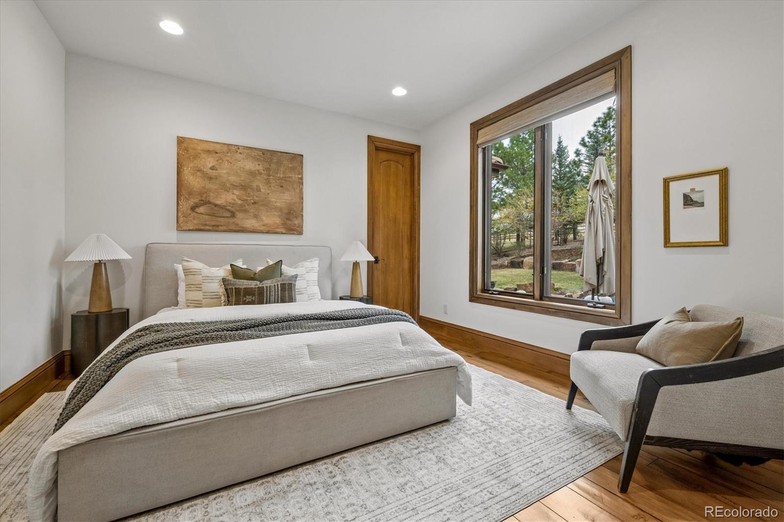 Experience refined country living in this exceptional custom estate nestled on 4.95 pristine acres in the prestigious MacArthur Ranch. This Home Has FULL WEST MOUNTAIN VIEWS from almost every room! Perfectly positioned just 15 minutes from premier shopping and dining, this property offers the ideal blend of privacy, convenience, and elevated design.Thoughtfully crafted with a spacious ranch-style floor plan, the home features four expansive bedrooms, each with its own private sitting area and spa-inspired en suite bathroom, creating a true retreat for family and guests alike. Every level is complete with a guest powder room, ensuring comfort and convenience throughout.Designed for both everyday living and grand entertaining, the interiors showcase high-end finishes, custom upgrades, and meticulous attention to detail at every turn.Step outside to your private resort-style oasis, where a sparkling swimming pool, relaxing hot tub, and elegant pergola invite you to unwind while taking in sweeping, picturesque views. A separate yard provides the perfect space for children or pets, while the sport court adds an extra element of fun and recreation.Car enthusiasts will appreciate the impressive four-car garage, featuring built-in cabinetry, sleek epoxy floors, and an electric vehicle charger.This is Colorado luxury living at its finestwhere space, sophistication, convenience and lifestyle come together seamlessly. This property is also zoned for horses!