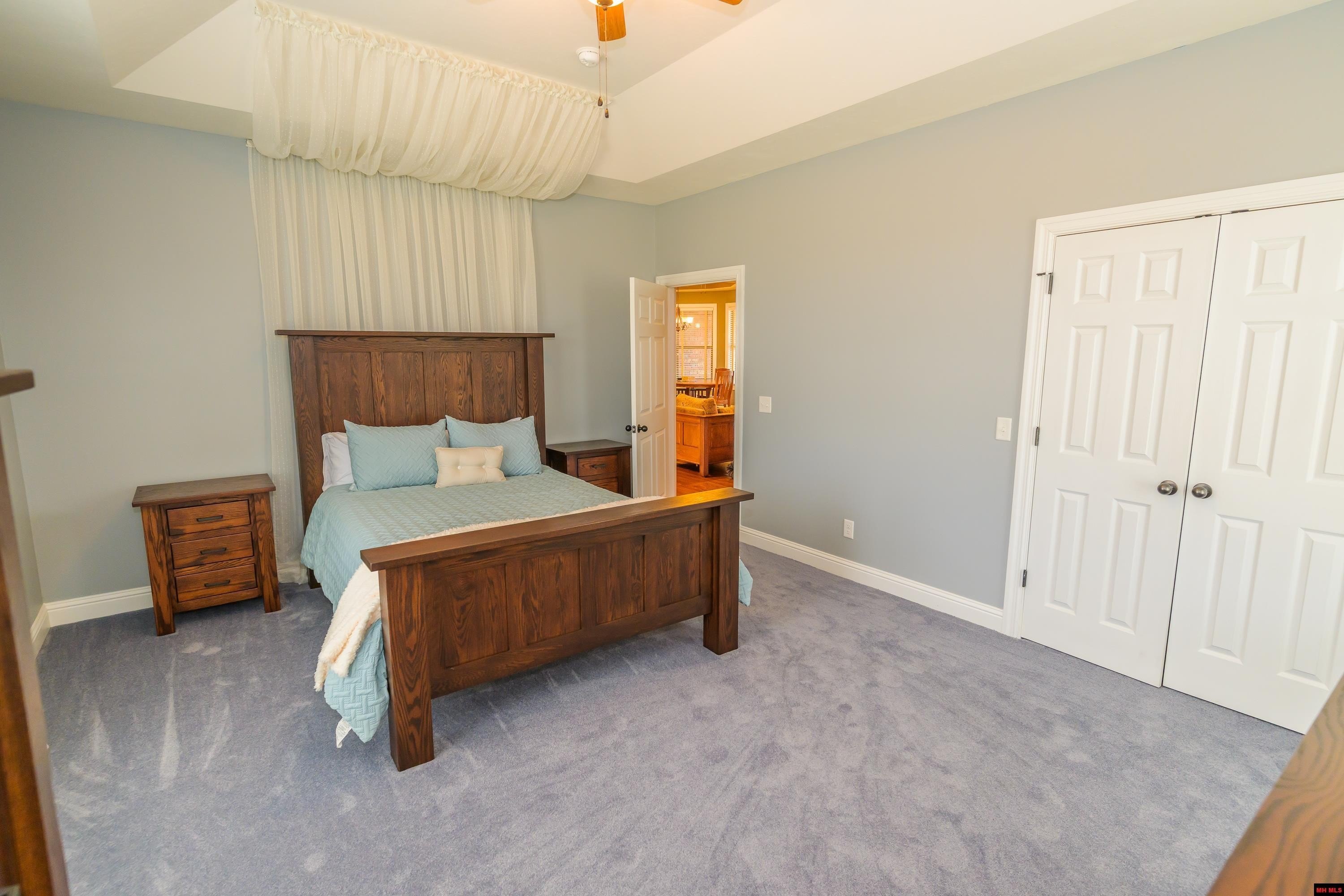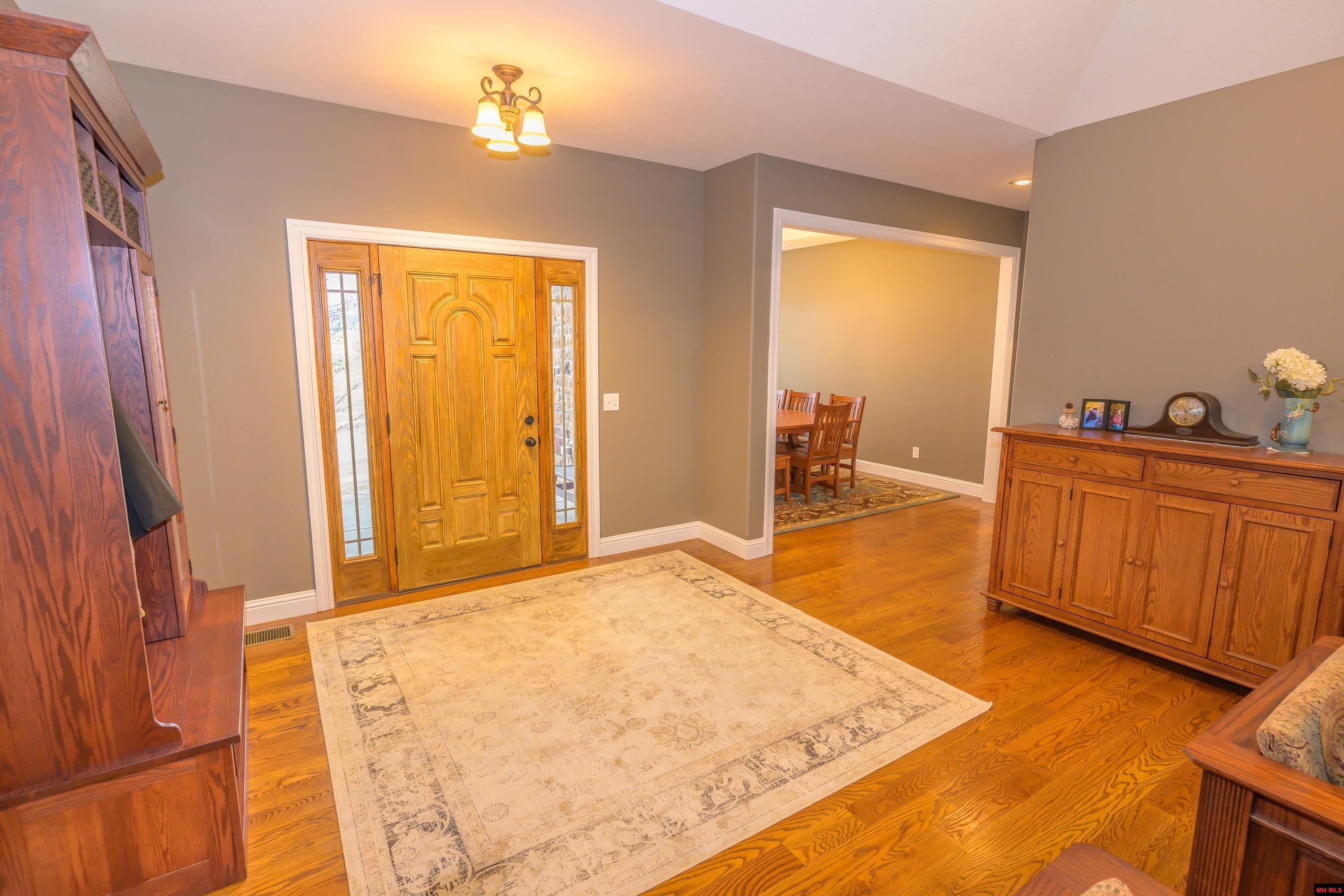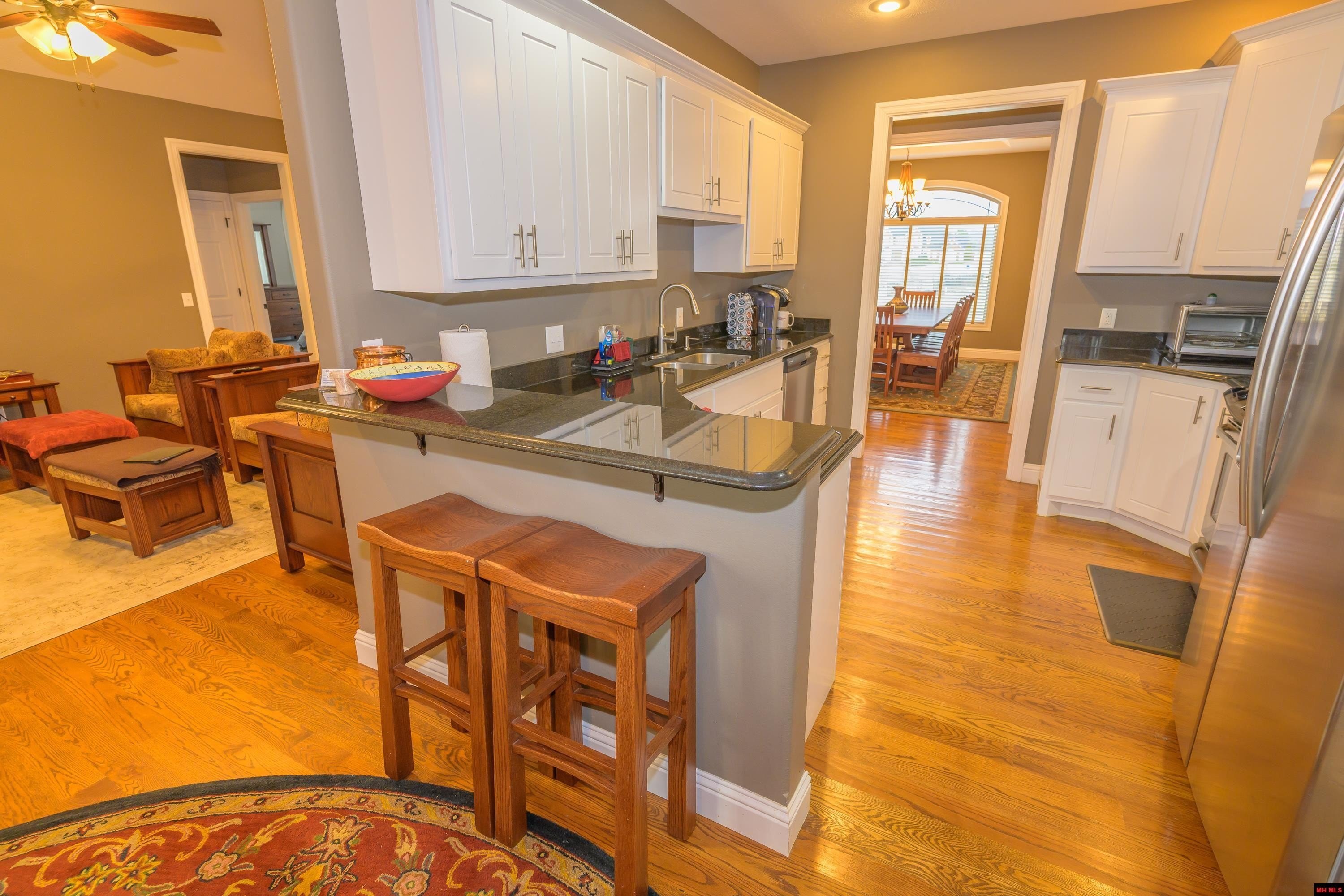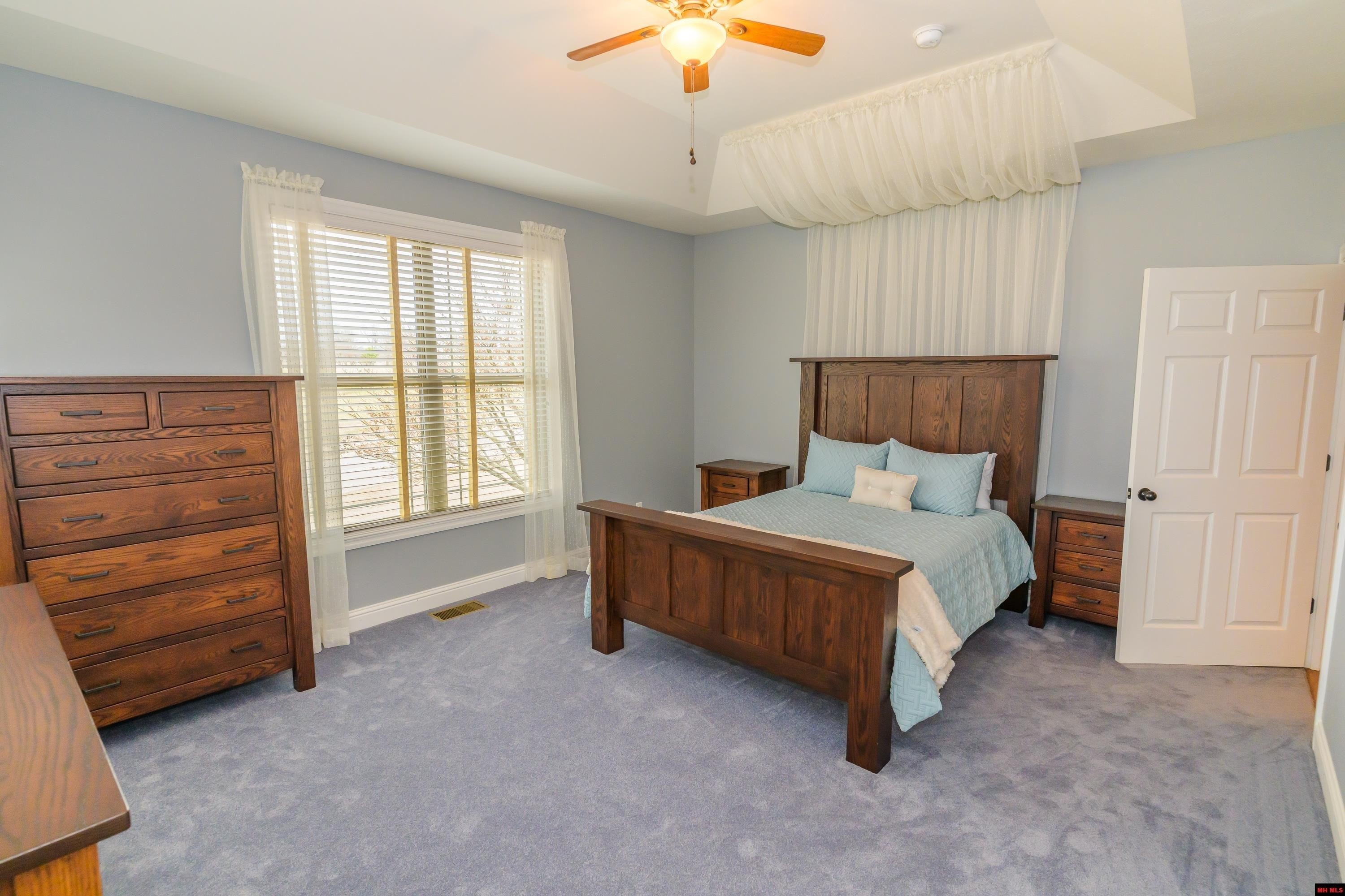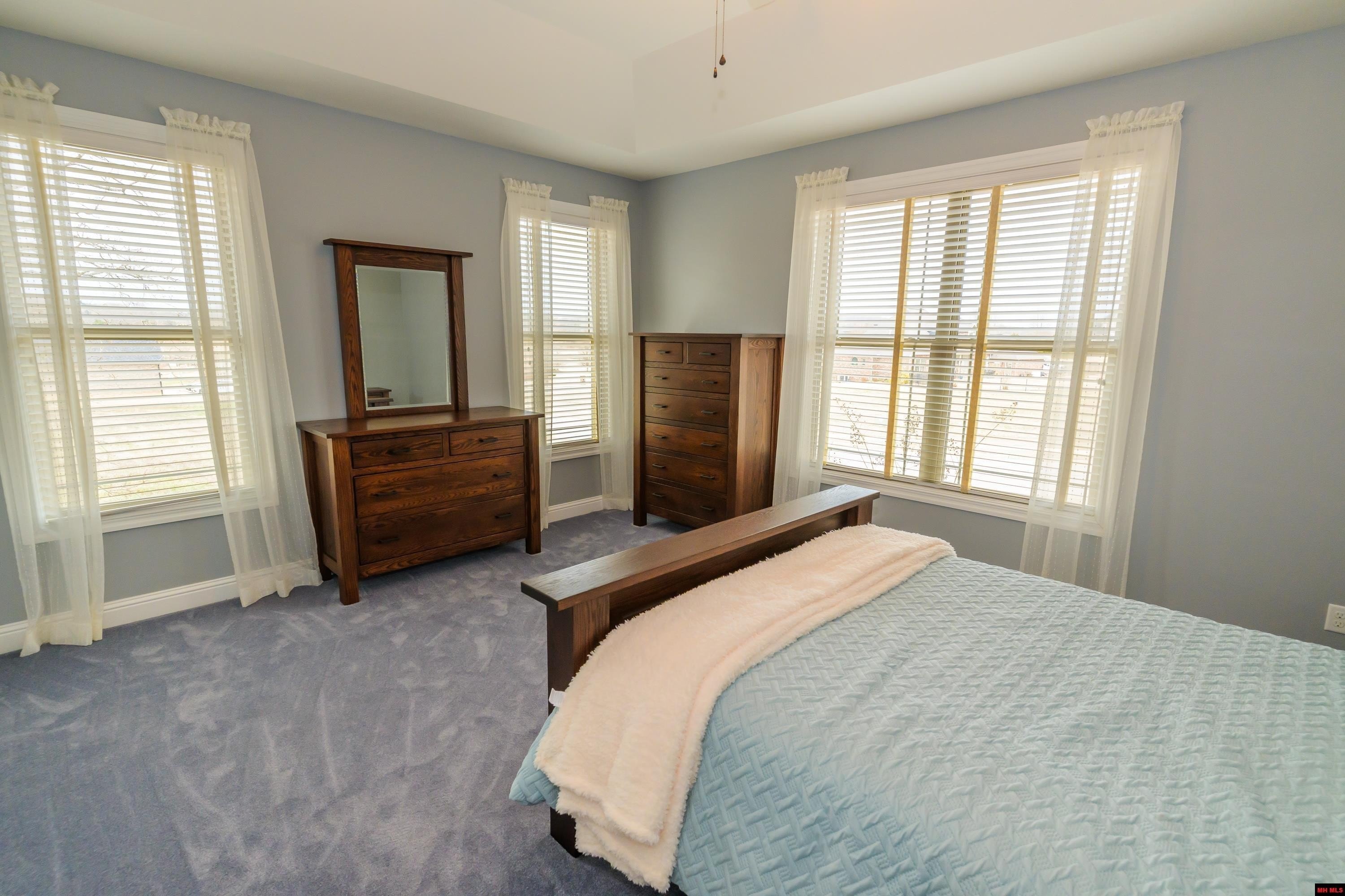 Location, location, location! This spacious 5-bedroom (possible 6th), 3.5-bath home offers the best of both worlds—less than 5 miles to shopping and restaurants, yet it feels like youre tucked away in the countryside. Step inside to an expansive living room with vaulted ceilings, a corner fireplace, and tons of natural light from all the windows. The main level flows right into the kitchen, which features stainless steel appliances, a walk-in pantry, and plenty of cabinet space. Youll also find the dining room, laundry room, half bath, 2-car garage, and the oversized primary suite all on the main floor. The primary bedroom has plenty of room to arrange your furniture however youd like, and the bath includes a soaking tub, separate shower, water closet, and comfort-height counters. Off the dining area, step onto the covered and screened-in back porch—perfect for enjoying the outdoors bug-free. Theres also a large grilling deck just off the porch. And with 1-step entry from the garage, its easy to bring in groceries or guests. Upstairs, youll find two more bedrooms, a full bath, a loft area, and a bonus room thats perfect as a home office, playroom, craft space, library—or even a 6th bedroom or bunk room. The fully finished basement offers two bedrooms that could also be turned into a media room, game room—whatever suits your needs—along with a full bath. High ceilings and a walk-out patio make the space feel open and connected to the backyard. Theres also a large unfinished storage area for all the extras. This home offers flexibility, space, and a great location—come see it for yourself!