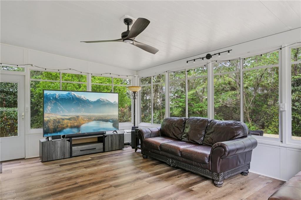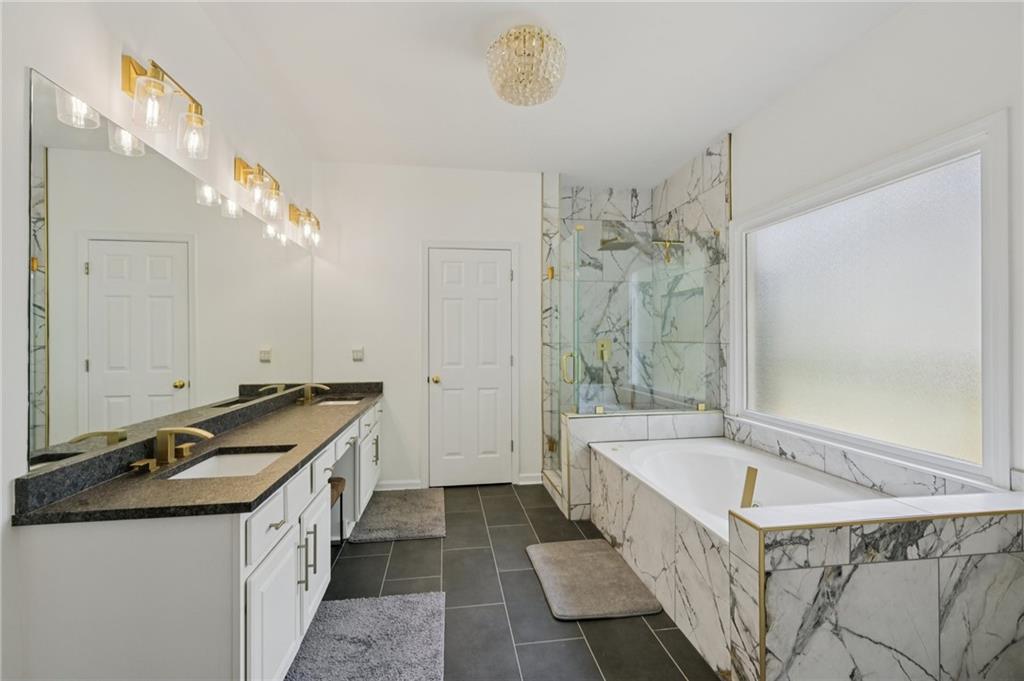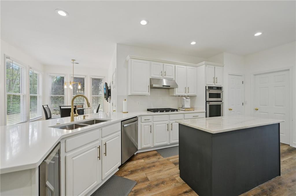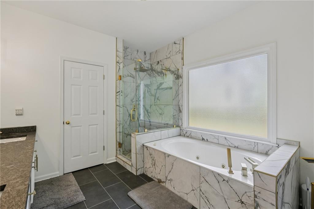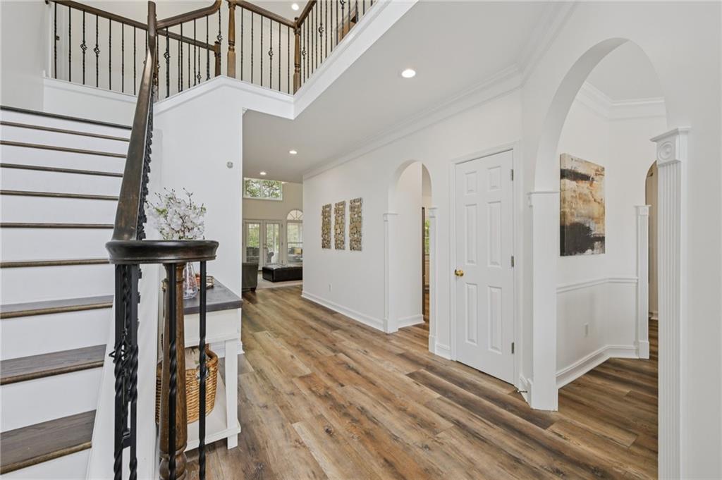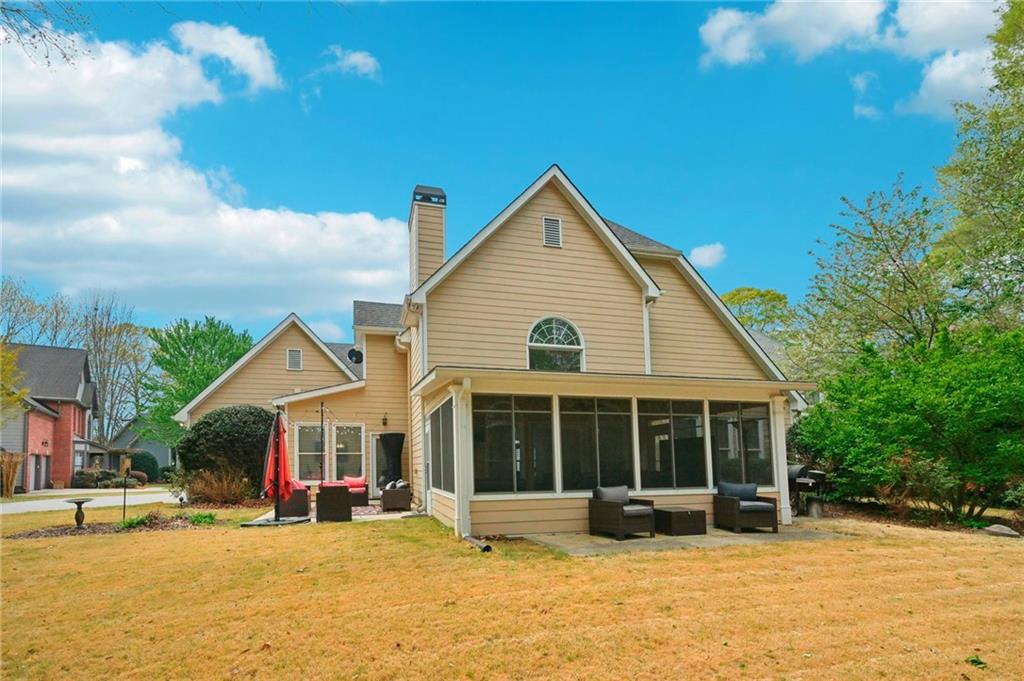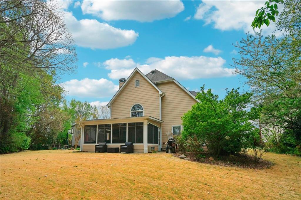 Welcome to this beautifully maintained home tucked away on a spacious cul-de-sac lot in a prime Cobb County location, within an active swim/tennis community of Echo Mill featuring two pools. Stucco and stacked stone exterior, bay windows, two-car side-entry garage with lush established landscaping and lawn, easily maintained with a built-in irrigation system, adding both convenience and year-round curb appeal. Step inside to a two-story foyer filled with natural light from a striking palladium window and highlighted by a newly updated staircase railing. The foyer is flanked by a formal living room and an elegant dining room, creating a classic and functional layout. All-new flooring flows throughout. The heart of the home is the soaring two-story family room, complete with abundant natural light, custom built-ins, and a cozy fireplace. It opens seamlessly into the beautifully updated eat-in kitchen, featuring a contrasting center island, stainless steel appliances, coordinating backsplash, and an open layout ideal for both everyday living and entertaining. Just off the kitchen, enjoy the newly added all-seasons room perfect for year-round enjoyment with easy access to the patio and private, tree-lined backyard for effortless indoor-outdoor living. Luxurious primary suite with a fully remodeled spa-like bathroom on the main level featuring a double vanity with makeup area, jetted tub, and a frame-less walk-in shower surrounded by elegant marble-style tile. The main level also offers a convenient half bath and spacious laundry room with sink and ample storage. Upstairs, three additional secondary bedrooms and two full bathrooms, offering flexible space. With warm weather ahead, enjoy community amenities including two swimming pools, tennis courts, playground, and more. Ideally located near schools, shopping, dining, healthcare, and year-round entertainment as this home offers the perfect blend of comfort, style, and convenience in one of Cobb County's most desirable areas.