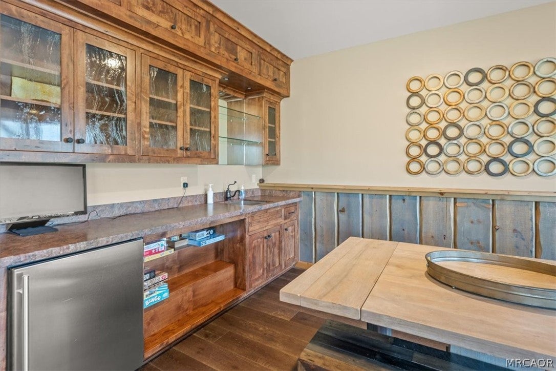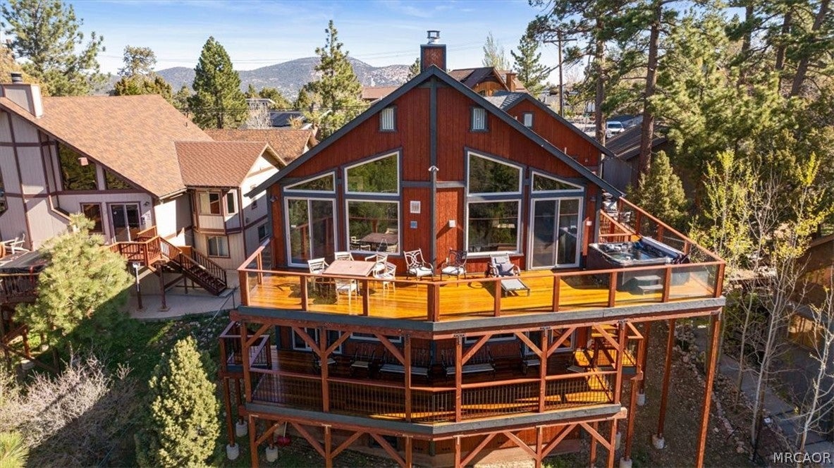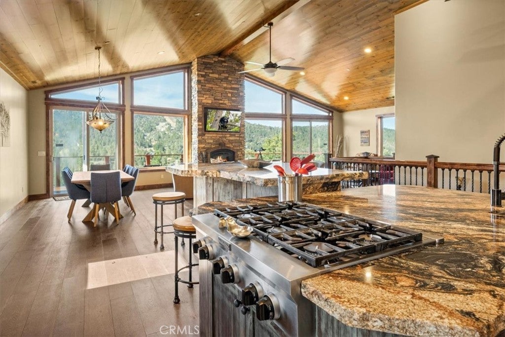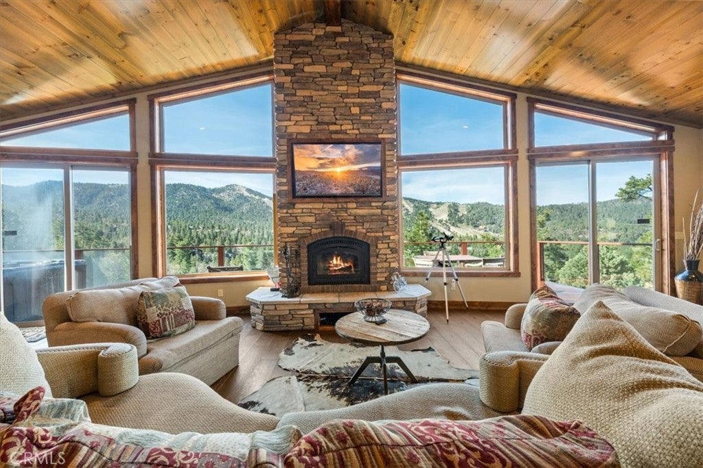 SPECTACULAR SKI SLOPE VIEWS!!!!!! Experience breathtaking, up-close ski slope views that truly make you feel like you can reach out and touch the runs. Enjoy panoramic views from multiple areas throughout the home, filling the space with natural light while preserving that warm mountain cabin feel. Convenient level parking and easy entry welcome you into a spacious open floor plan featuring soaring vaulted T&G wood ceilings, rich wood accents, and expansive windows designed to showcase the incredible scenery. The chefs kitchen is a standout, complete with high-end custom soft-close cabinetry, a massive center island, and plenty of space to cook and entertainall while taking in the stunning views. On the main level, youll find: Expansive decking perfect for soaking in the scenery, an impressive floor-to-ceiling rock fireplace, a primary bedroom suite, a powder room, a functional mudroom with abundant storage. The lower level is built for entertainment and comfort, featuring: A spacious game room with ski slope views and its own fireplace, a wet bar area with access to a view-filled lower deck, direct access to a large backyard, dedicated co-working space, an ensuite bedroom plus two additional bedrooms with a shared bath, a versatile storage room .This home truly has it allviews, space, and mountain charm. Dont miss this rare opportunity!