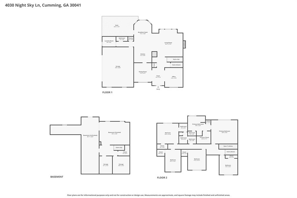 Welcome to 4030 Night Sky Lane in Cumming, GA—where modern updates meet comfortable living in a highly sought-after location.This beautifully renovated home features 4 bedrooms, 2 full bathrooms, and 1 half bath, with a thoughtful layout designed for both everyday living and entertaining. Step inside to find an abundance of natural light filling the space, highlighting the fresh, modern finishes throughout.The fully updated kitchen is a standout, showcasing white cabinetry, white granite countertops, a classic subway tile backsplash, and all-new appliances—perfect for both cooking and gathering. Just off the kitchen, the inviting living room offers a cozy fireplace, creating the perfect space to relax and unwind.Upstairs, the oversized primary suite features elegant tray ceilings and a spacious feel, along with a beautifully updated en-suite bathroom complete with a freestanding soaking tub and a separate shower—ideal for a spa-like retreat at home.Additional highlights include a partially finished basement with exterior access, offering flexibility for a home office, gym, or additional living space. Step outside to enjoy the back deck, perfect for entertaining or simply enjoying the peaceful surroundings.Situated on over half an acre, this home offers both space and privacy while still being conveniently located near everything Cumming has to offer.Don't miss your opportunity to own this move-in-ready gem—schedule your showing today!