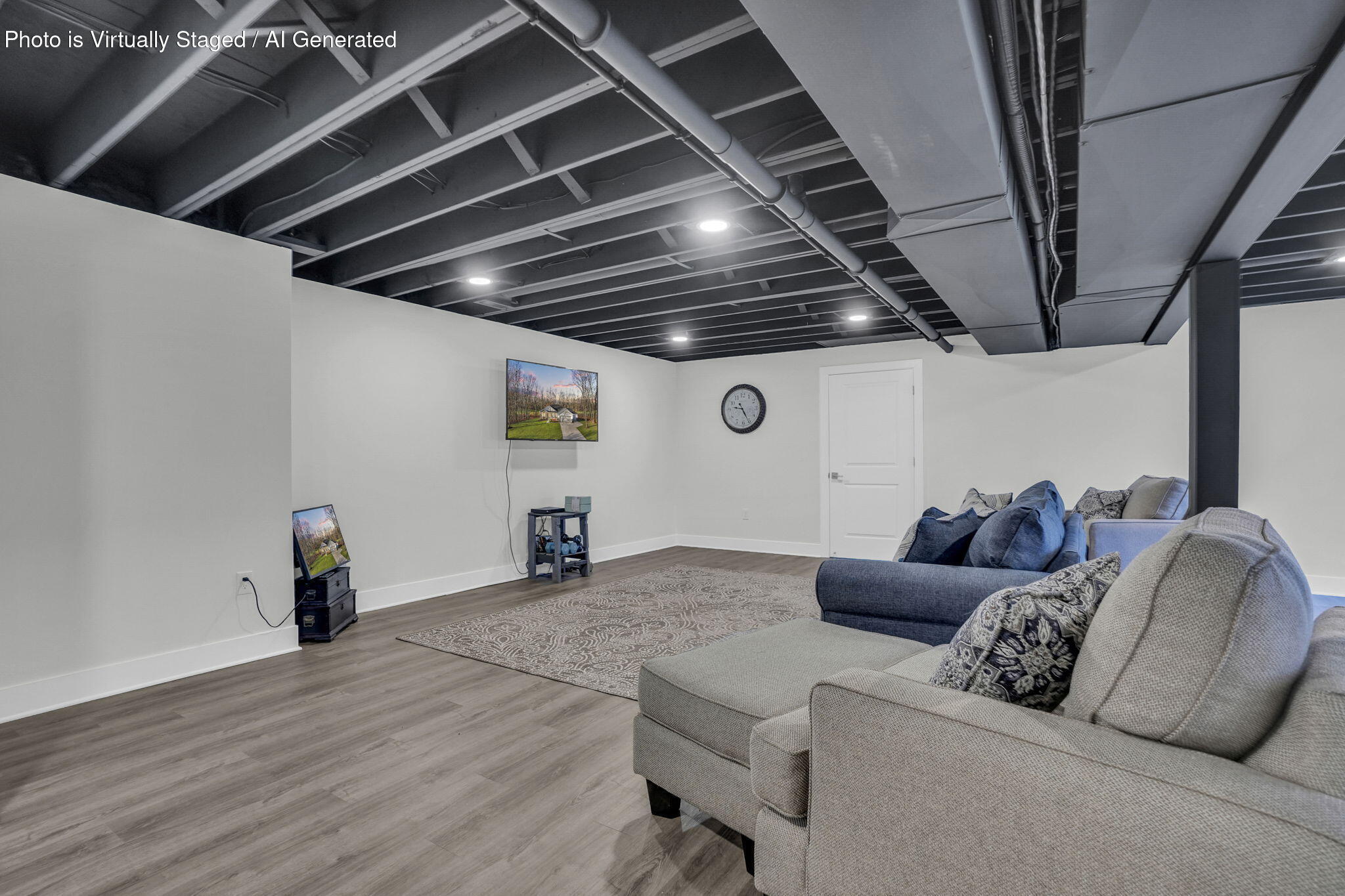 This fabulous Moorefield reverse home offers a welcoming, open layout that's perfect for modern living. It offers main level living with two bedrooms, a spacious kitchen and great room, easy laundry access, a lower level with 2 additional bedrooms and a full bathroom for additional living space, and a stunning location with a pond view and a walking trail. This home has been used as the Holly Farms Sales Center for a little over a year and it's now actively for sale!