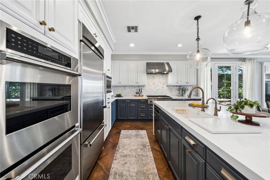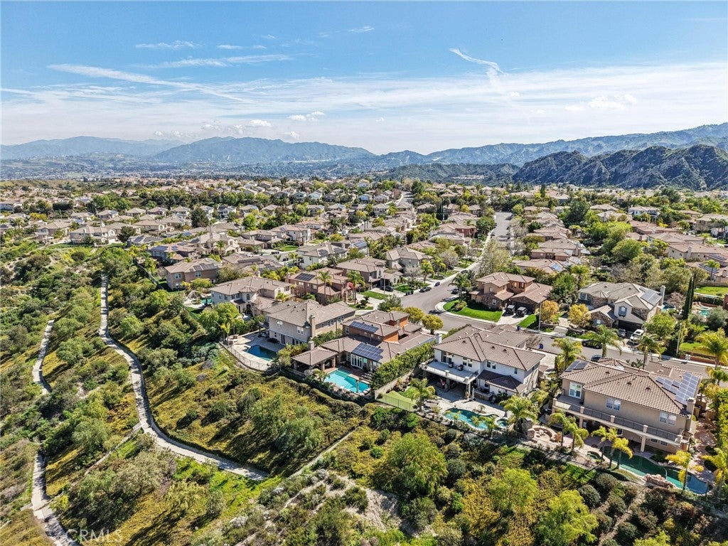 Get ready for a customized pool and view home at the top of Stevenson Ranch with a location like no other! Truly a one-of-a-kind property with upgrades and features both functional and jaw-droppingly gorgeous! Its one thing to enjoy the privacy and sunsets of a 180-degree panoramic view of Santa Clarita, its even better when it comes with a floorplan and custom improvements you rarely see. Even in neighborhoods as popular as Torcello. As you approach the gated courtyard with fountain, you can sense you are in for something special...and you are! From the custom front door your eyes are drawn out the sliders to the pool and beyond. A striking first impression! To the right are 3 downstairs bedrooms, including the primary with its own views of the yard. For those desiring single story living (and rarely finding it) you never have to go up the stairs to the 2 additional bedrooms and huge loft. To the left is a spacious family room and kitchen which has been recently remodeled with quartz counters, beautiful island with a cascading waterfall edge, awesome backsplash, built-in appliances and a custom glass walled wine cellar. Another hint of all that has been put into this amazing property. Wood and tile floors throughout and the stone hardscape - front and back - is both practical and impressive. Outside is what you came for - pebble tech pool, separate covered spa, amazing stone gazebo with TV, heaters and fireplace. As the owner said, Ill never see something like this again. Sunken BBQ cook station too, all with complete privacy. The 3-car split garage is fully finished with epoxy and cabinets and the single car garage (WITH AC!) can be a gym or office as it has been both. All 5 bedrooms are good-sized with large closets, all with organizers and the loft is huge including a closet for storage. There are no Mello Roos taxes, you are close to Richard Rioux Park and amazing schools, but you will truly feel like you are in your own world in this incredible home. WOW!