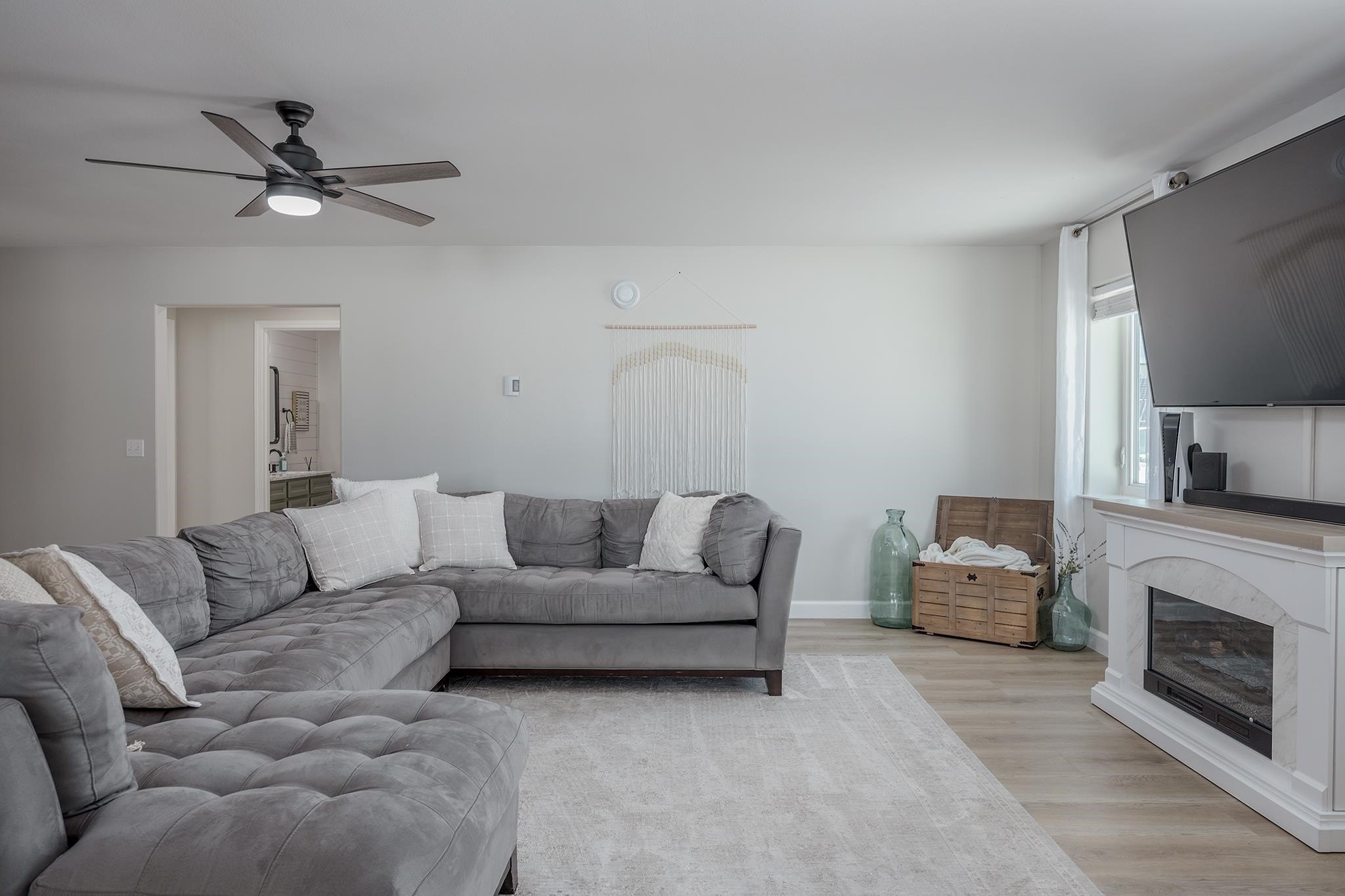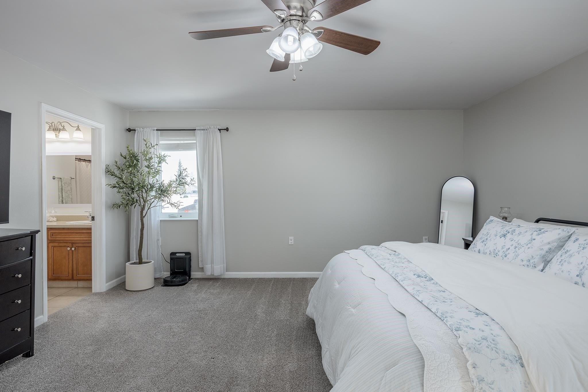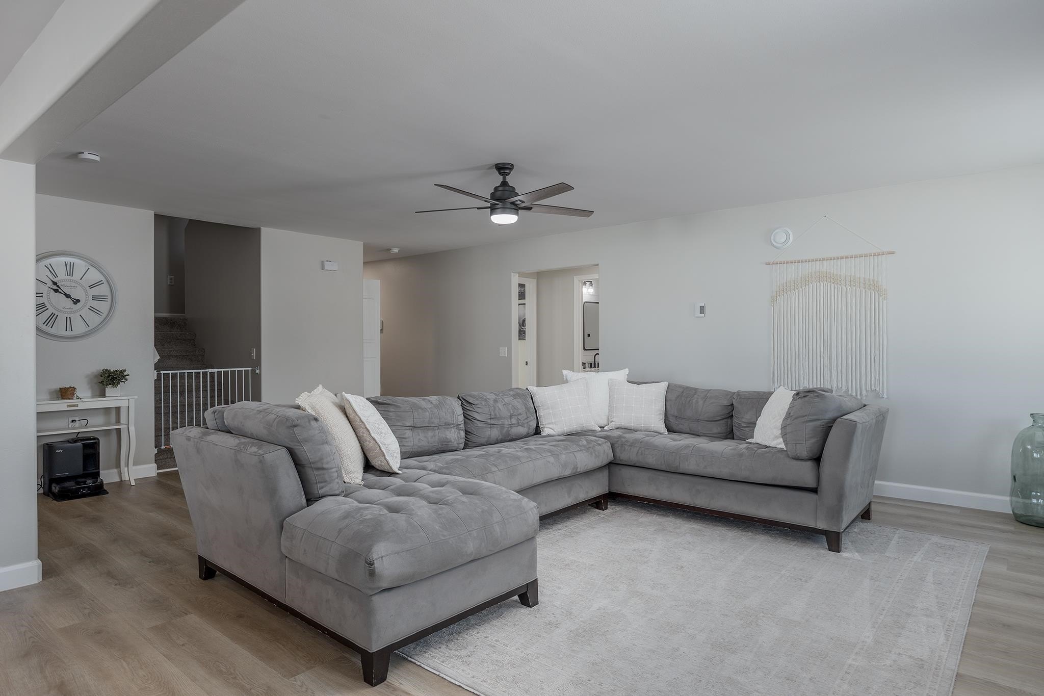 Welcome to single-story home upgraded throughout, offering 4 bedrooms and 2 bathrooms with approximately 1,820 sq ft of living space. This move-in ready residence features a fully open floor plan with spacious living areas designed for comfort and modern living. A standout feature is the expansive bonus room with two French doors, providing natural light and flexible use as a playroom, entertainment, game room, studio, or home office. The beautifully updated kitchen includes new cabinetry, granite countertops, a brand-new sink, and dishwasher. The entire home showcases new vinyl flooring, complemented by ceiling fans throughout for added comfort. Both bathrooms have been fully renovated with brand-new tubs and fixtures. Major system upgrades include a new HVAC system with updated ductwork and a brand-new water heater, offering efficiency and peace of mind. The attached two-car garage is fully drywalled, & epoxy flooring, features a new garage door opener, and includes French door access to the backyard. With no HOA and close proximity to freeway access, this home combines convenience, style, and functionality.
