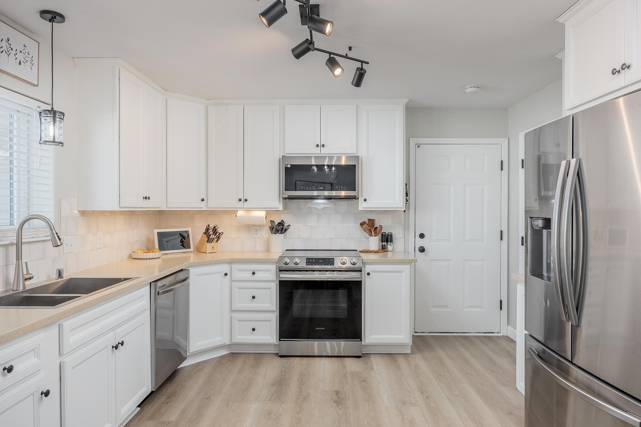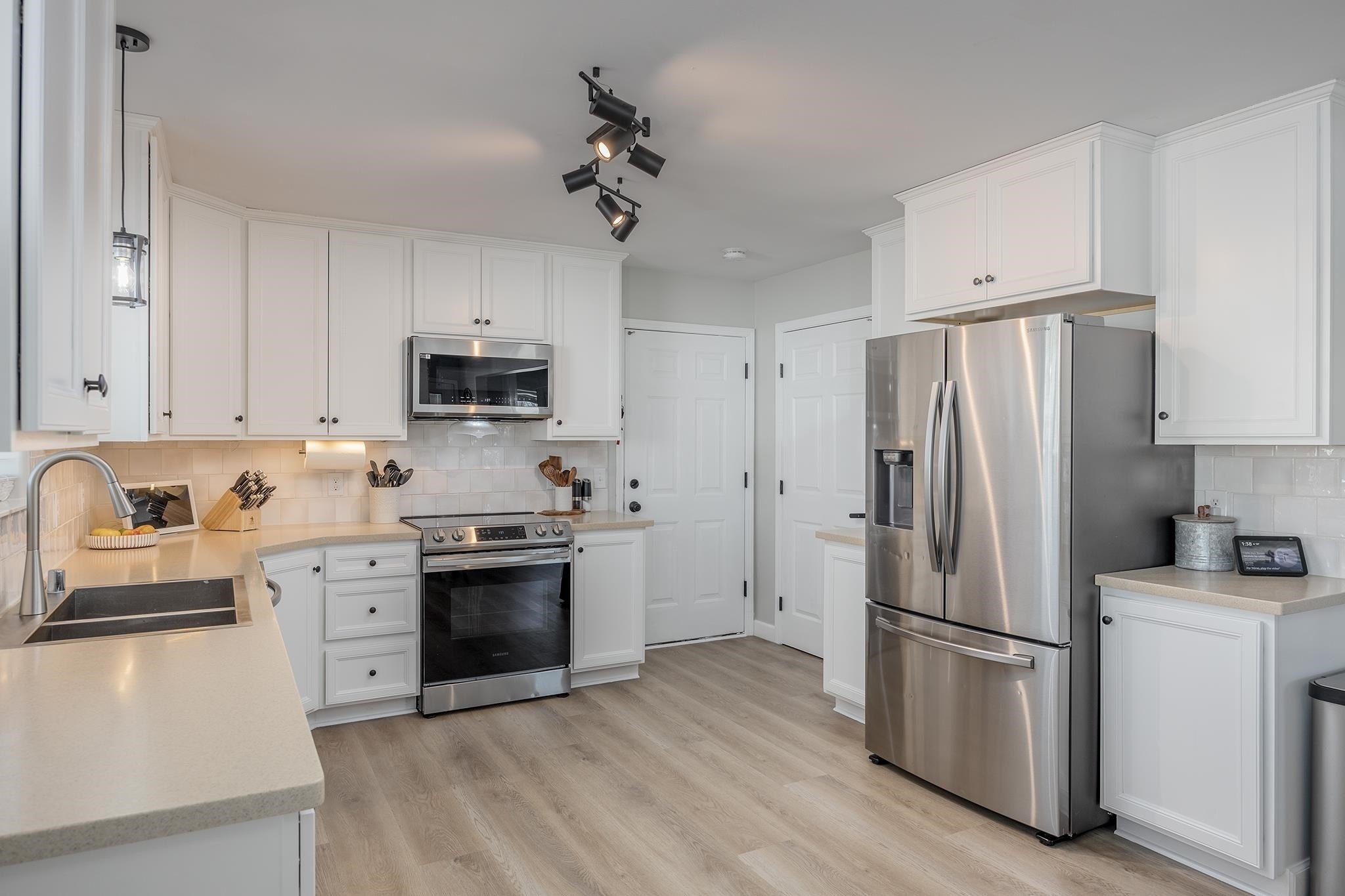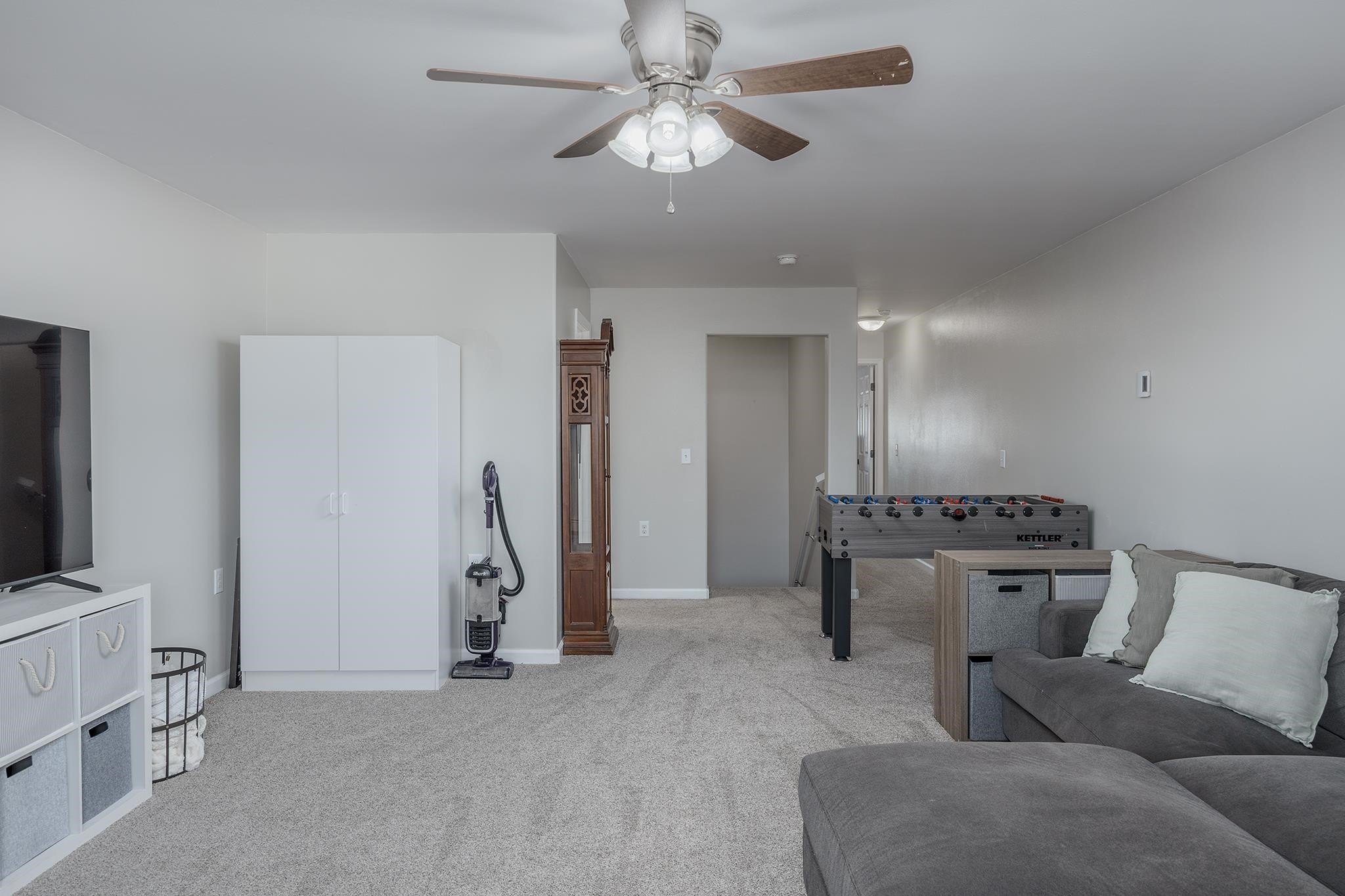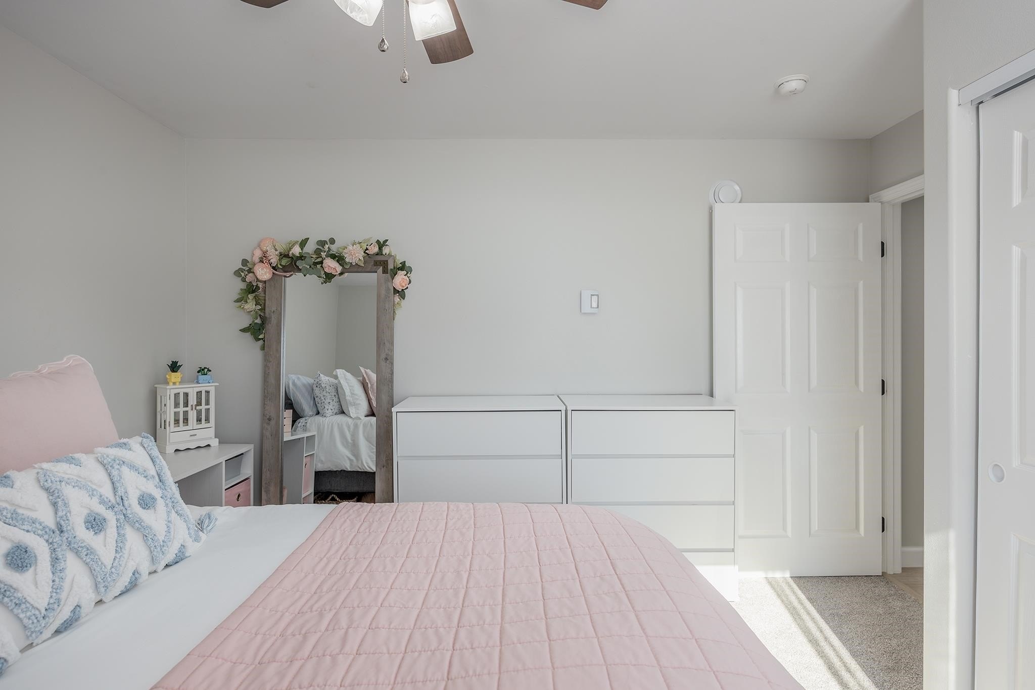 Welcome to single-story home upgraded throughout, offering 4 bedrooms and 2 bathrooms with approximately 1,820 sq ft of living space. This move-in ready residence features a fully open floor plan with spacious living areas designed for comfort and modern living. A standout feature is the expansive bonus room with two French doors, providing natural light and flexible use as a playroom, entertainment, game room, studio, or home office. The beautifully updated kitchen includes new cabinetry, granite countertops, a brand-new sink, and dishwasher. The entire home showcases new vinyl flooring, complemented by ceiling fans throughout for added comfort. Both bathrooms have been fully renovated with brand-new tubs and fixtures. Major system upgrades include a new HVAC system with updated ductwork and a brand-new water heater, offering efficiency and peace of mind. The attached two-car garage is fully drywalled, & epoxy flooring, features a new garage door opener, and includes French door access to the backyard. With no HOA and close proximity to freeway access, this home combines convenience, style, and functionality.