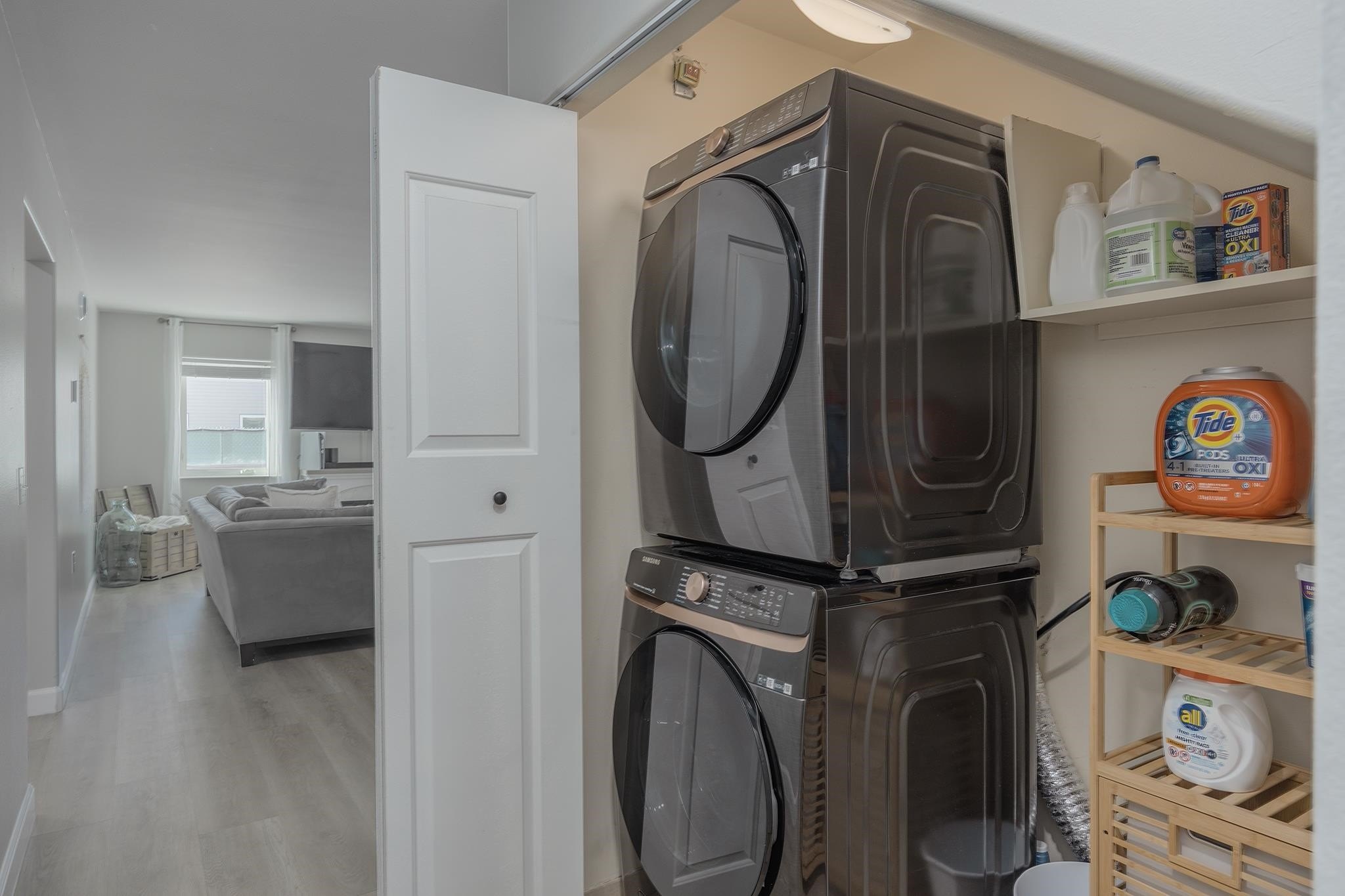 Beautifully remodeled end-unit Majorca in a prime greenbelt location offering privacy, natural light, and modern comfort.This thoughtfully upgraded 2-bedroom, 2-bath home features a rare in-unit washer and dryer and a highly desirable open layout. The home is enhanced with a recently installed energy-efficient mini-split system in every room, providing quiet, customizable heating and cooling year-round --- and exceptional feature not commonly found in similar homes.Enjoy peaceful greenbelt views from your living space and the added privacy that comes with an end-unit location. The interior offers updated finishes, a bright and airy feel, and a move-in ready experience.Ideally situated within the vibrant 55 community of Laguna Woods, residents enjoy resort-style amenities including golf, pools, fitness center, social clubs, and more.A standout value for a fully upgraded Majorca----don't miss this opportunity.SOME OF THE MANY FEATURES INCLUDE: REMODELED KITCHEN - OPEN FLOOR PLAN - KITCHEN ISLAND - QUARTZ COUNTER TOPS - WHITE CABINETS - STAINLESS HIGH END APPLIANCES - MINI SPLIT A/C and HEATING SYSTEM WITH 3 UNITS - WOOD LOOK FLOORING - NO STAIRS - NO STEPS - INSIDE LAUNDRY - SMOOTH CEILINGS - DOUBLE PANE WINDOWS - REMODELED PRIMARY BATHROOM. This home is conveniently located close to Clubhouse 1 and Gate 1. Laguna Woods is one of the most prestigious age 55 and over communities in the US. In Laguna Woods you have access to: bus system around the community & to area shopping, restaurants, medical facilities; 5 pools & 4 hot tubs; golf, tennis, library, 7 clubhouse, a multitude of clubs, 3 fitness centers, theater, horse back riding/stables, garden centers, pickle ball, basketball, card rooms, billiards, bocce ball & more!