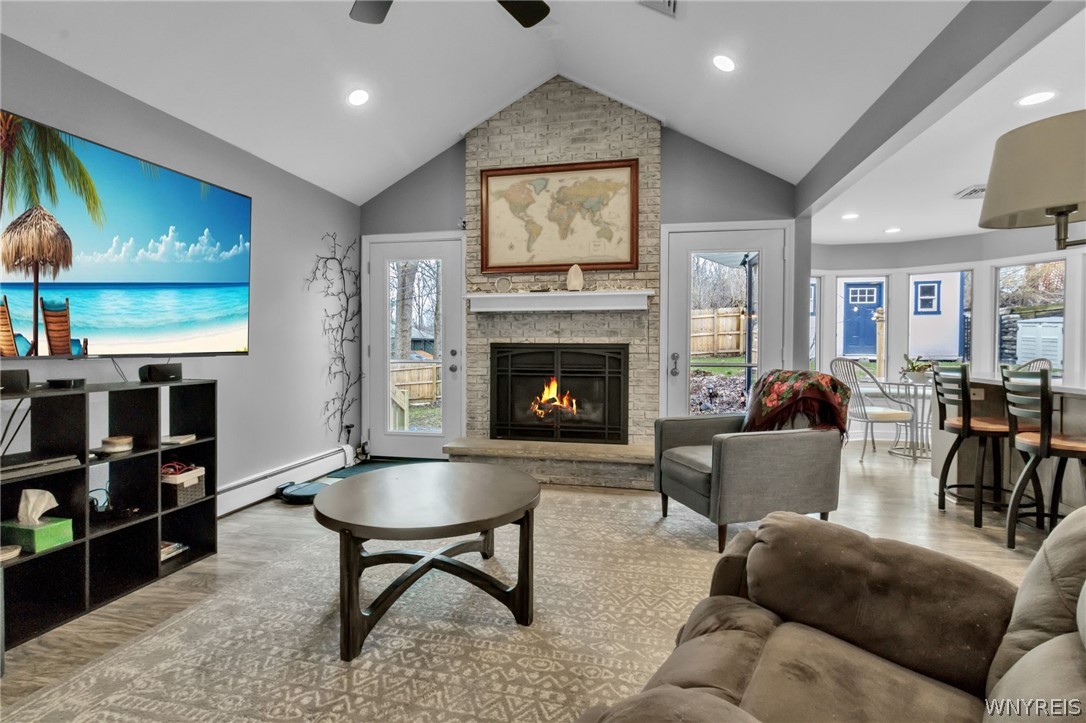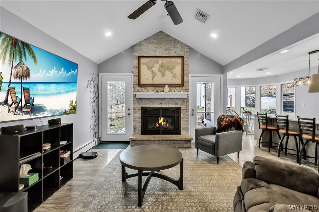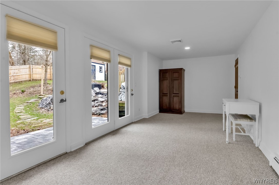 Experience elevated, low-maintenance living at Four Seasons at Farmington, a sought-after 55 community with true resort-style amenities. This extended Bonaire floor plan offers 2,274 sq ft of first-floor living, combining thoughtful design with quality finishes.The chefs kitchen features 42 cherry wood cabinetry, granite countertops, tile backsplash, stainless steel appliances, and a double oven, opening seamlessly to the main living area. The family room is centered around a marble surrounded gas fireplace flanked by custom built-in bookcases, adding both warmth and character.Upgraded 18x18 tile flooring runs throughout the kitchen, family room, sunroom extension, foyer, hallway, and laundry, creating a clean, cohesive look. Additional features include a security system and tinted windows for added comfort and privacy.The main level includes 3 bedrooms and 2 bathrooms, highlighted by a spacious primary suite with a walk-in closet, dual vanity, whirlpool tub, and walk-in shower. First-floor laundry and a 2-car garage add everyday convenience.Step outside from the family room to a large deck and patterned concrete patio overlooking one of the more private backyards in the community.The finished lower level offers flexible space for entertaining, guests, a home office, gym, or hobbies. A newer HVAC system provides added peace of mind.Enjoy maintenance-free living with access to a clubhouse, fitness center, pool, tennis, pickleball, walking paths, and a 6-hole par-3 golf course, all just minutes from Route 100, shopping, dining, and healthcare.