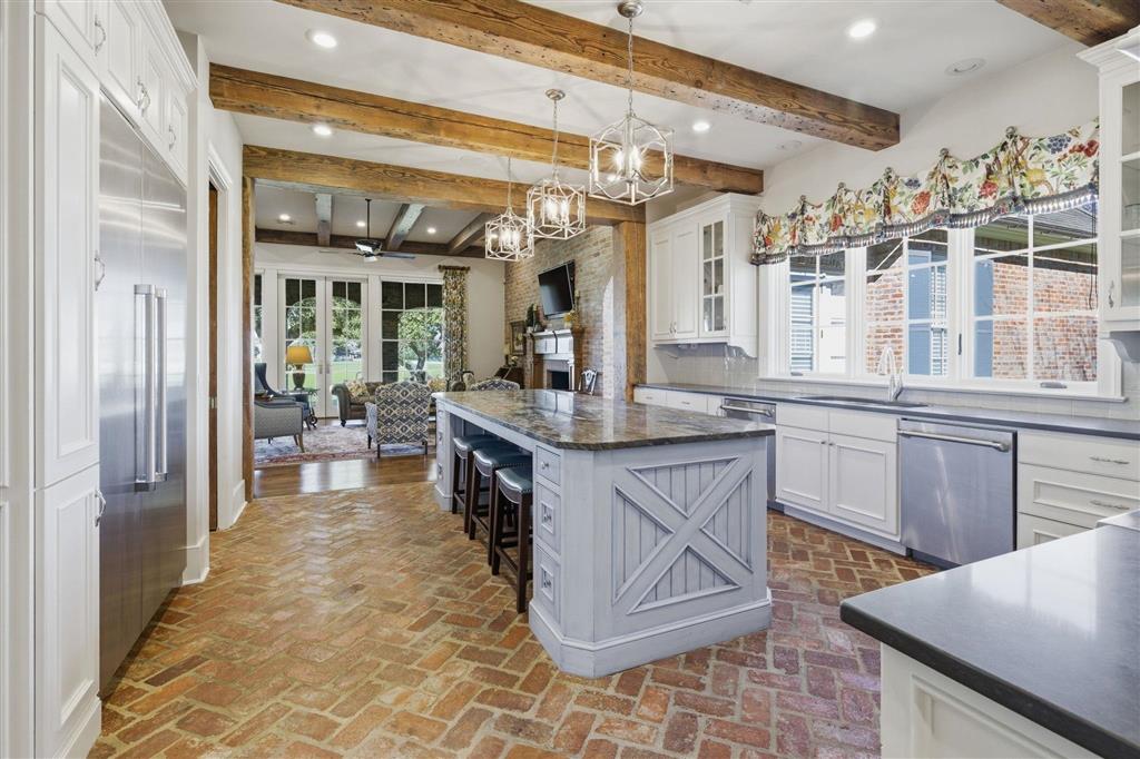 Two story traditional artfully positioned on the golf course adjacent to the Lake Charles Country Club. Home was thoughtfully designed by architect Jude Benoit and constructed by Russell Stutes in 2017. Home is beautifully proportioned and impeccably maintained with windows throughout allowing plenty of natural light and scenic views. Interior designed infusing French Country influence creating warm and sophisticated living. Boasting just over 6300 square feet of living with three living areas, formal dining room, office, four en-suites and two additional half baths. Kitchen is unparalleled featuring Thermador appliances including built-in refrigerator/freezer, six burner gas stove with eat-in breakfast bar. A fully equipped walk-in bar services the entertainment areas and includes a dual-zoned wine cooler, ice maker, and beverage fridge. Butlers pantry leads from kitchen to formal dining and has a walk-in pantry. Loggia lined with bookshelves leads to the primary with doors leading out to the side yard ideal for a future pool. Primary has separate walk-in closets, and a spacious and well appointed bath including walk-in shower, jetted tub, and dual vanities. All doors, cabinetry, moldings, and mantels are custom made from birch and cypress. Flooring is reclaimed hand milled white oak with brick herringbone pattern in kitchen, utility, bar and back half bath. Reclaimed farmhouse beams in the keeping room and kitchen. Views from the 19x60 downstairs outdoor entertaining area and the upstairs balcony off the game room are incredible. Both capitalize on the manicured fairways, water-view of the first hole, pond, and Country Club Marina while shaded by the bank of oak trees that line the back of the property along the course. The outdoor living space features terrazzo tile, large gas/wood fireplace, outdoor kitchen and ample living/entertaining space all encased by nine brick arches. Other features include custom draperies throughout, pre-built and wired elevator capability, water softener system, and a 48KW Generac generator. Three car oversized garage with brick inlay motor court create ample parking. This home has vast amounts of of storage and includes a large fully-floored walk-in attic should the design of additional living space be desired. Beautifully landscaped.