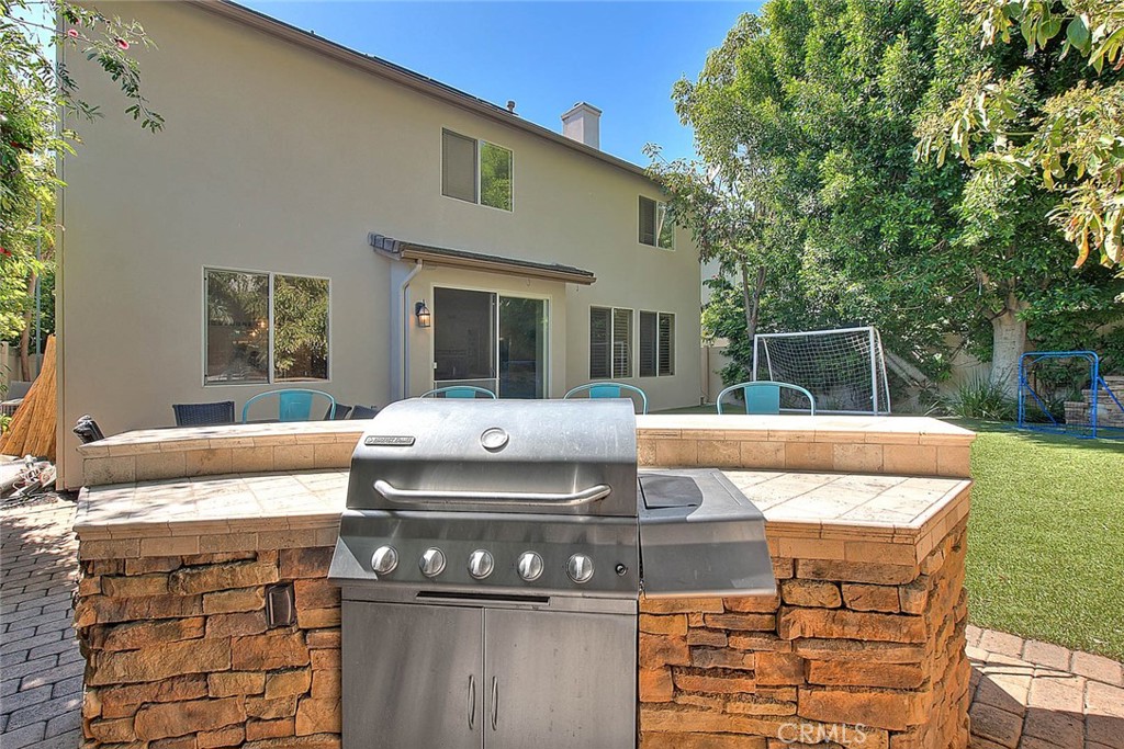 BIG PRICE REDUCTION!! Located in the highly sought-after gated community of Sheridan Square, this rare offering enjoys a premier location directly across from the pool and park, blending convenience with an exceptional lifestyle. Step inside to an elegant formal living and dining area that seamlessly flows into a chefs dream kitchen. Designed without compromise, the kitchen features custom white cabinetry, an expansive marble island and countertops, a built-in refrigerator, a 6-burner Thermador range, and a fully customized pantry—perfect for both everyday living and entertaining at scale. The adjoining family room is warm and inviting, complete with a built-in entertainment center, while a dedicated home office, crown molding, hardwood flooring, shutters, and custom window treatments add both sophistication and comfort throughout. Upstairs, the luxurious primary suite offers a private retreat with a spa-inspired bathroom, featuring a large soaking tub, dual vanities, and an expansive walk-in closet with custom built-ins. A unique sliding barn door creates a stylish separation between the bedroom and bath for added privacy. Three additional spacious bedrooms, a dual-sink bathroom, and a well-appointed laundry room with sink and cabinetry complete the second floor. The third-floor bonus room is a standout feature—an incredibly versatile space with built-in desks and an entertainment center, ideal for a media room, home office, or creative studio. Step outside to your entertainers large backyard, thoughtfully designed with custom hardscaping, new turf, fruit trees and a built-in BBQ—perfect for hosting and relaxing alike. All of this, just steps from a Junior Olympic pool, picnic areas, and park, and minutes from premier shopping, dining at the Marketplace, and award-winning schools.