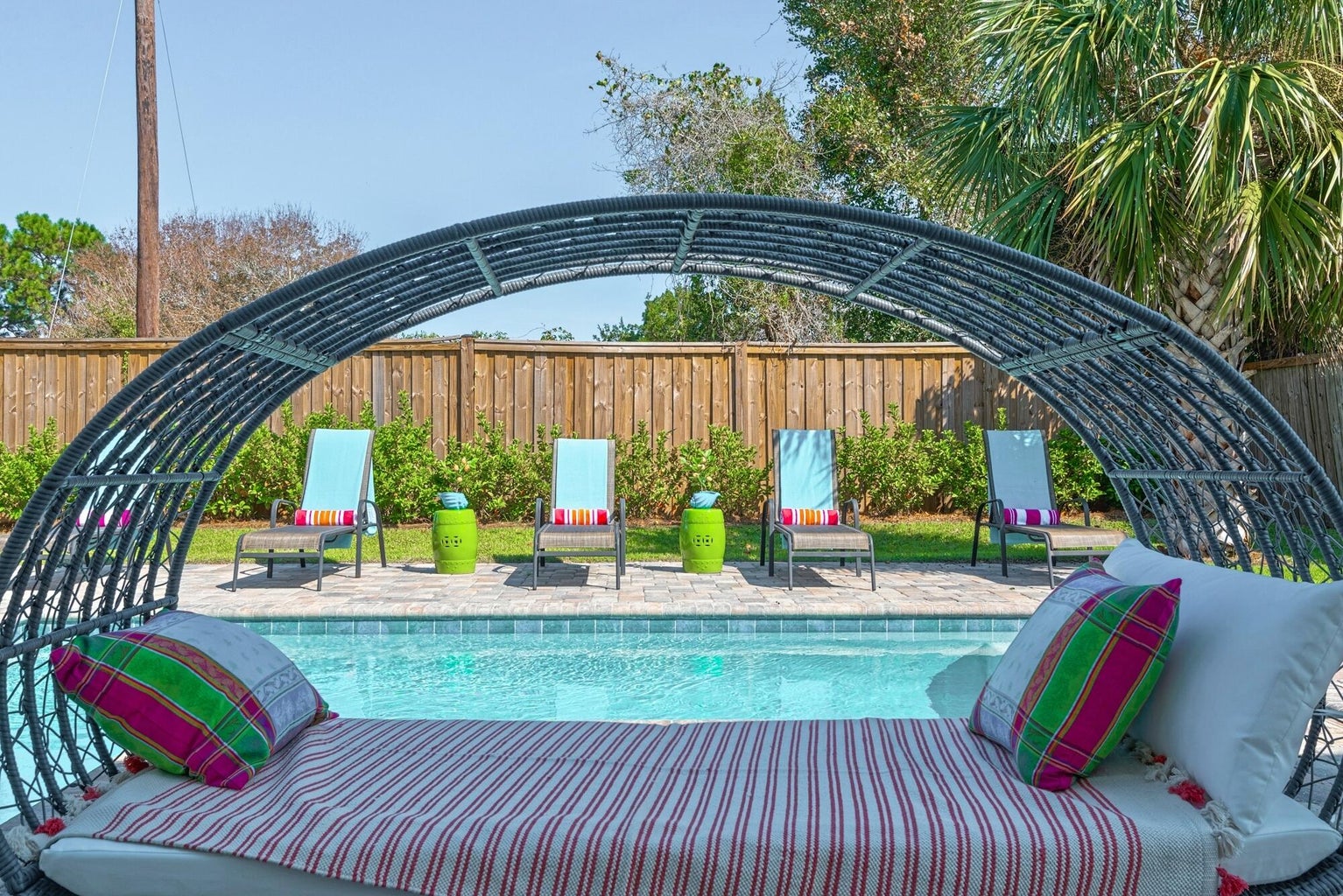 Short term rental powerhouse featuring a new designer-furnished home with private heated pool, fenced backyard, and massive 26 person sleeping capacity to maximize revenue. Designer furnishings, professional photography and full inventory to convey for immediate revenue generation. Just 2 blocks to multiple sugar-sand beach accesses ensures high occupancy.