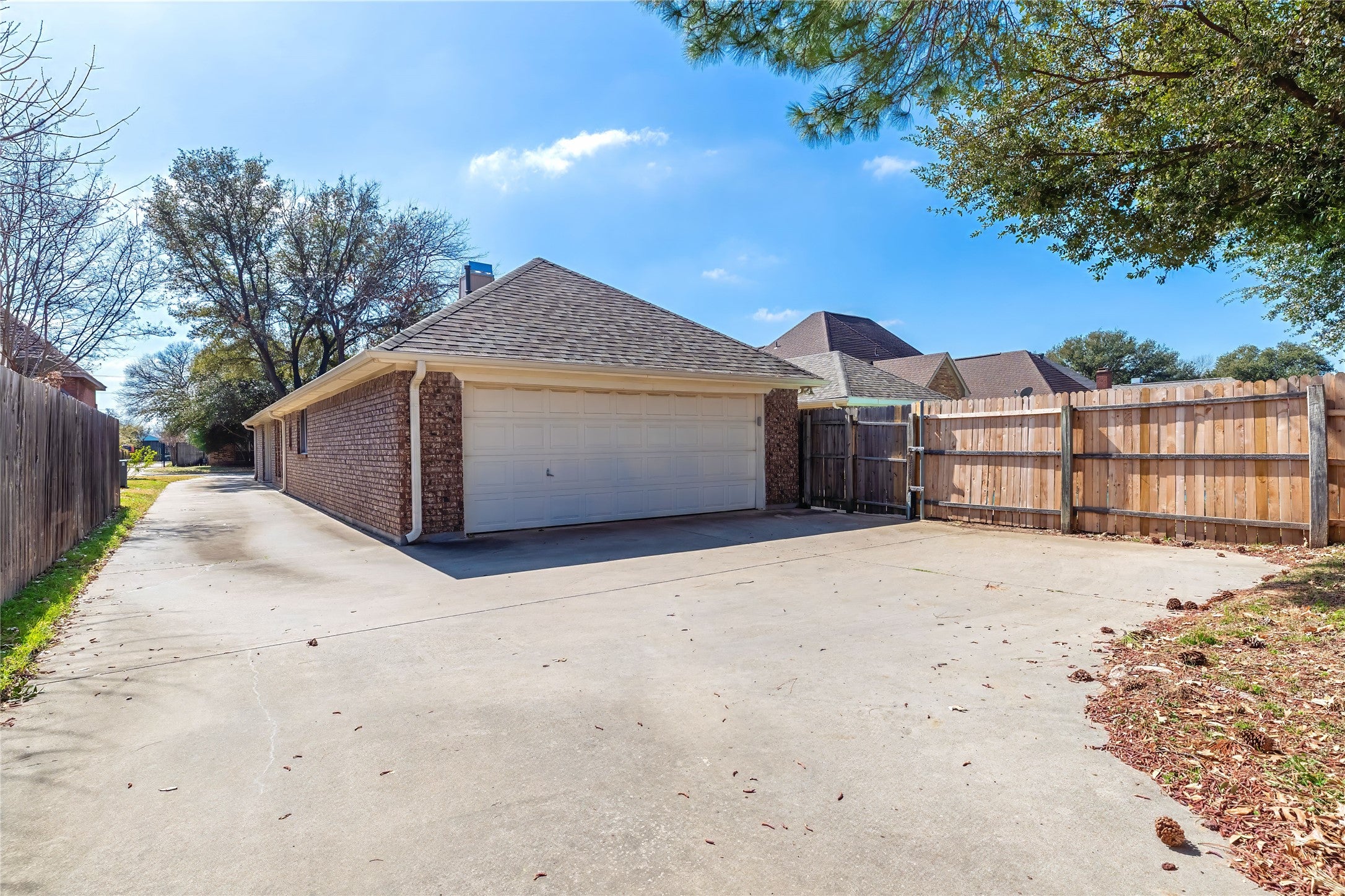 This Bedford beauty checks all the boxes! Mature trees and a shady front porch provide lots of curb appeal and welcome you to step into a bright airy space with wonderful natural light . Beautifully updated with so much room - a large kitchen, 4 bedrooms, 3 full baths, 2 living rooms, 2 dining rooms- this home is very likely to end your search! First, the remodeled kitchen features extensive beveled-edge granite countertops, new specialty cabinets for easy organization, soft-close cabinets and drawers, as well as a brand new microwave and dishwasher. When it comes to entertaining, multiple living and dining spaces guarantee plenty of room for get-togethers! Youll have a large breakfast area with convenient access to a covered side porch for easy grocery unloading. The kitchen also opens to a large second living area which features a see-through fireplace that is shared by the family room. Moving to the bedrooms, two of them share a Jack-and-Jill bath with dual vanities and each boasts a walk-in closet. When family comes to visit, not to worry! There is a separate guest suite complete with a full bath and pool access. Finally, the spacious primary suite includes patio access, a large bright bathroom with skylight, dual vanities, separate shower, soaking tub, and a spacious walk-in closet. Last but not least, the backyard offers a welcome retreat from the Texas heat - relaxing and grilling on the covered patio and cooling off in the in-ground pool will be the highlight of the day! Texas size garage will hold 2 vehicles easily. Furniture, fridge, washer and dryer negotiable. UPDATES: New Roof 2022, Brand New Engineered Hardwood floors throughout main living area, Updated Plumbing and Electrical Panel, New Gas Water Heater, Newer Sprinkler System, Modern Lighting and Fixtures, Updated Home Security System, Pool pump replaced within the last 2 years.