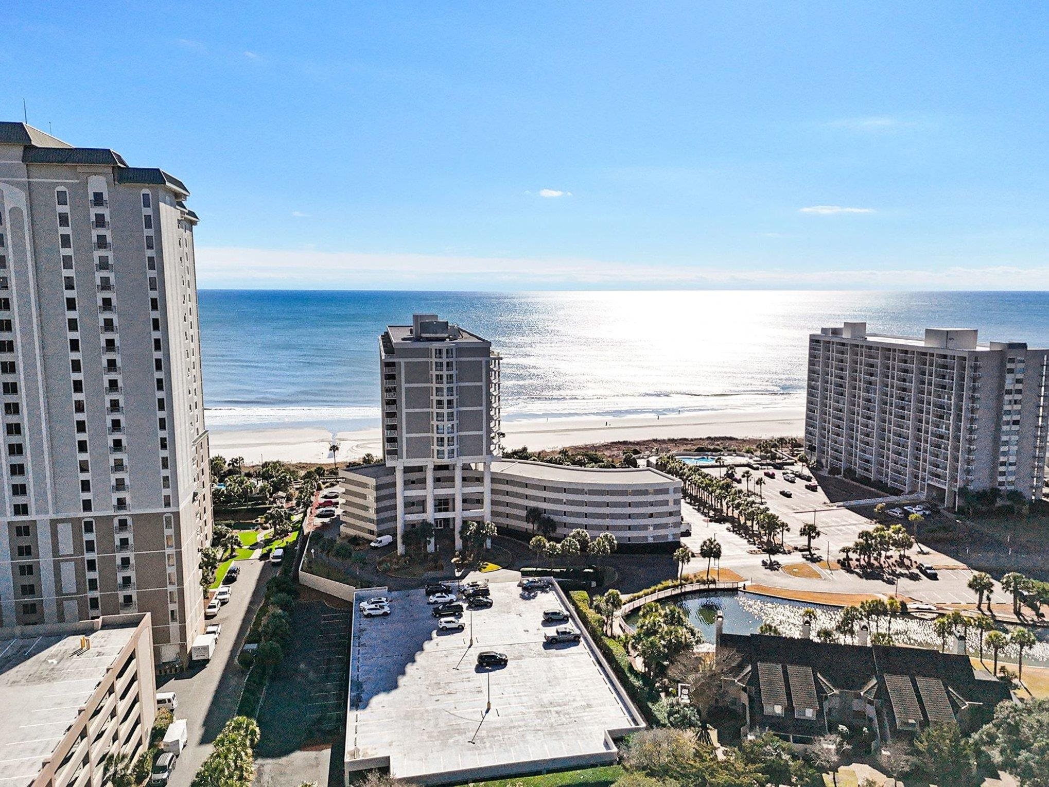 Don't miss this stunning 2 bed 2 bath ocean view condo located in the sought after North Hampton Tower at Kingston Plantation! Beautifully furnished and decorated, this turnkey unit has been updated with new TV's , a beadboard accent wall has been added to the living room, most of the furniture has been replaced, the condo is stocked with sixteen sets of towels and duplicates of all the bedding , there is a stack washer and dryer in the unit and laminate and tile floors throughout (no carpet). Wonderful open floor plan includes a spacious living room with direct access to the balcony, dining area with seating for four, and a spectacular fully equipped kitchen with updated cabinets, granite counters, stainless appliances, a variety of dishware, abundant storage workspace, a double sink and a breakfast bar. The private master suite is a true oasis with sliders leading to the balcony, his and her closets and a bath with a double sink extended vanity and a tub/shower. A second nice sized bedroom, located on the other side of the unit, has plenty of closet space as well and the second full bath just off the hallway has a vanity and tub/shower. The expansive balcony has room for everyone to gather and provides a tranquil spot to relax and savor the ocean breezes while sipping cocktails at the end of the day. In addition, there is also a private storage cage under the building for beach and golf equipment. North Hampton is one of the most desirable oceanfront buildings in Kingston Plantation and offers owners a private indoor pool, owner's lounge and a 24-hour secure lobby access. Amenities at Kingston Plantation are some of the finest in the area and include multiple pools, a fitness center , tennis and pickleball courts, 24 hour gated security, walking and bike trails, freshwater lakes, volleyball courts, an indoor pool, a clubhouse, a variety of restaurants, including oceanfront dining options, and the community is close to shopping centers, golf courses, attractions and entertainment. Kingston also features footbridges that lead to private beach access. Whether you are seeking a permanent home, dream beach retreat or an investment property, this condo is the epitome of resort style living! Schedule your private showing today
