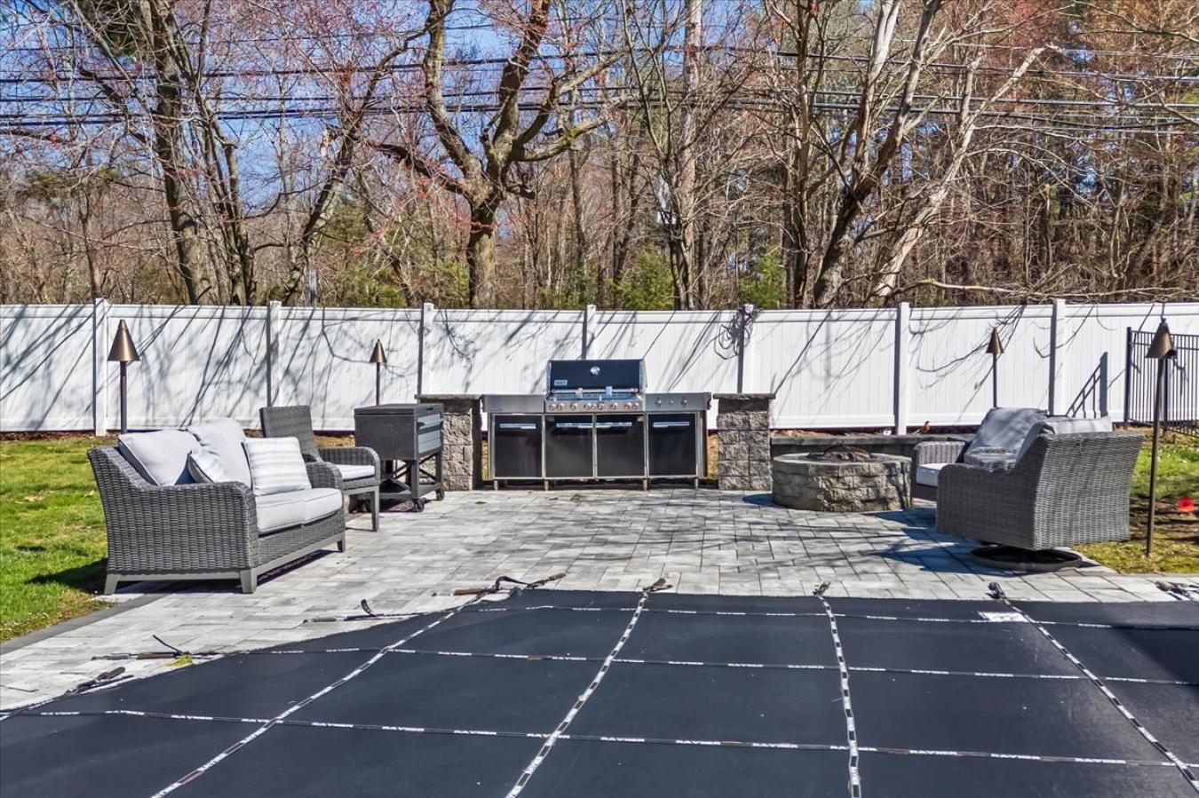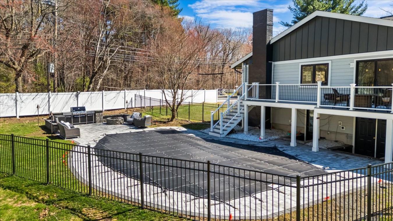 Experience unparalleled scale in this reimagined nearly 5,000 sq. ft. ft. Split-Colonial conversion. Fully renovated within the last 5 years, this estate sits on a rare 1-acre corner lot near Wollaston Country Club. The exterior shines with premium Hardie Board siding, a new roof, and high-efficiency windows. Inside, a chefs kitchen features a 12-foot waterfall quartz island and professional Thermador appliances. The layout seamlessly integrates a split-entry with a massive two-story Colonial addition, offering a sun-drenched great room and expansive family room. An entertainers dream, the home boasts Sonos in-ceiling speakers throughout, a lower-level wet bar, and a versatile gym space. The backyard is a private resort featuring an in-ground pool, custom paver patio, fire pit, and an architectural 30 ft. Trex deck with a built-in Weber grill. Minutes from Blue Hills and top schools, This home combines massive living space with a pristine outdoor sanctuary. A true turn-key masterpiece.