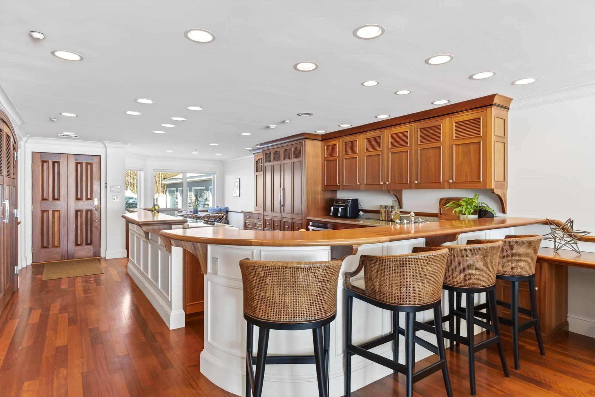 Experience refined oceanfront living at The Atlantic House, a private gated community with resort-style amenities including an oceanside pool and spa, tennis courts, and a secluded boardwalk to Scarborough Beach. 6 Atlantic Drive is a finely appointed residence offering breathtaking ocean views and sophisticated coastal style. Custom millwork, a marble-clad primary bath, and a chefs kitchen with rich mahogany cabinetry exemplify timeless craftsmanship. Enjoy ocean breezes from the covered porch or unwind in the lower-level guest retreat with jetted bath. Every detail reflects understated luxury and the serene rhythm of seaside living.