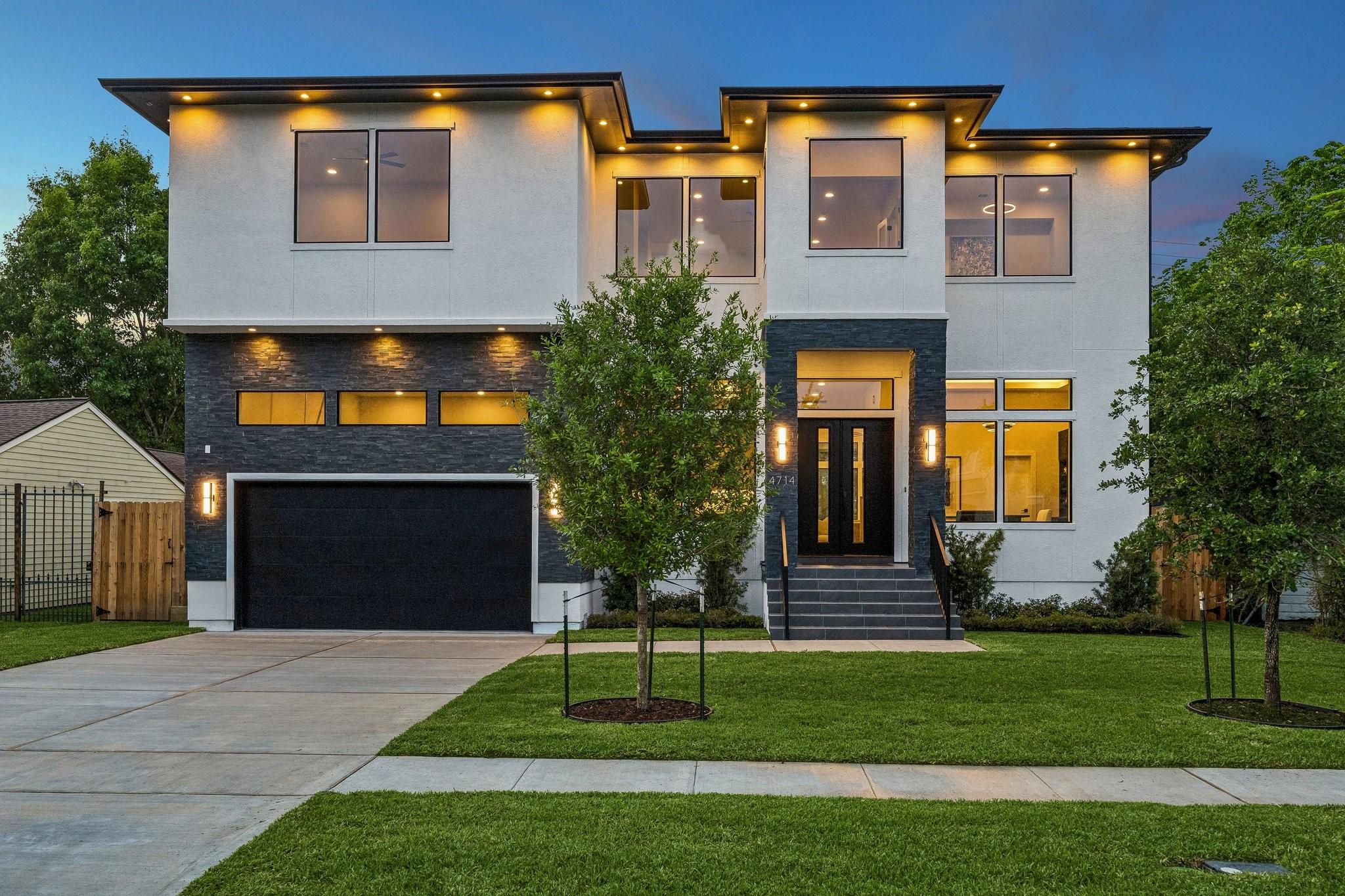 SLEEK, NEW CONSTRUCTION, CONTEMPORARY home in Bellaire! The home is a true work of art, fine tuned by quality materials & attention to detail. Gorgeous interior design features floating ceilings w/recessed lighting. 5 bedrooms, 6 full (w/dedicated pool bath) & 2 half baths w/full bedroom suite on first floor, & study w/built ins. Open concept first floor living w/ 12 ceilings, large windows for natural light & stone fireplace. Designer kitchen displaying an abundance of cabinets, quartz counters/backsplash & Thermador appliance package w/ 48 range, double ovens & 42 built in fridge. Pantry features second fridge. Formal dining w/ wet bar. Upstairs w/10 ceilings features a luxurious primary suite, spacious secondary rms, gameroom w/wet bar & gym/flex/media rm. 2 EV plugs. Elevator shaft! Prewired AV w/7.1 channel for Living, Game, Media & primary. Great location! Huge backyard, oversized covered patio w/outdoor kitchen. Large backyard for a pool. Call the Aida Younis Team!