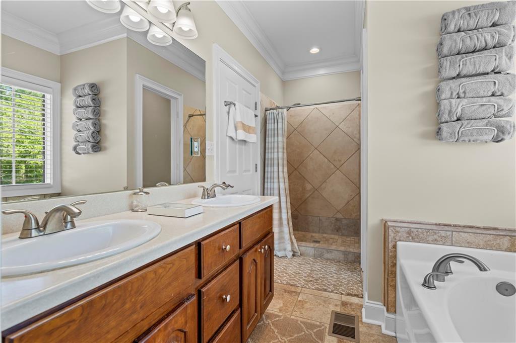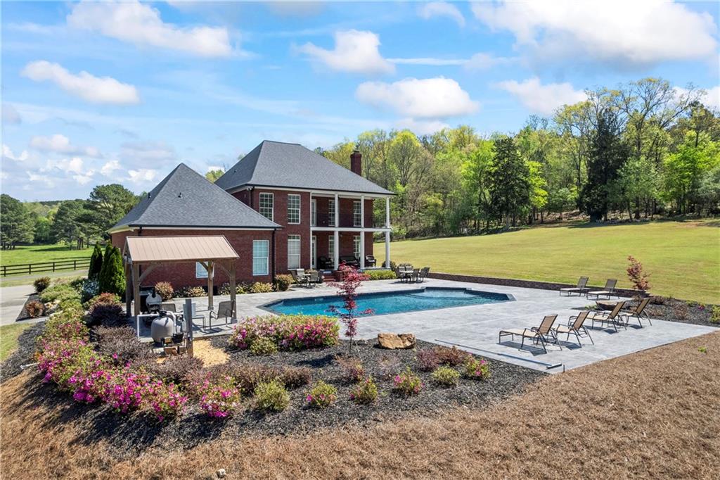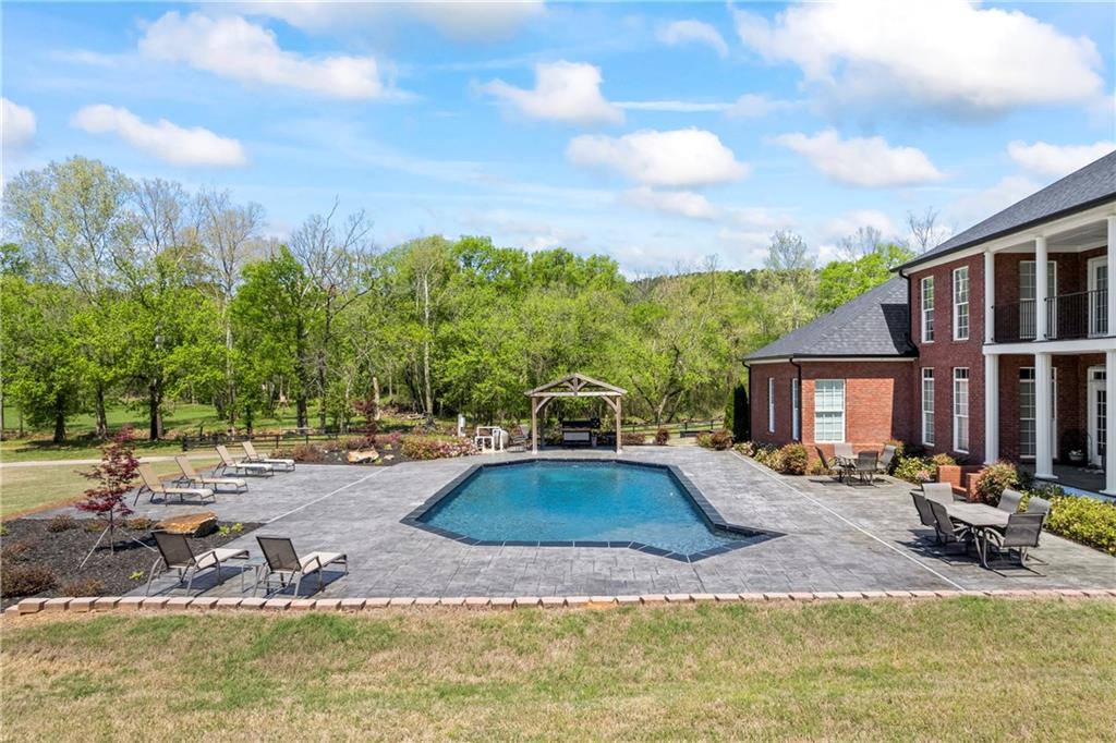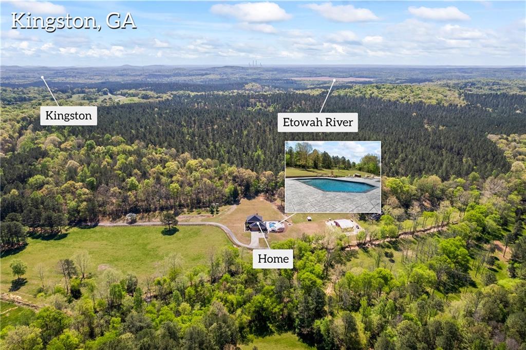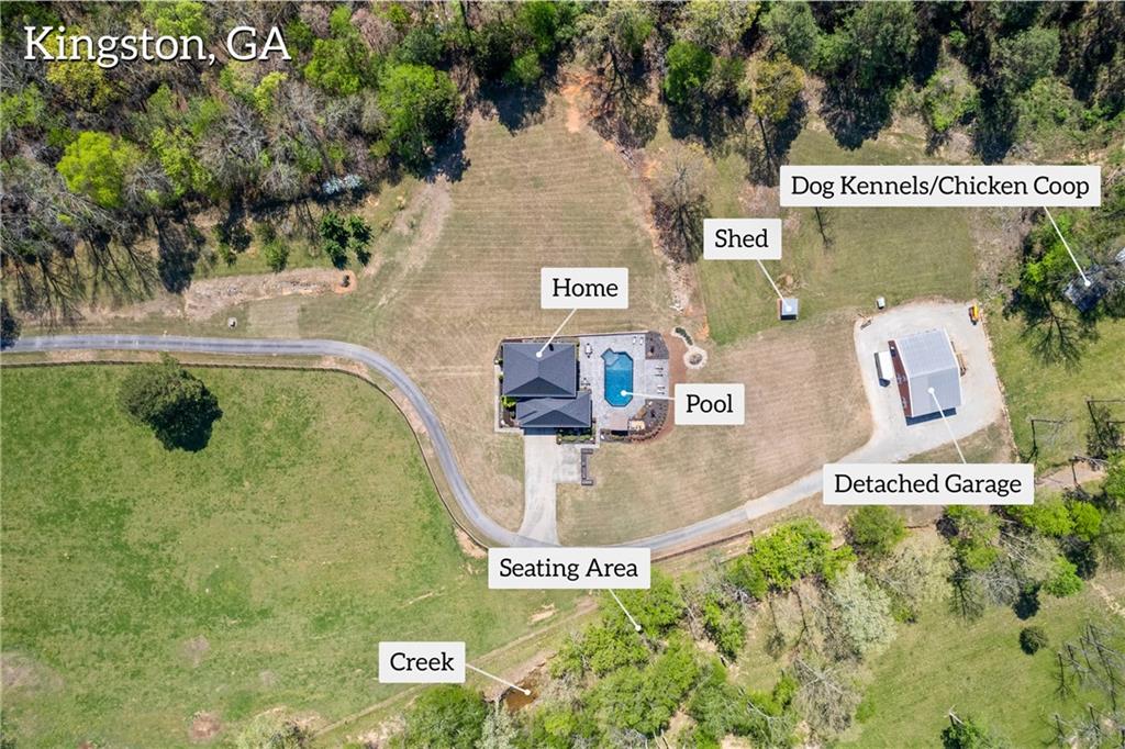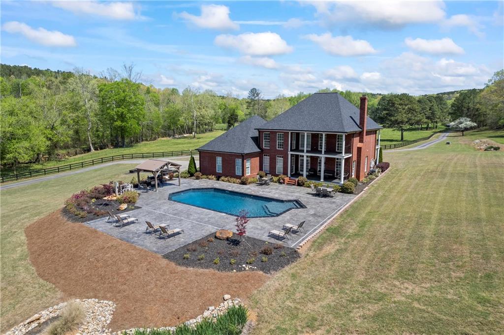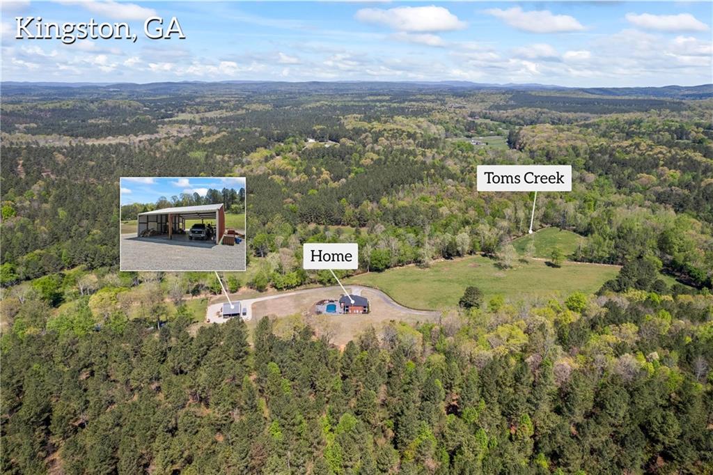 Welcome to 175 Tom Jones Road - Where Luxury meets Land and Lifestyle becomes Reality. This is a rare opportunity to own nearly 70 acres of private, usable land - a true legacy estate where you can live the country lifestyle youve always imagined without sacrificing the comfort and quality of a well-appointed home. Tucked behind a gated entrance and framed by a picturesque, tree-lined drive, this property offers unmatched privacy, natural beauty, and endless possibilities. The timeless brick home is thoughtfully designed for both everyday living and entertaining. Double front doors open to a main level featuring a primary suite w/a view of the pool, a dedicated office/flex room, formal dining room, and an open-concept layout with seamless flow from the eat-in kitchen to the fireside family room and spacious laundry room. Stunning newer hardwood floors throughout the home. Natural light pours in, creating a warm and inviting atmosphere throughout. The oversized two-car, side-entry garage offers both function and curb appeal. Upstairs, youll find three additional generously sized bedrooms plus an expansive flex space perfect for a second office, media room, playroom, or creative studio, along with an abundant walk-in attic area perfect for additional storage. Step outside and experience your own private retreat. The pool with stamped concrete decking, paired with a covered grilling and entertaining area, creates the perfect setting for relaxing evenings or hosting unforgettable gatherings. But what truly sets this property apart is the land with multiple fenced and cross-fenced areas ready for horses, cattle, etc., or hobby farming. Theres loads of room to plant a large garden, fruit trees, or even create a self-sustaining homestead. The spacious open barn is ideal for equipment, boats, recreational vehicles, etc. Multi-stall dog kennel and chicken coop already in place and ATV trails winding throughout the property for recreation and exploration are just more added luxuries on this property. Theres also Toms Creek, a serene creek, running through the land, adding both beauty and tranquility. Wildlife is abundant, with deer, wild turkeys, and more frequently seen, bringing the outdoors right to your doorstep. And while youll feel worlds away, youre just minutes from Cartersville and a short drive to Lake Allatoona, offering the perfect balance of peaceful country living with the conveniences of city access. An added financial benefit: the property is currently enrolled in CUVA, with approximately 4 years of valuable tax savings remaining. Additional highlights include a new roof, gutters and downspouts installed January 2026 and the property borders the prestigious Barnsley Gardens Resort. This is not just a home - its a lifestyle upgrade; a place where you can ride ATVs at sunset, gather fresh eggs in the morning, plant your own garden, sip your coffee or sweet ice tea on the covered lower or upper covered patio overlooking the pool and land, and still enjoy the refined comforts of a beautiful, well-designed home. Addl upgrades include recently Encapsulated crawl space & commercial dehumidifier in crawl space; Can lights installed inside; Outside & inside powder coated hand rails; New LED lights & fixtures throughout; Fenced, gated and added electric fence to front pasture by house and electric fence and gate to front small pasture; Outdoor garage lights; Fiber ran to house; New landscaping; New Garage openers & guide wheels; and more. Opportunities like this are rare. Now is your chance to step into something truly special. Call Lisa @ 404-909-9151 today to schedule your tour of this exceptionally rare property.