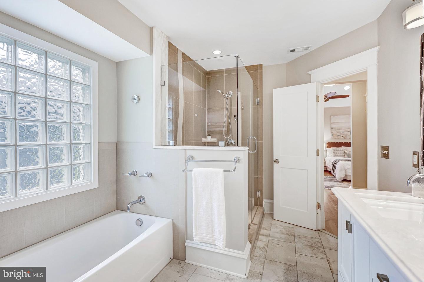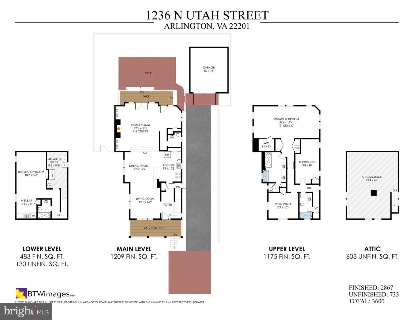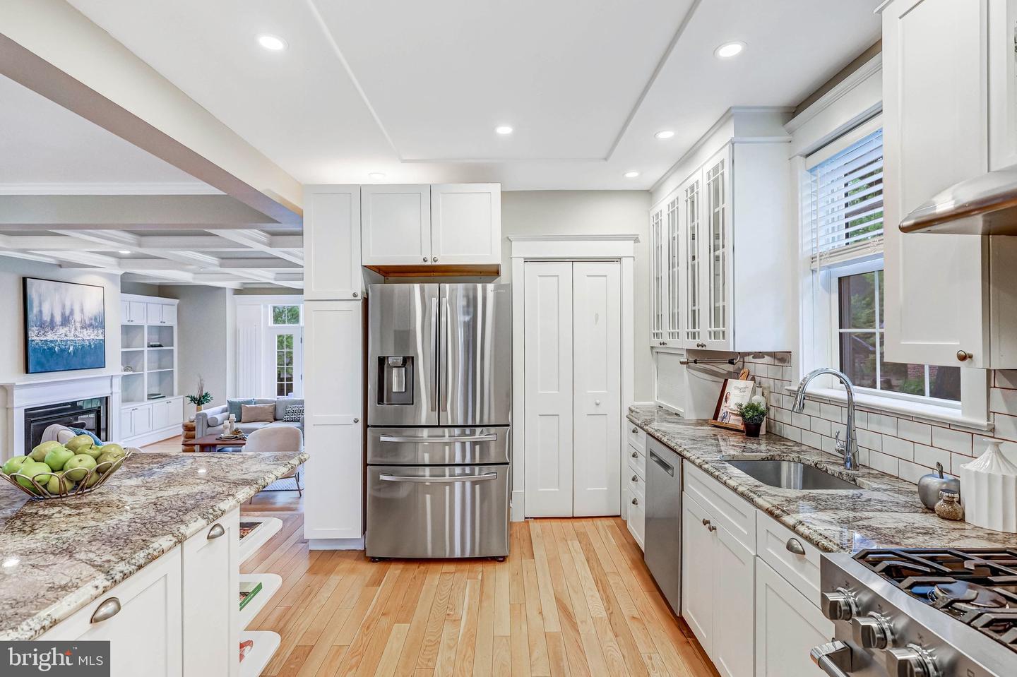 Welcome to this beautifully renovated and expanded farmhouse in the heart of Ballston, just three blocks from the Metro. Completely transformed in 2014 to include a stunning two-story addition, Hardie plank siding, architectural shingle roof, energy-efficient windows, updated plumbing and electrical systems, extensive hardscape, and so much more this home offers the perfect blend of historic character and modern updates. The main level features high ceilings, beautiful hardwood floors, a gourmet kitchen with white cabinets and high-end appliances, spacious living and dining areas, powder room, and an expansive light filled family room with custom built-ins, gas fireplace, coffered ceilings, and direct access to the fenced rear yard. The upper level includes 3 spacious bedrooms, 2 full bathrooms, and laundry. The newly created and oversized primary suite includes vaulted ceilings, two walk-in closets, and a luxurious attached bathroom. The finished lower level includes a full bathroom, wet bar, rec room/flex room, and private side entrance. The unfinished 4th level attic is accessed by a full set of stairs and a great bonus for storage. Outside includes an oversized driveway with custom pavers, maintenance free deck, patio, and detached garage with power (currently used as shed). All of this just steps from restaurants, parks, schools, trails, metro, shopping, major commuting routes, and so much more!