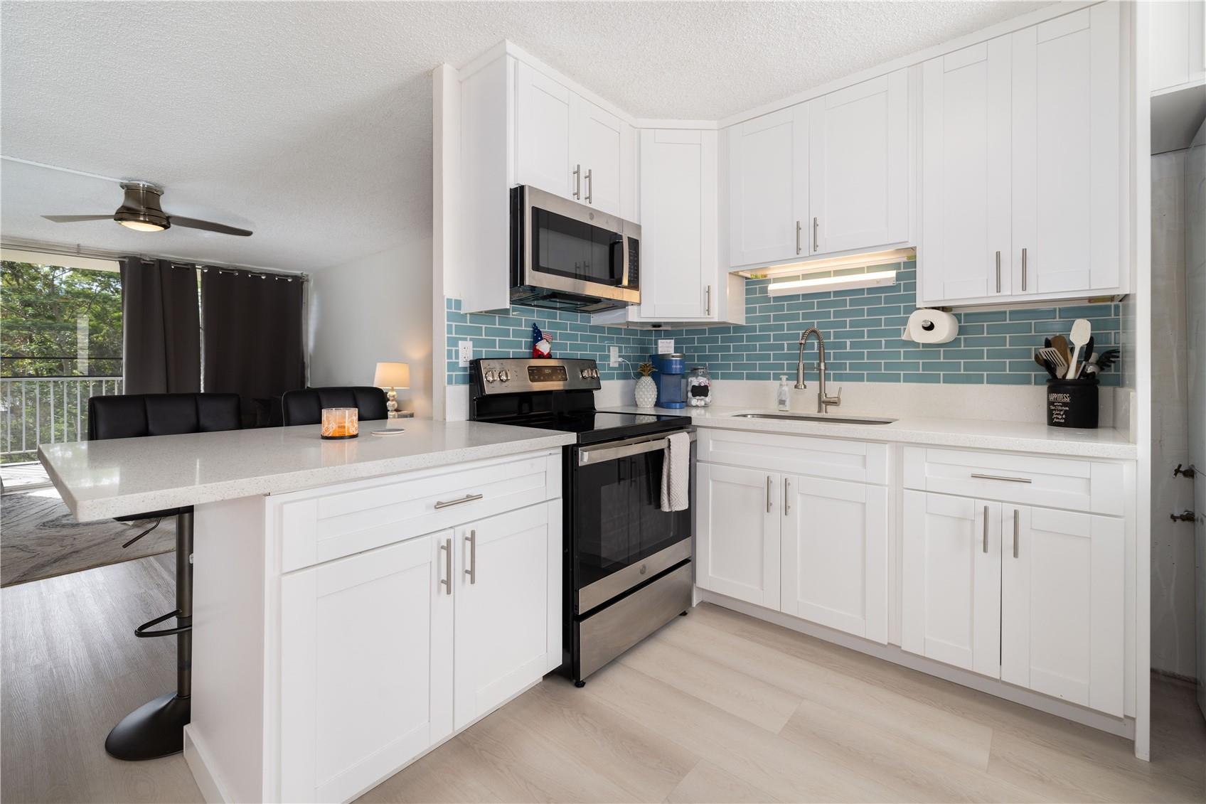 Stunningly Remodeled in 2023, Top-Floor Corner Unit with No Stairs! Welcome to this beautiful three-bedroom, two-bathroom corner unit, complete with two assigned parking stalls. This home has been upgraded with high-end finishes, offering the perfect blend of style, comfort, and functionality.
