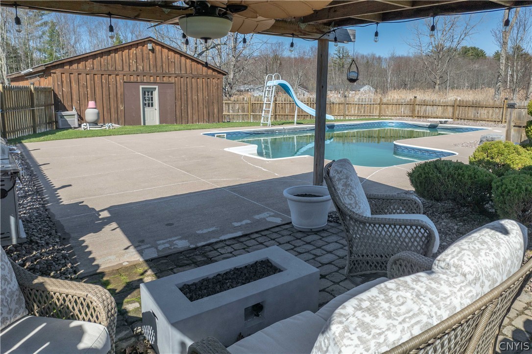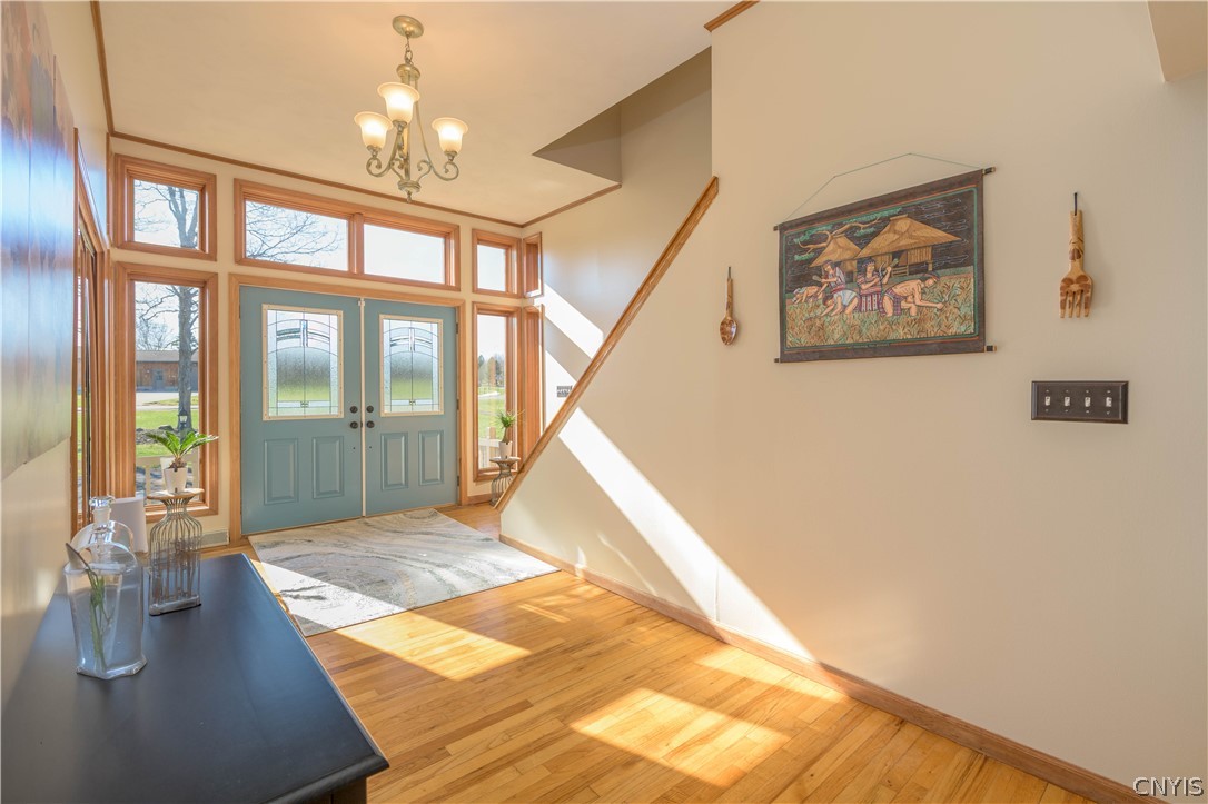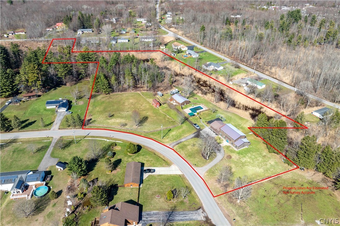 This exceptional 4 bed, 3 full bath Colonial Style home has been designed to encompass the most from its setting. With 8.86 acres of land to explore, you have access to Little Bay Creek, ponds, wood trails, and undisturbed nature at its best. Enjoy your own personal sanctuary with the in-ground heated salt water pool, pergola and patio access to the 50x30 pole barn complete with concrete floor, water and electric. Perfect to utilize for storage, shop space and entertaining space outside the pool area. Outdoor basketball court to add to the fun or make it a pickle ball court to practice at home! Bonus chicken coop equipped with electric, dusk to dawn auto door and fenced in area. 3 car attached garage with remote openers, fully insulated and ready for its own heating unit. As you enter the home you will fall in love with the modern aesthetic of high ceilings and open floor plan offering that grand and luxurious feel in the heart of the home. From the kitchen with granite countertops, large island with seating, to the formal dining room and open family room to the living room, you will not be lacking in space. Gleaming hardwood floors throughout. 3 Sliders from the main living to the expansive back deck overlooking the private scenery. Beautiful main foyer with large closet space. First floor bedroom room and full bath across the hall for added convenience. Bonus office also equipped for first floor laundry use if desired. Upstairs you will find 2 additional bedrooms, a second full bath as well as the massive primary suite with an extensive wall of closet space you will surely be impressed with. Full dry basement studded and ready to be finished with exterior walk-out to the hot tub. So much added living space and potential to add to an already impressive home! Several recent updates including newer furnace with central air, interior paint, new pool liner purchased and being installed early May. New patio doors installed with screens, new carpet and several new ceiling fans to name a few. This home has been meticulously maintained and is move in ready for its new owners!