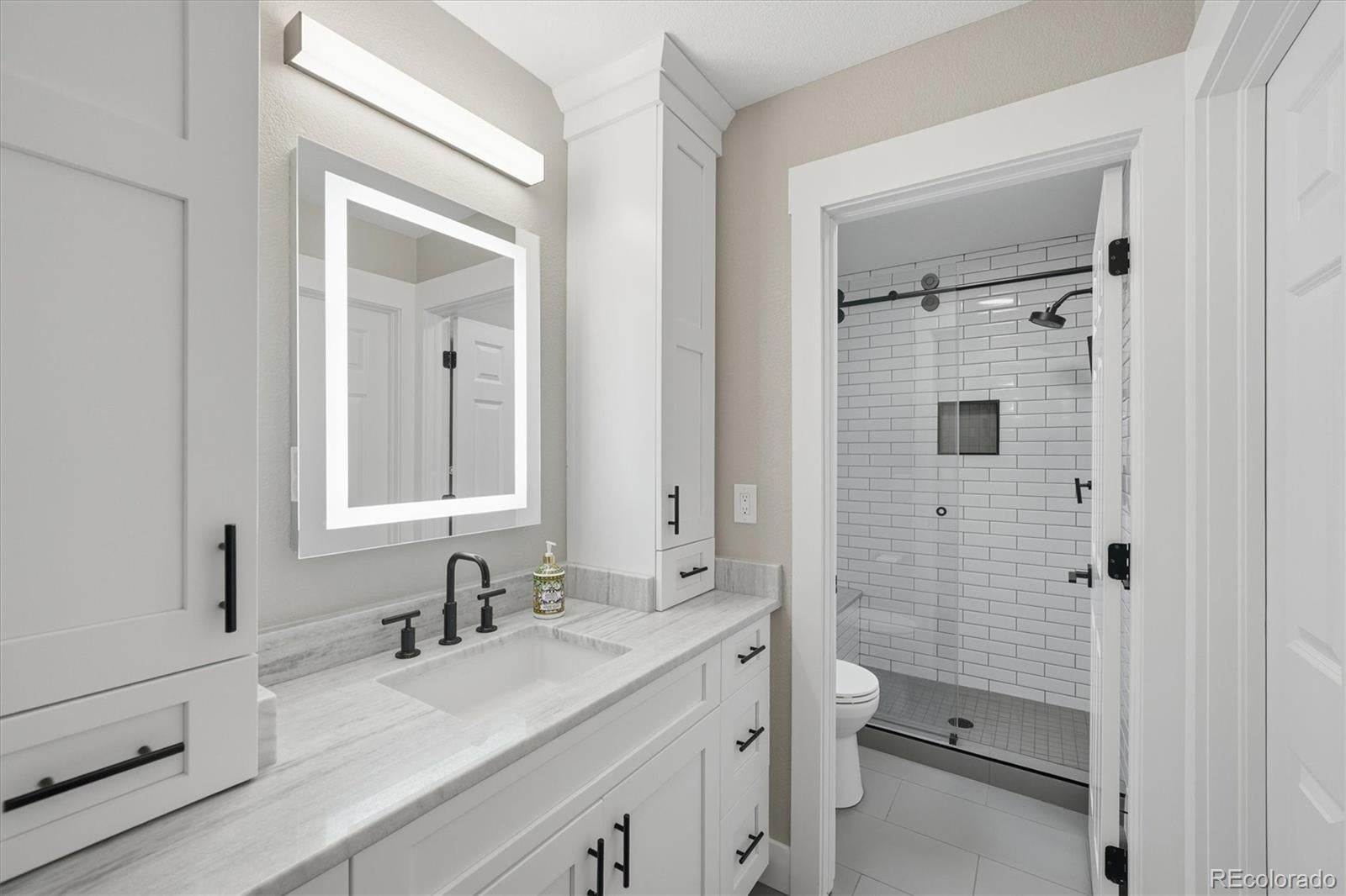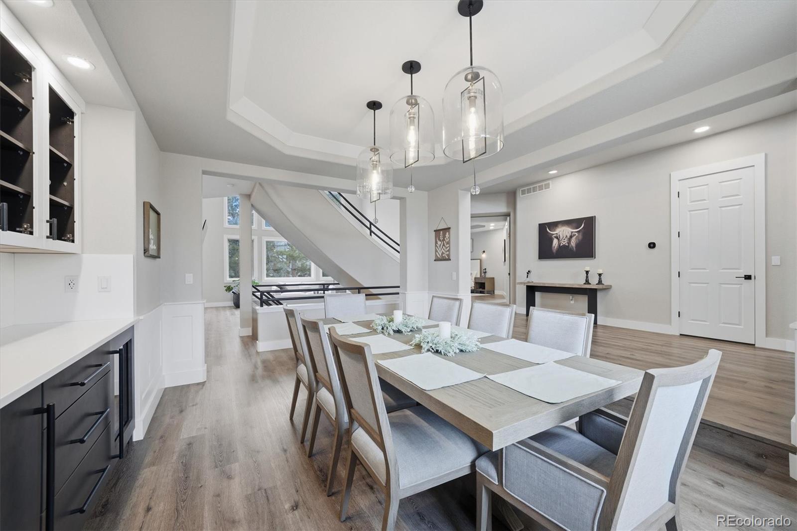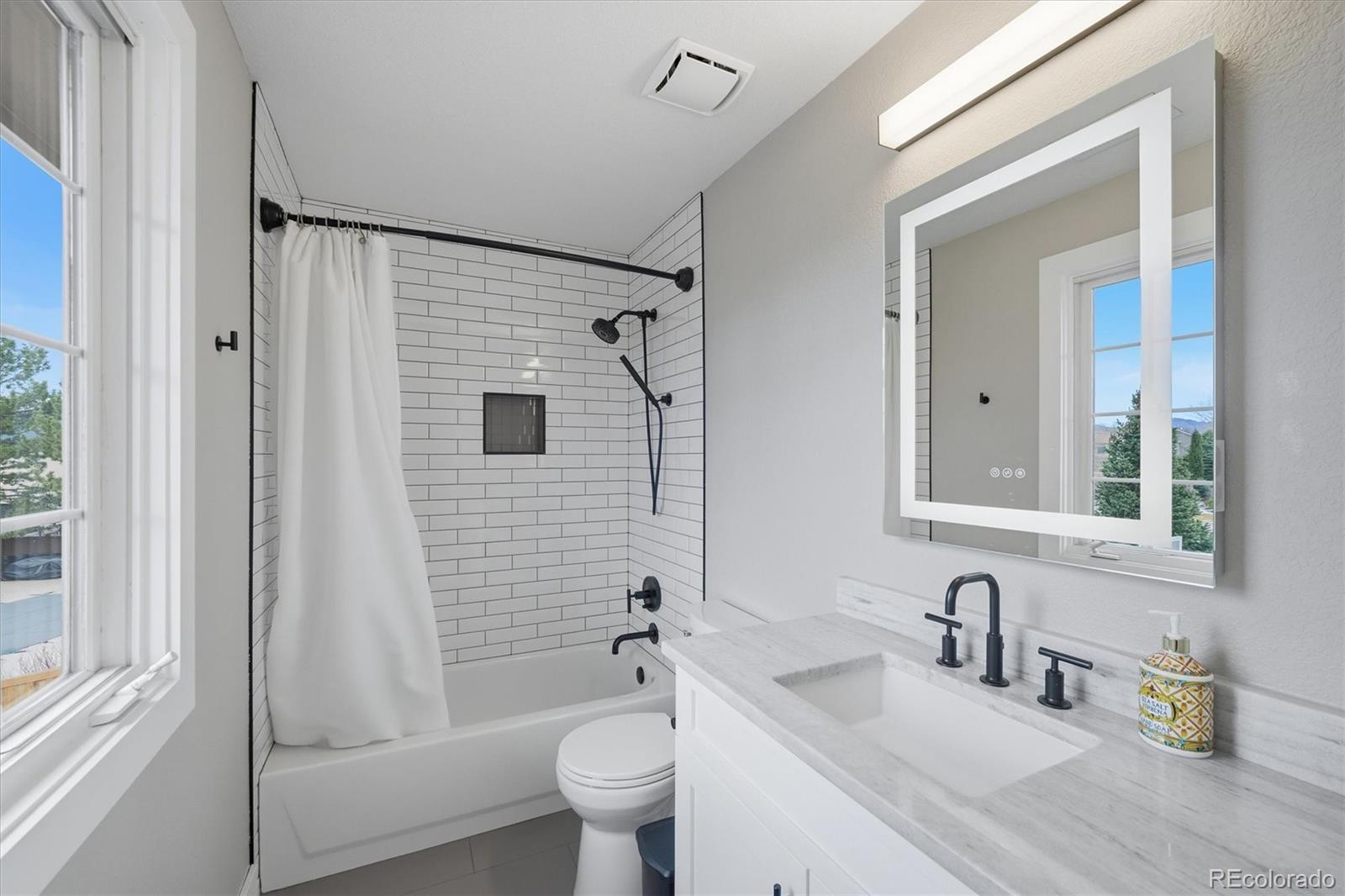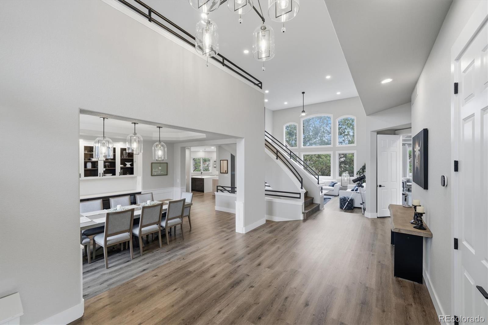 Welcome home to this exceptional, fully remodeled home in the coveted Hillsboro at Grant Ranch community. The show-stopping chefs kitchen is a true culinary masterpiece, featuring a high-end Wolf induction cooktop with high-output wok burner, Wolf double ovens, a Sub-Zero refrigerator, instant hot water, and two dishwashers (Fisher & Paykel and Cove)perfectly blending performance and style. A dedicated coffee/tea bar adds everyday convenience, accented by modern subway tile and a fire-resistant Dekton backsplash that extends elegance and durability. The spacious main-floor primary suite offers a true spa-like retreat, complete with limestone floors, marble countertops, a walk-in shower with multiple heads, an elegant oval jetted soaking tub, and a high-end Kohler Veil bidet with touchscreen interface for ultimate comfort. A dedicated main-floor office provides the ideal work-from-home space, while the inviting living room is anchored by a newly installed gas fireplace. Smart home enthusiasts will love the Lutron system for fully automated lighting, controlled via Alexa, Google Home, or Apple HomeKit. Upstairs, youll find three generously sized guest bedrooms, each with its own ensuite bath featuring modern subway tile, plus a versatile loft ideal for a second office, gaming area, or private library. The fully finished walk-out basement dramatically expands the living space with an additional bedroom, an updated bathroom boasting a luxurious steam shower, a family room with wet bar, and a one-of-a-kind indoor soccer field. This flexible area offers ample room for a golf simulator for year-round recreation. A Sub-Zero refrigerator in the dining room adds entertaining convenience. Situated on a desirable cul-de-sac 0.27-acre lot, the outdoor spaces impress with a backyard ropes course and a productive tiered vegetable/fruit garden. Additional highlights include a three-car garage and extensive updates: Restoration Hardware lighting, and Kohler faucets throughout.